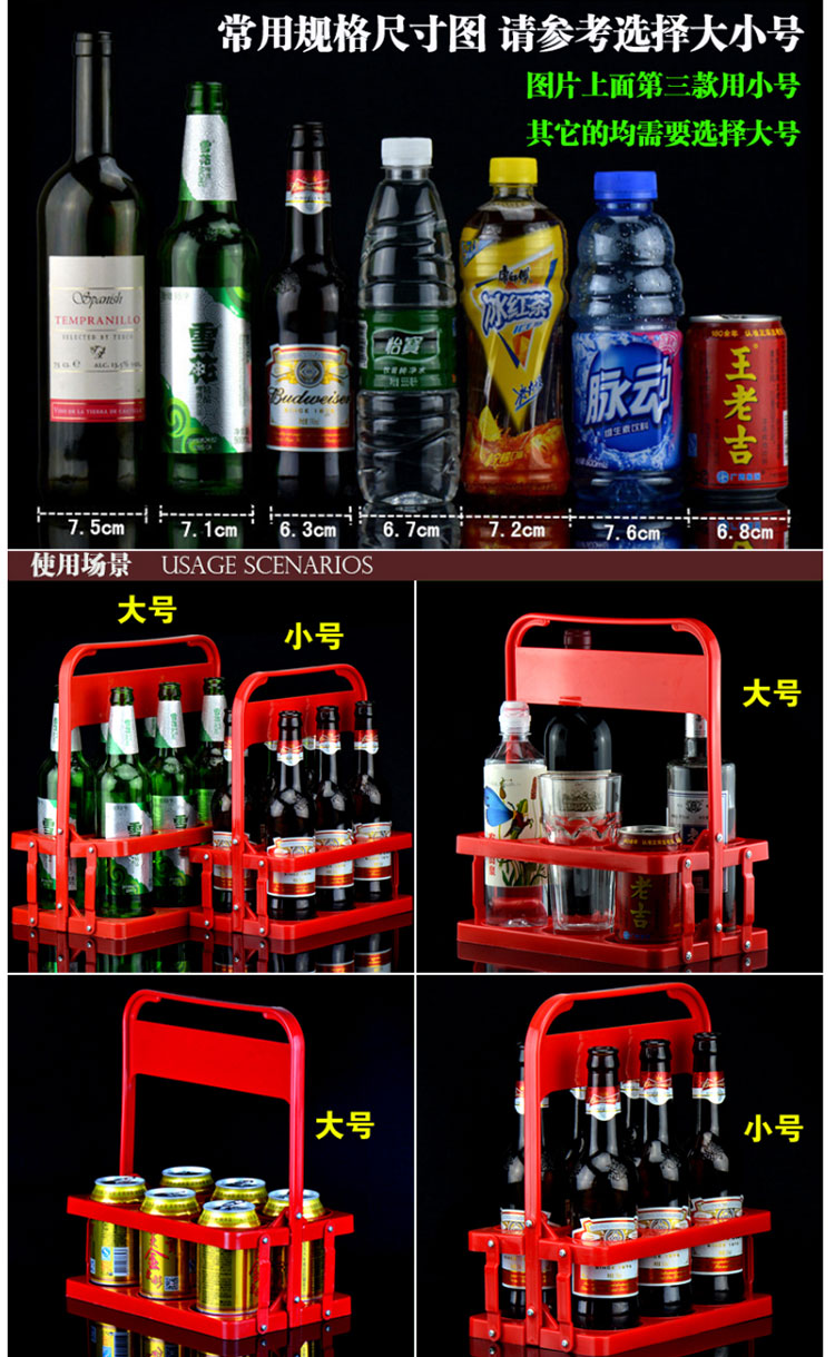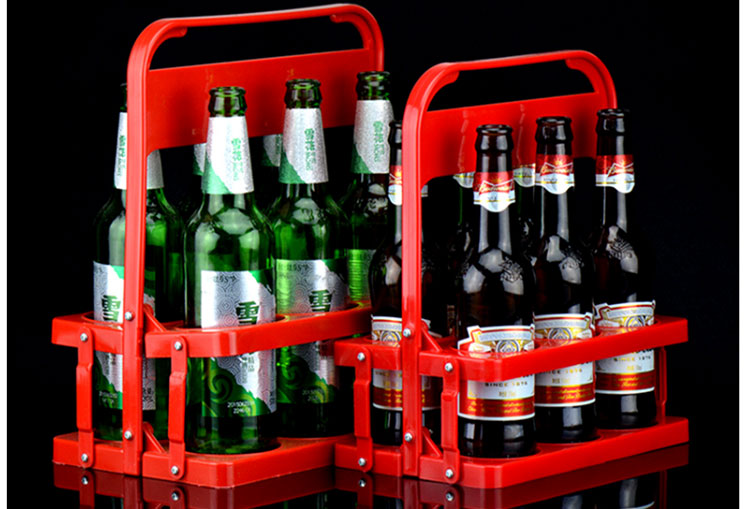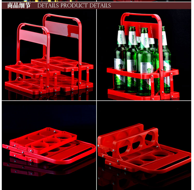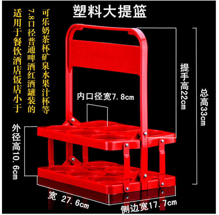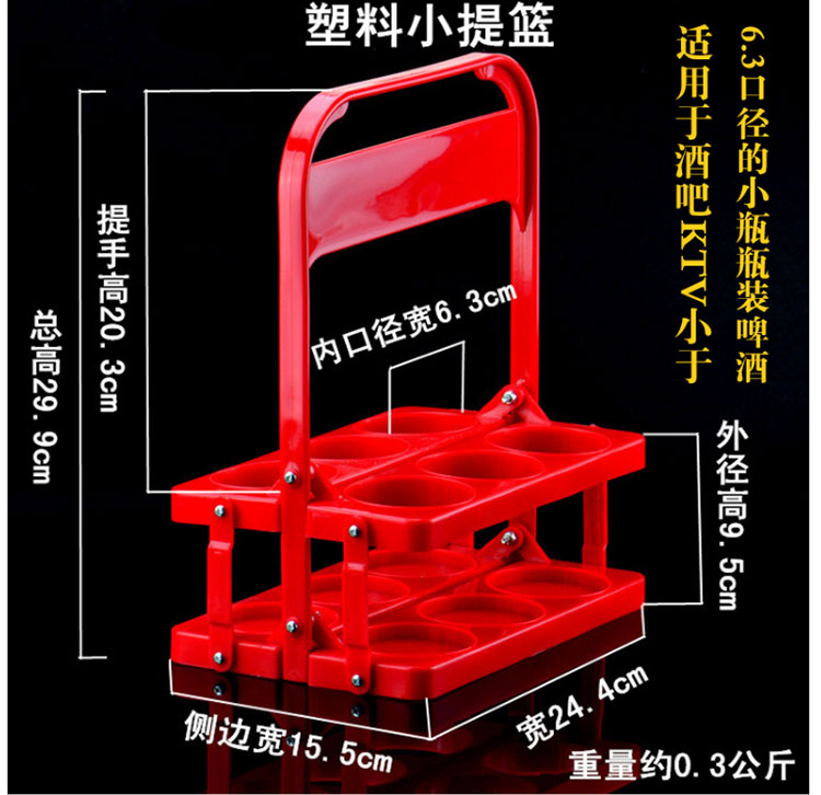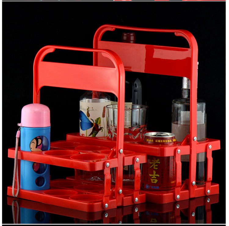 Feizhichu simple modern beer plastic basket portable blue foldable wine rack KTV 6 bottle basket portable frame red diameter 7.8cm red large basket 1 piece 300ml
