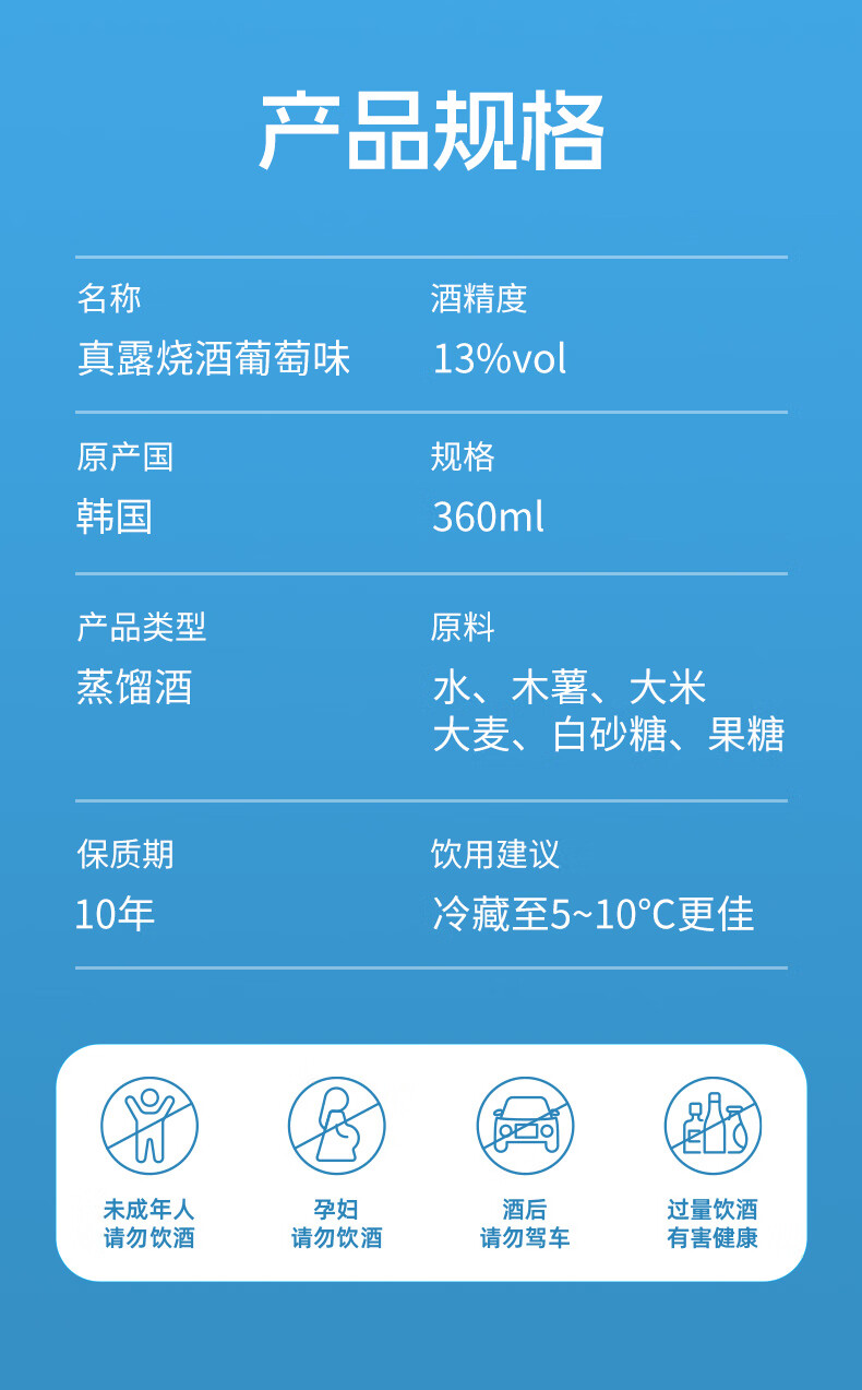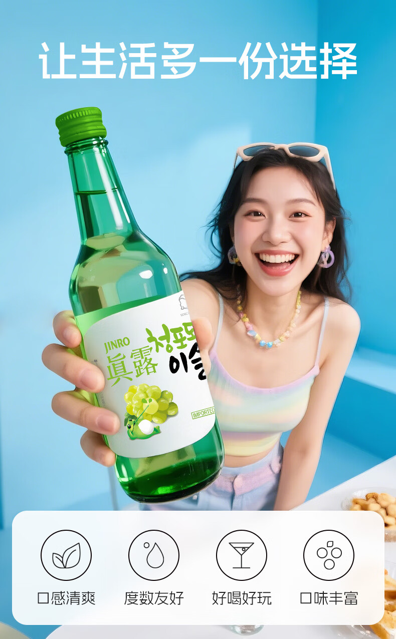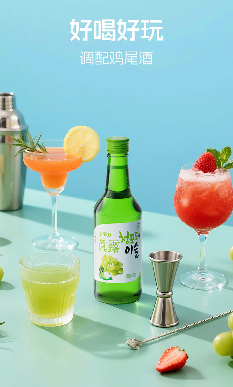 Jinro (JINRO) Korean soju, grape flavor, 360ml*6 bottles, imported foreign wine, fruity wine, low alcohol and tipsy, new year gift