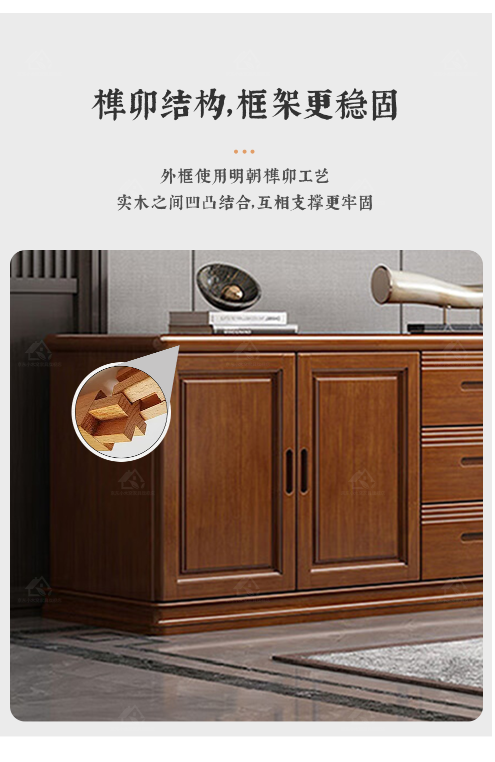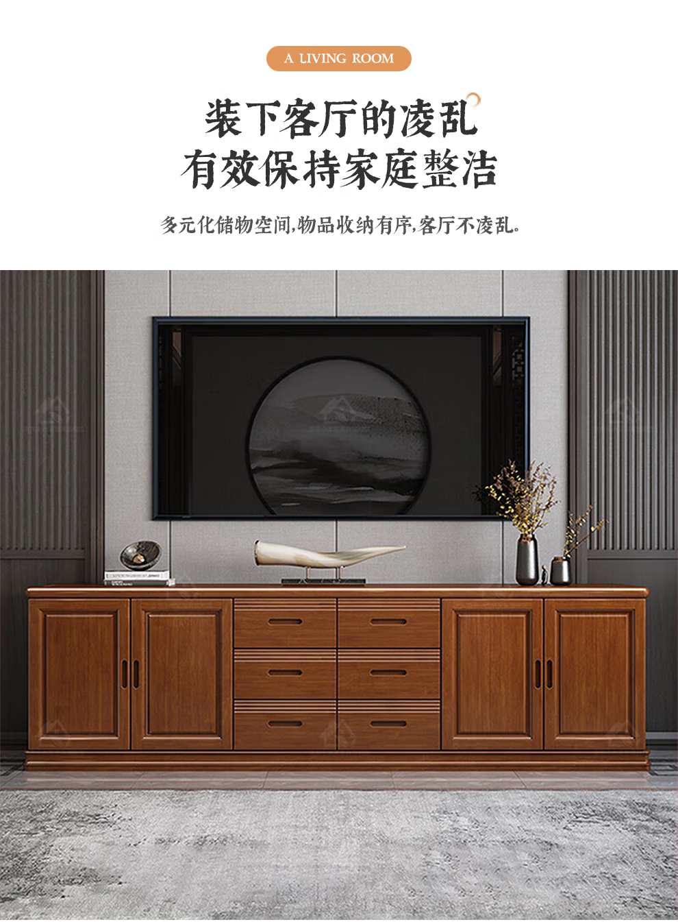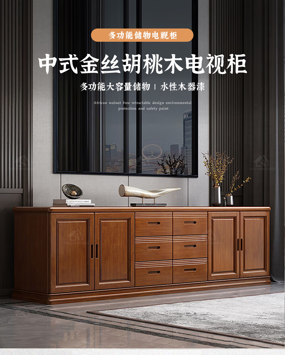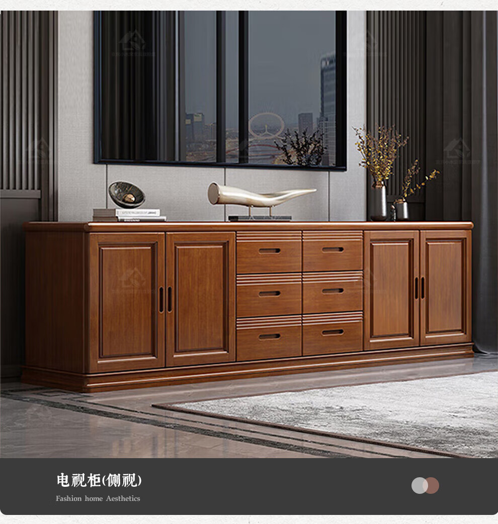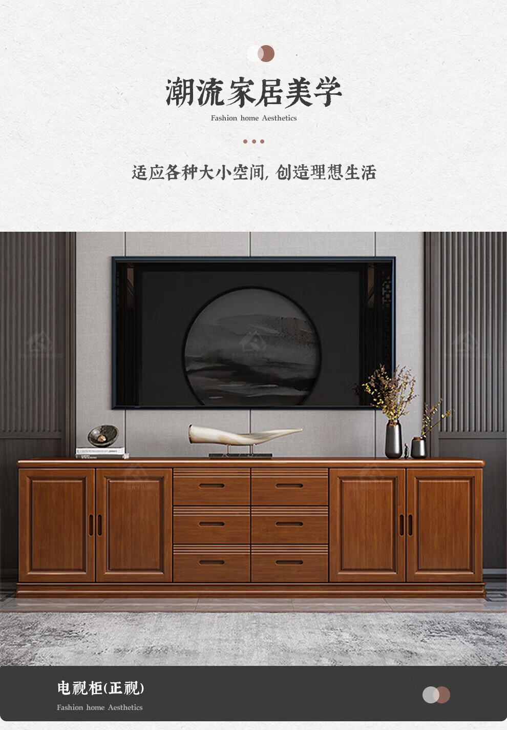 Zihua golden walnut TV cabinet coffee table combination home Chinese-style living room floor cabinet bedroom multi-function storage cabinet d22 2.2 meters high TV cabinet walnut color