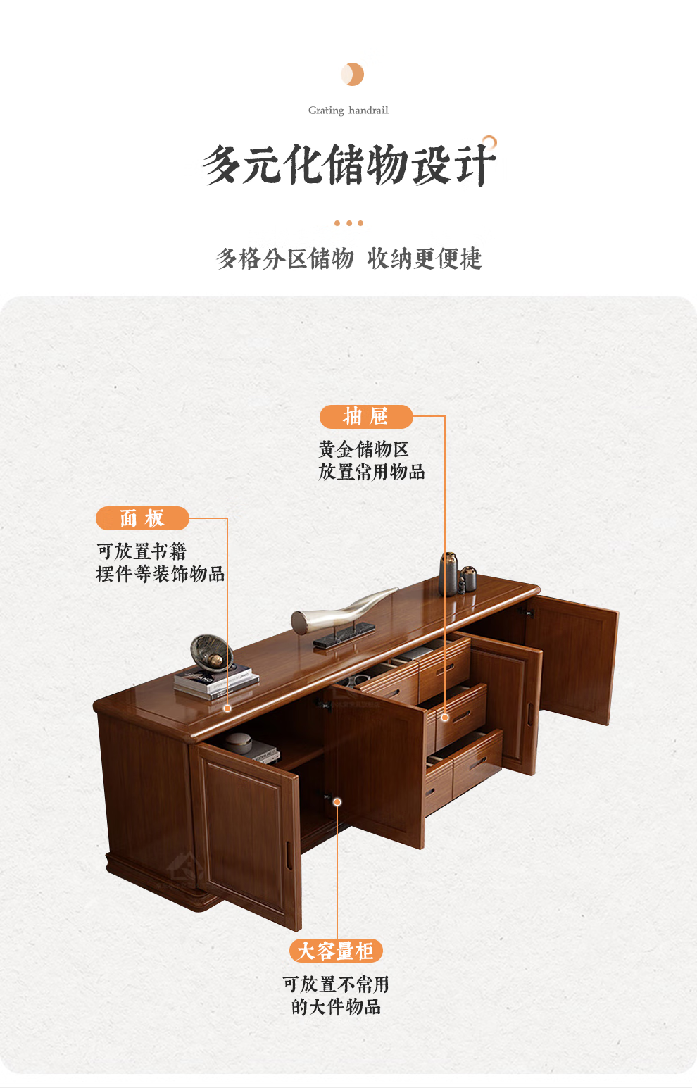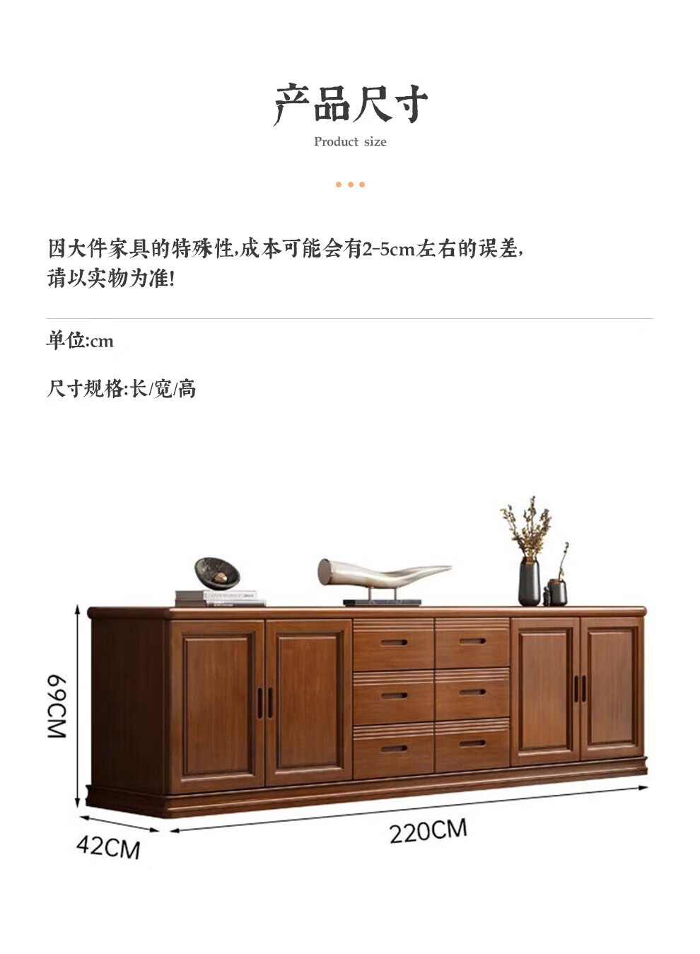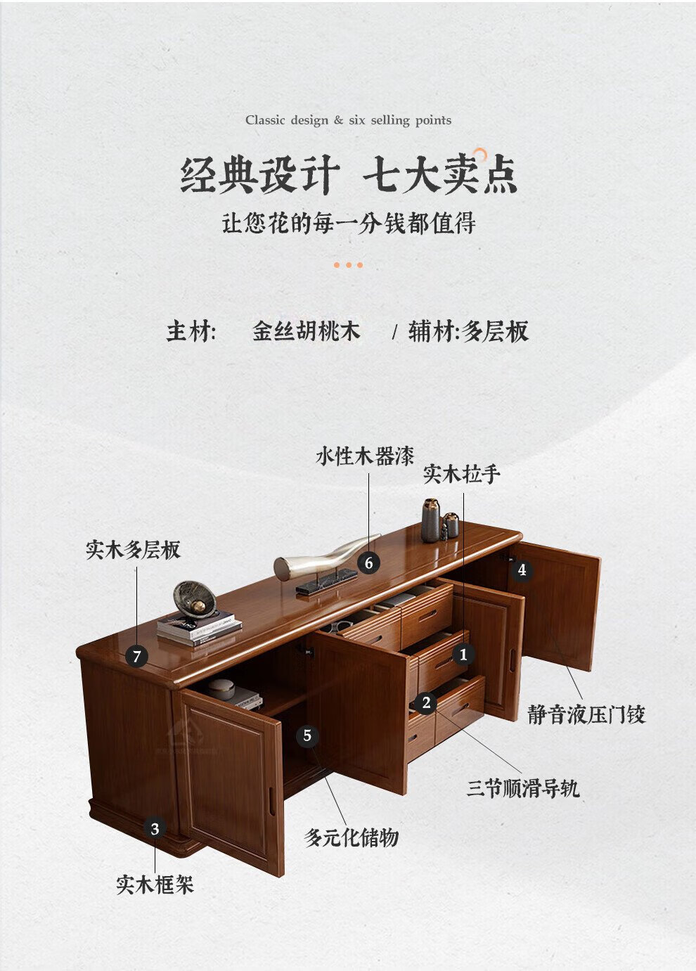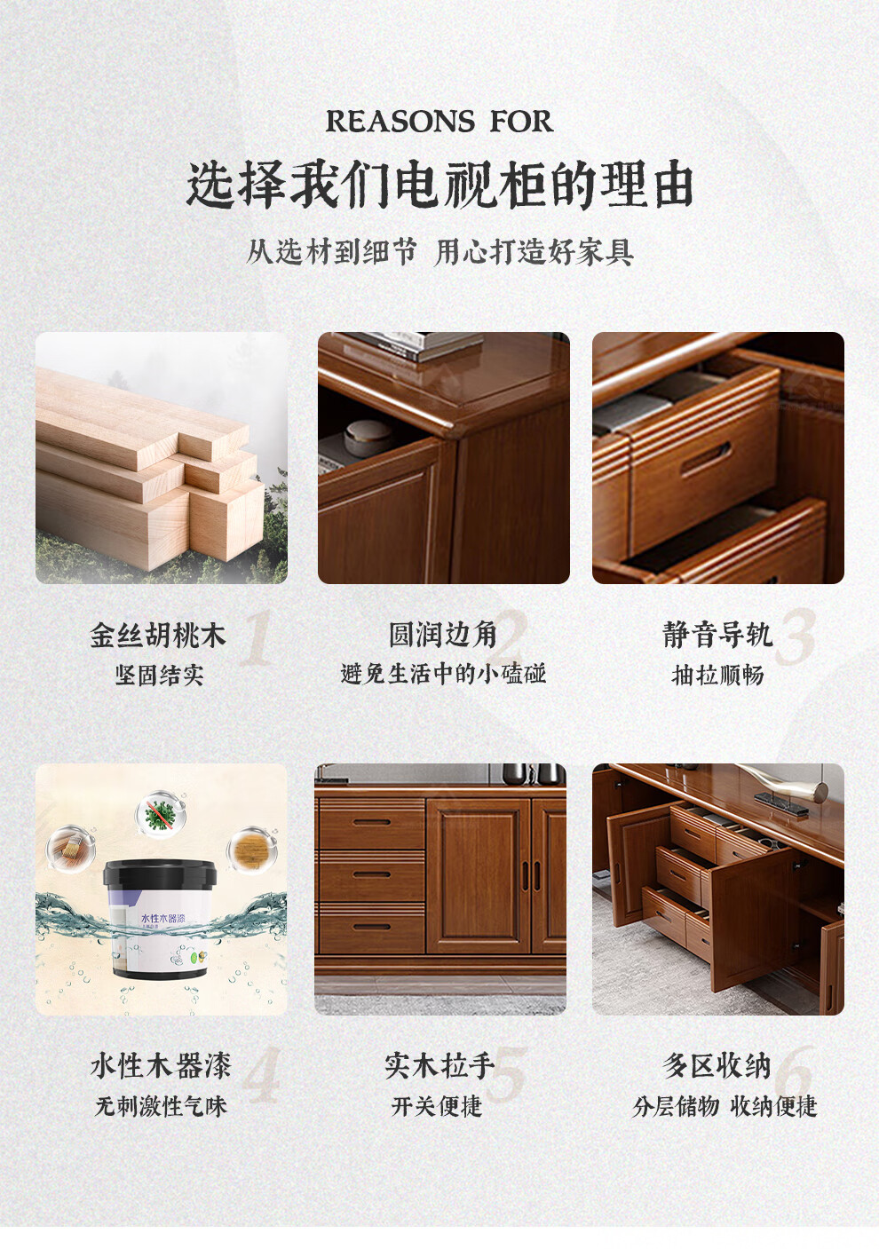 Zihua golden walnut TV cabinet coffee table combination home Chinese-style living room floor cabinet bedroom multi-function storage cabinet d22 2.2 meters high TV cabinet walnut color