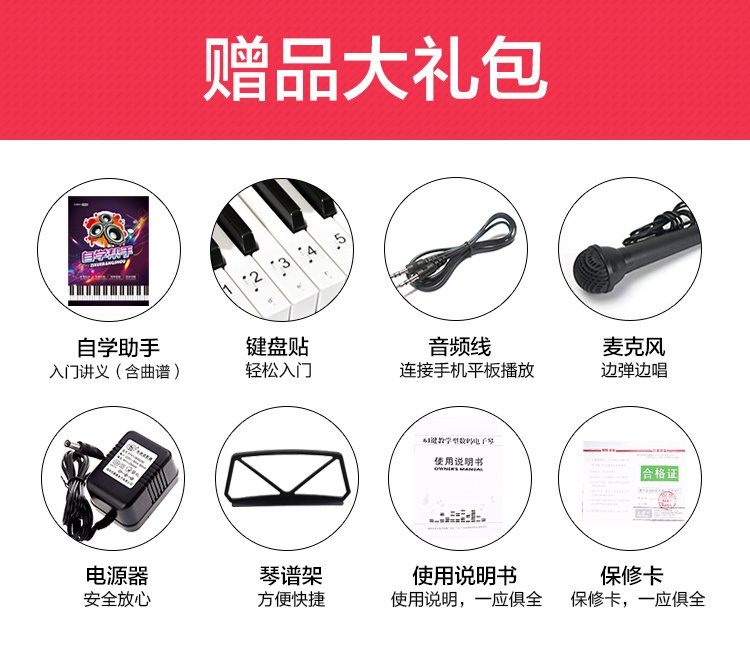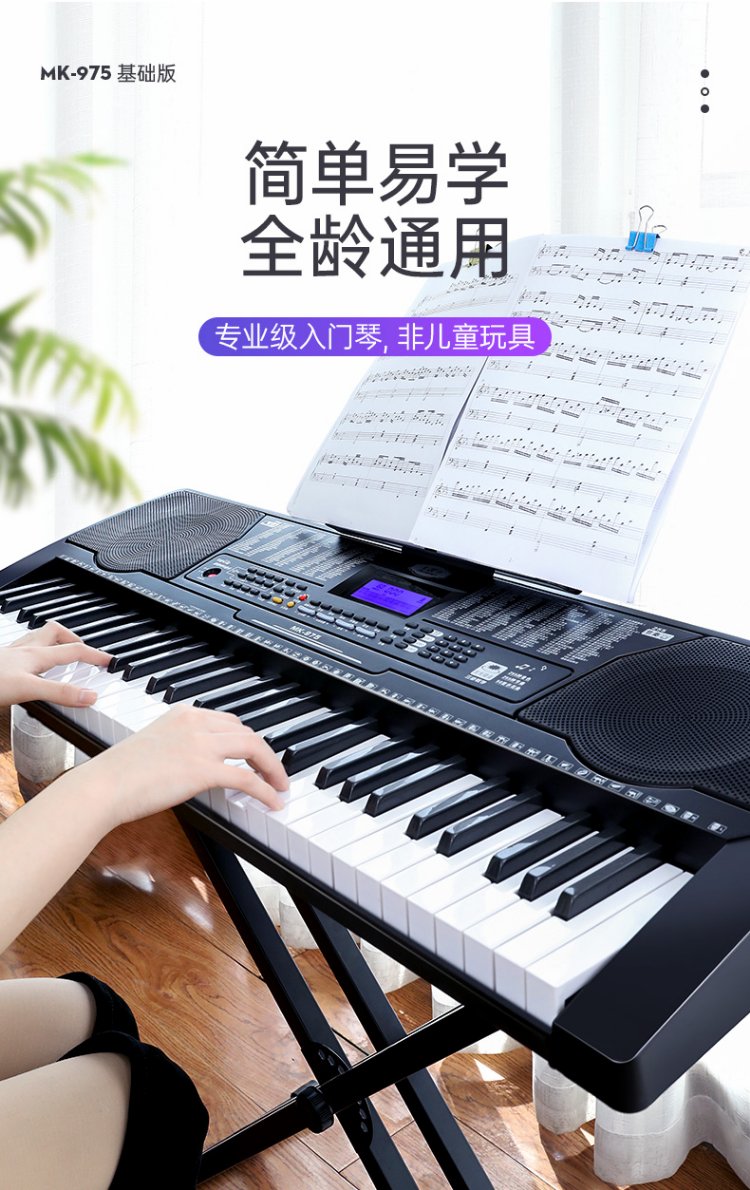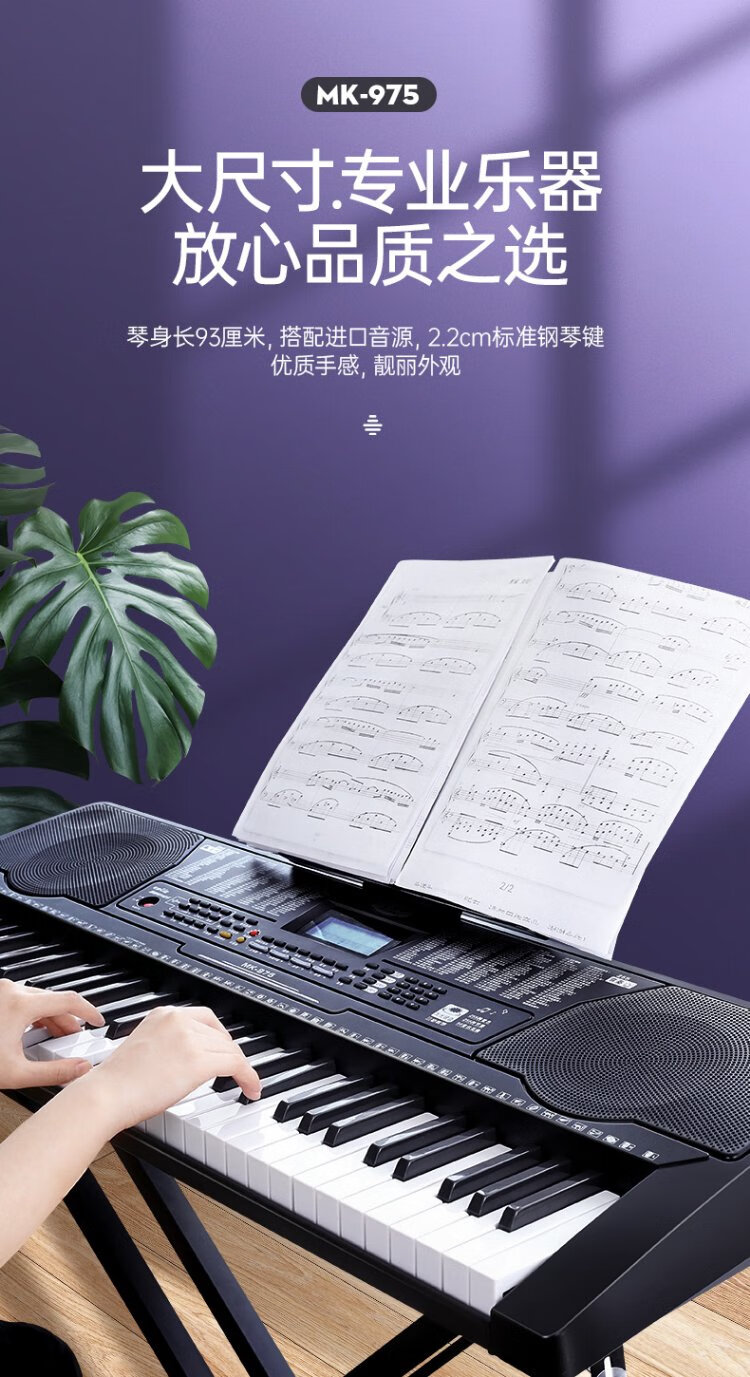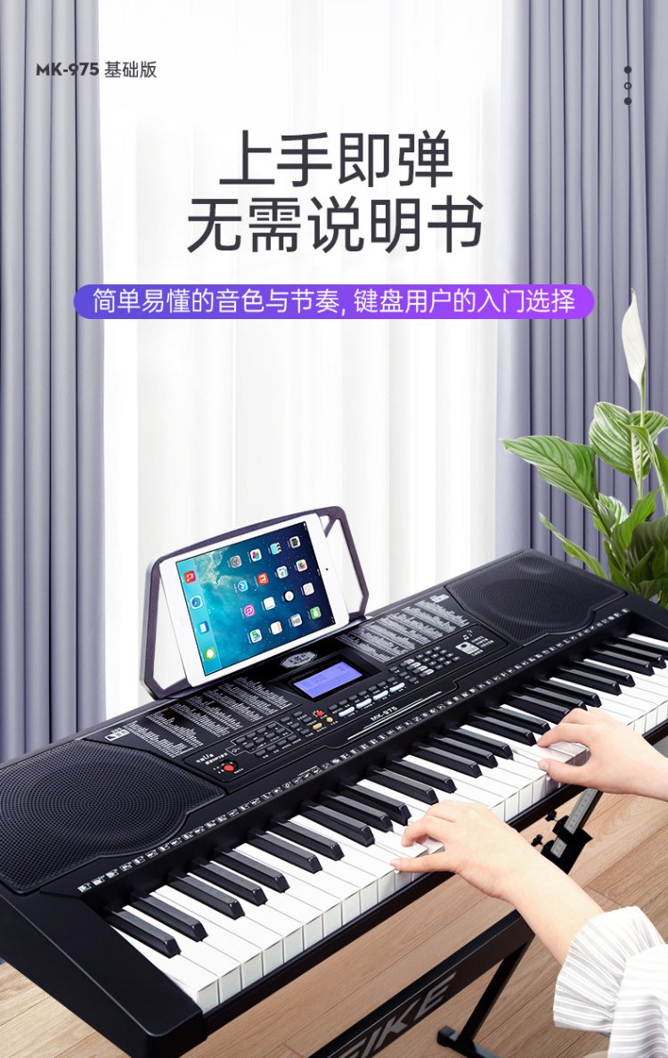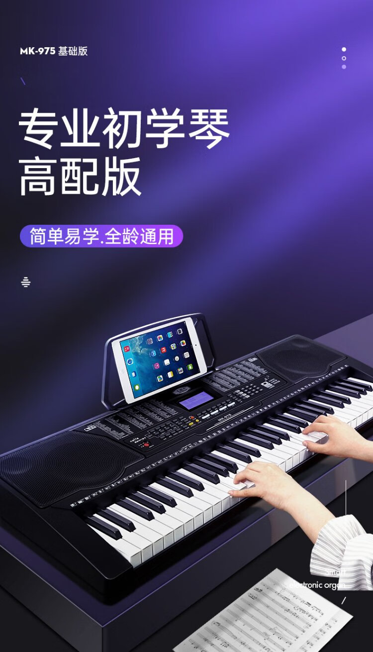 Meirkergr MK-975 61-key piano key multi-function smart electronic keyboard for children, beginner musical instrument, connected to USB flash drive and mobile phone pad