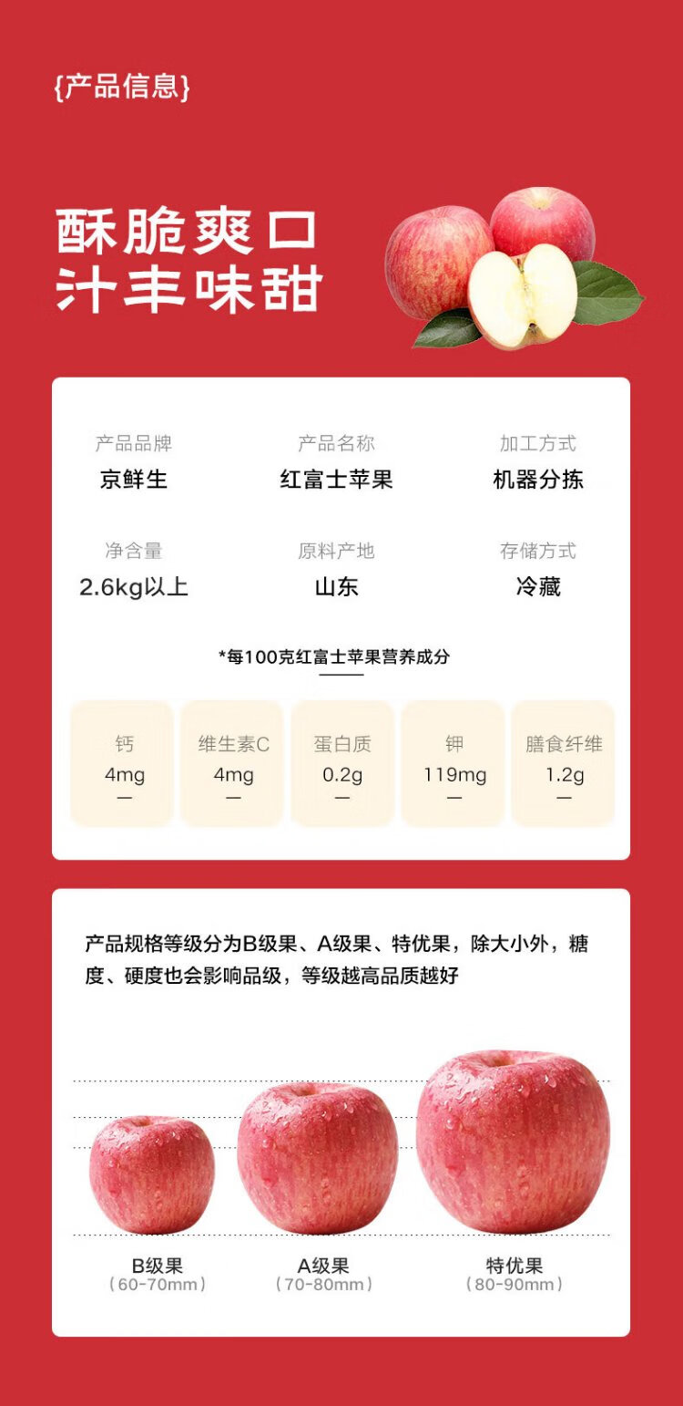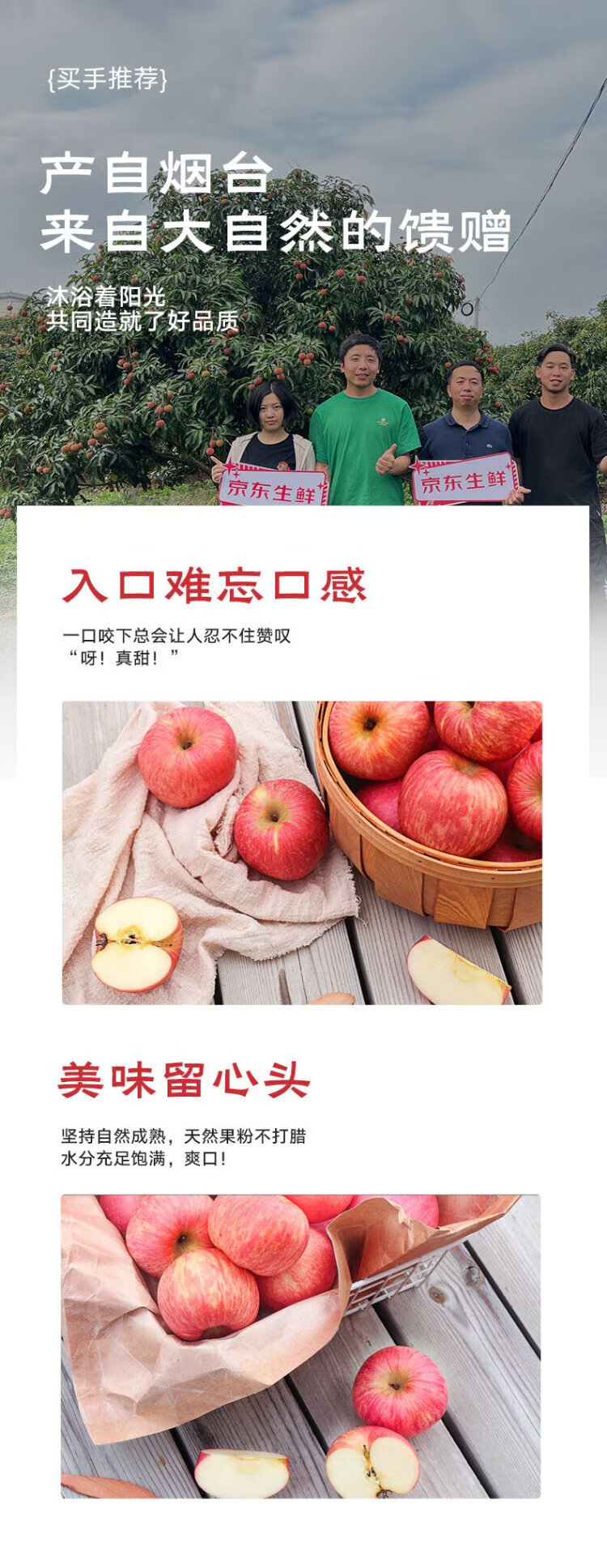 Jingxiansheng Yantai Red Fuji Apple, net weight 5.2kg/12 pieces, single fruit 190-240g, fruit gift box