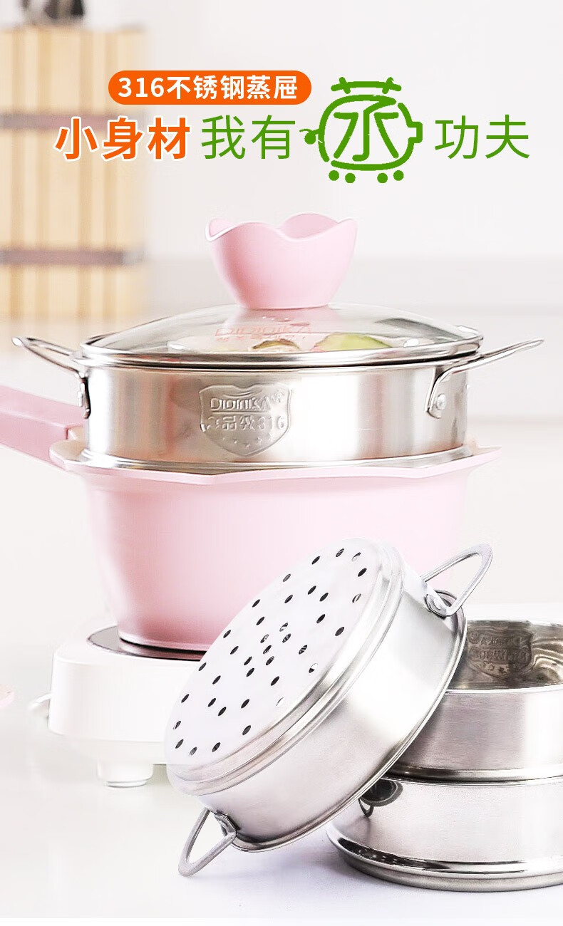 Didinika steamer 16cm baby food pot with 316 stainless steel mini household milk pot small steamer steamer steamed buns