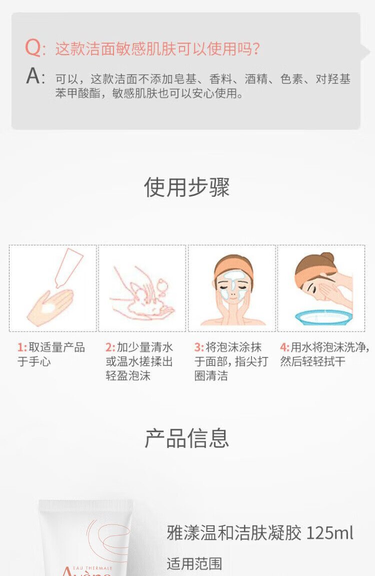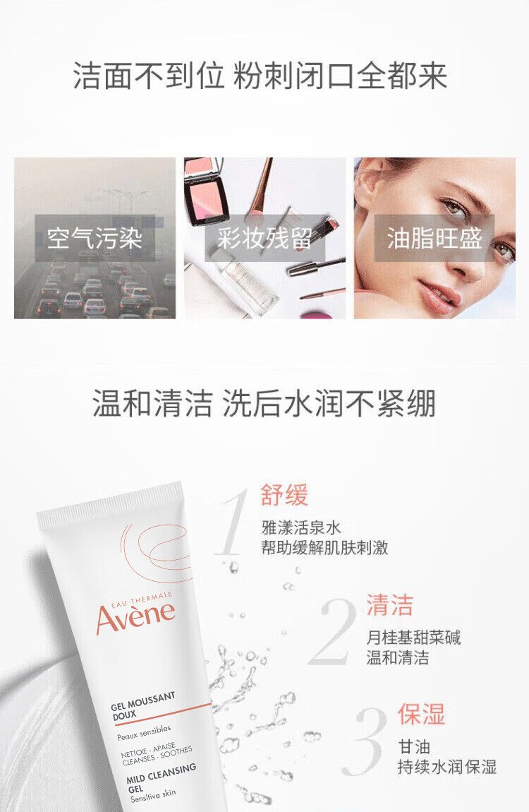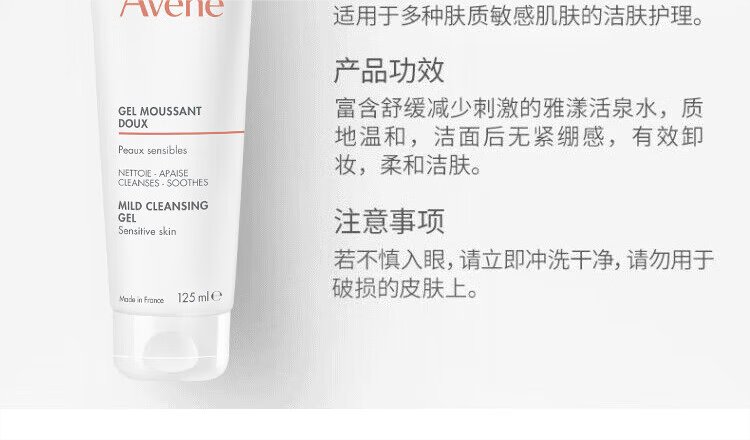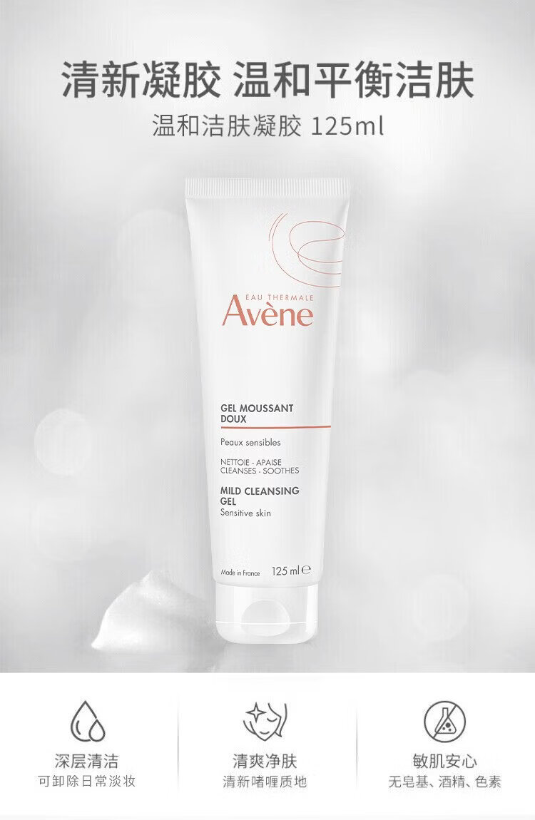 Avene Gentle Cleansing Gel 125ML deep cleansing soothes sensitive skin facial cleanser facial cleanser gift for men and women