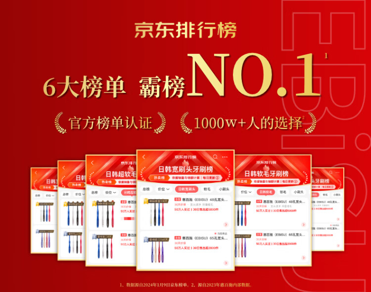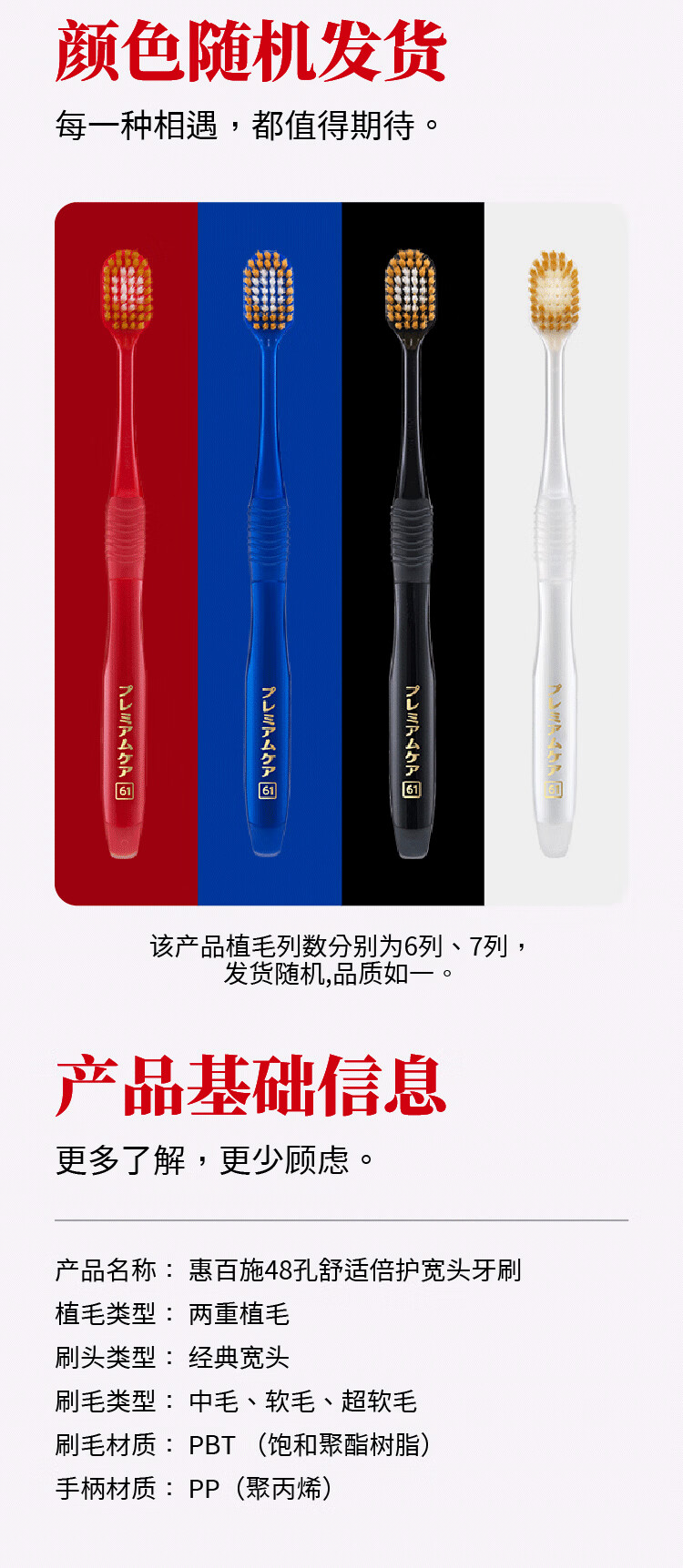 EBISU 48-hole wide-head soft-bristled toothbrush for adults 1 piece + super-soft bristles 1 piece fresh breath travel color random