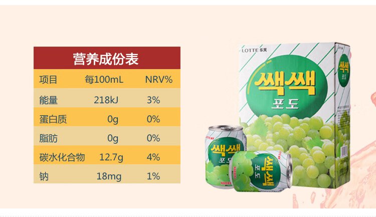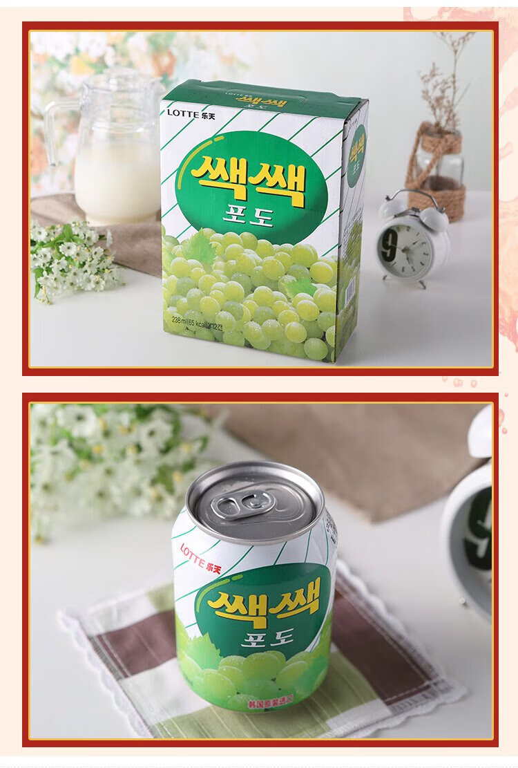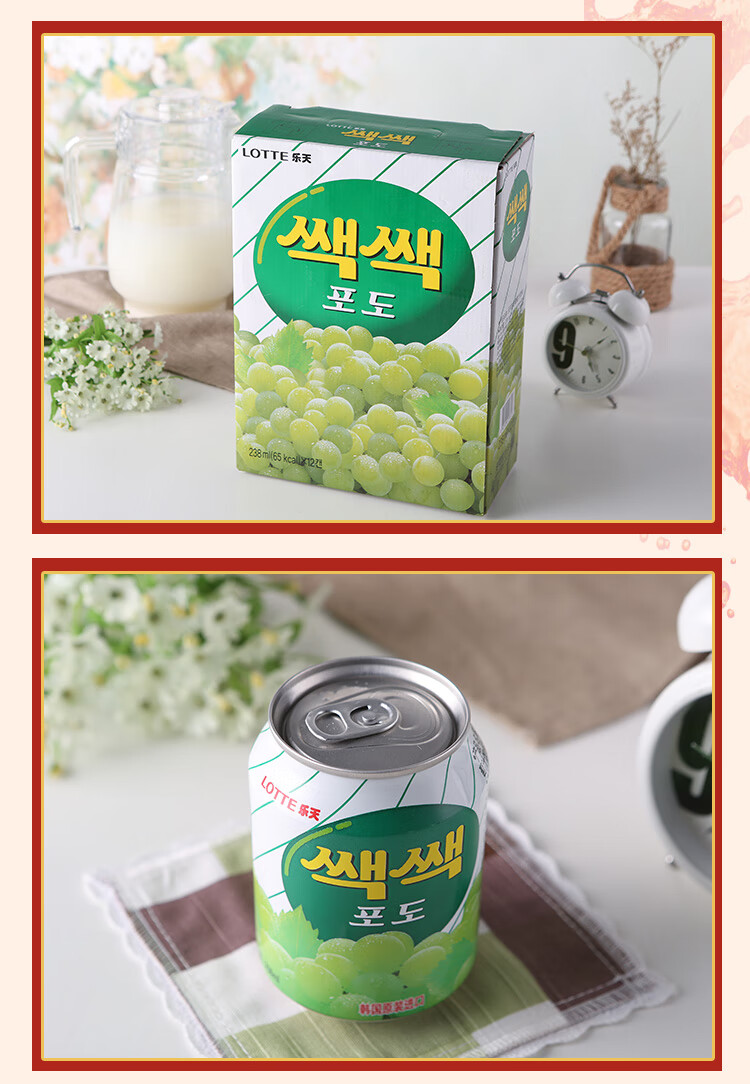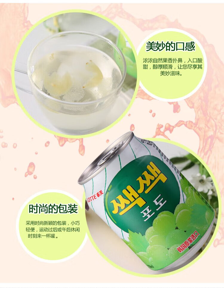LOTTE grape juice drink 238ml *12 cans, whole box, imported from South Korea