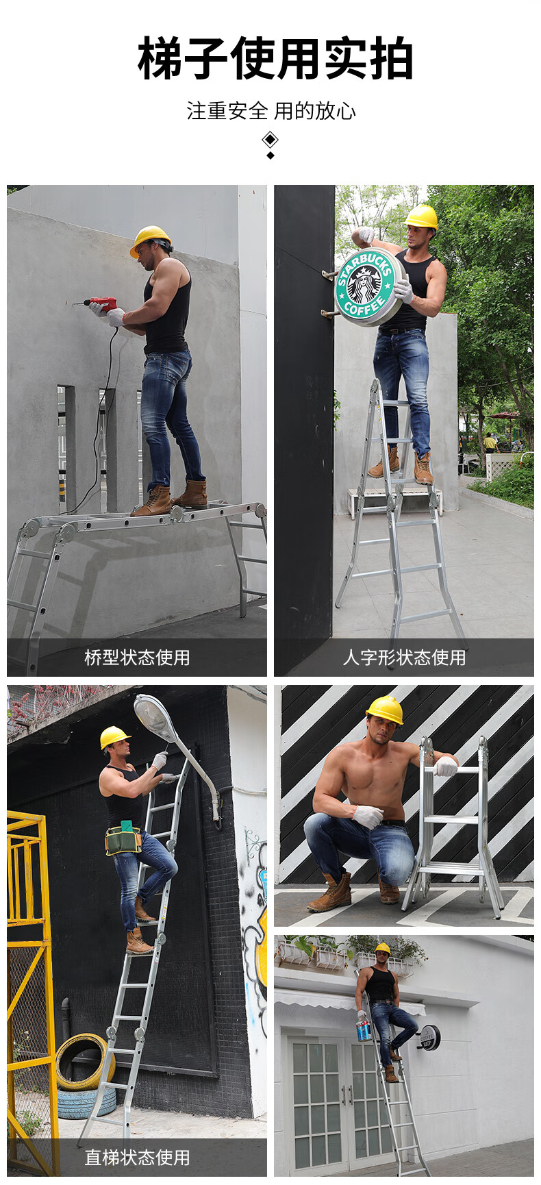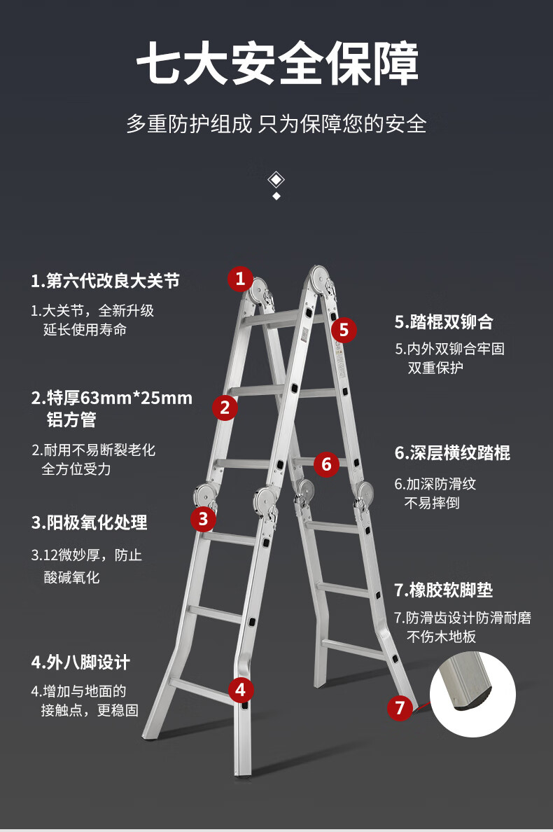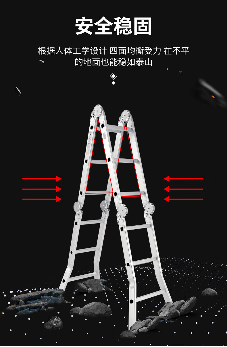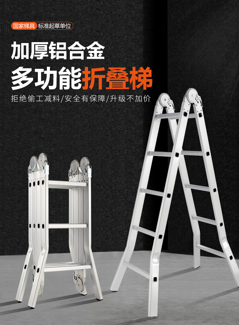 Folding ladder aluminum alloy herringbone ladder 3456 step engineering ladder multifunctional ladder sixth generation large joint ladder 4 fold 3 step curved foot herringbone 1.8 meters equal to straight ladder 3.6 meters