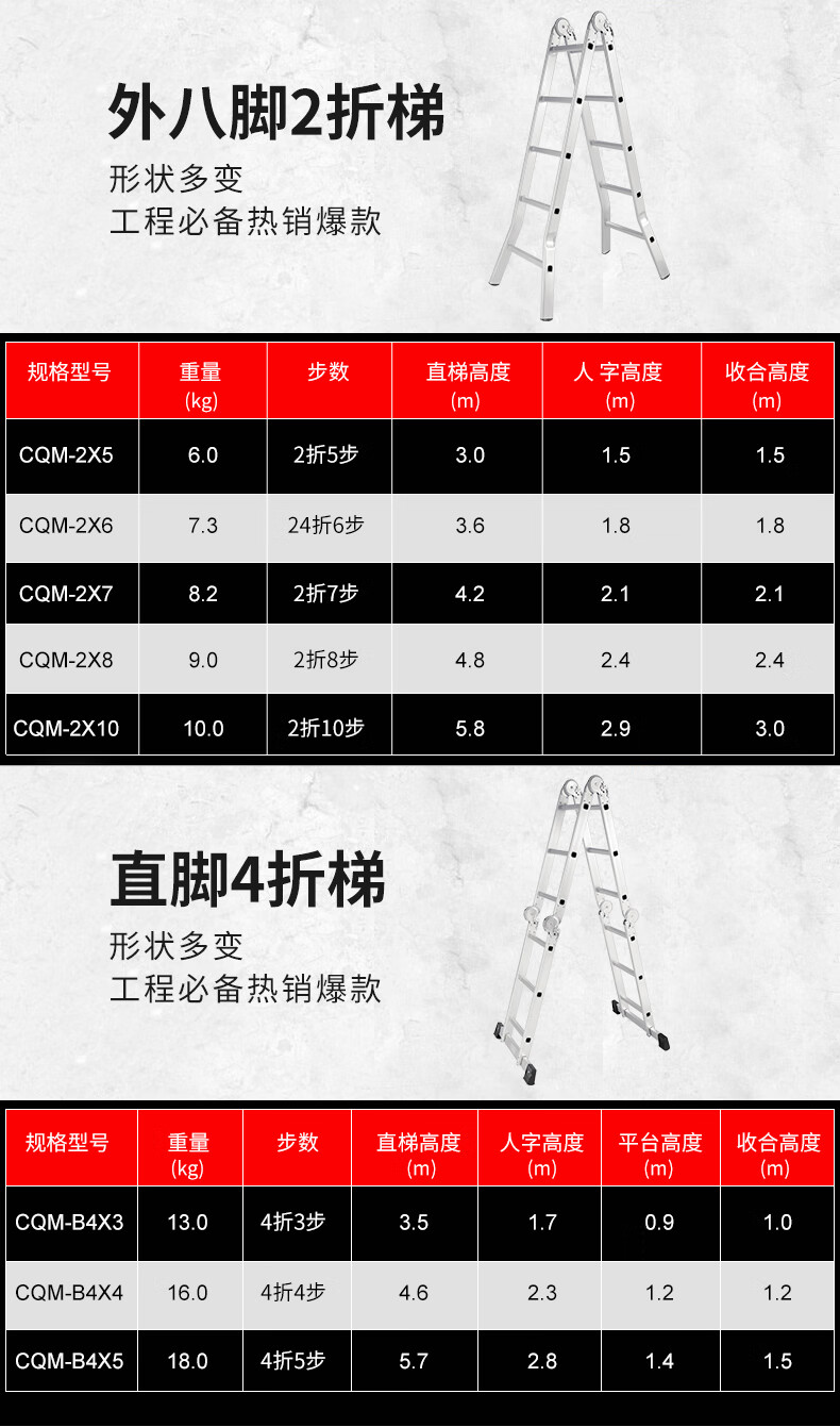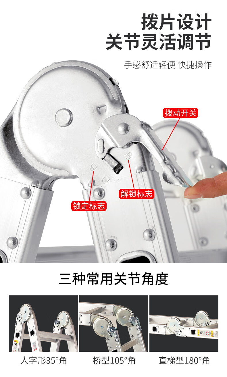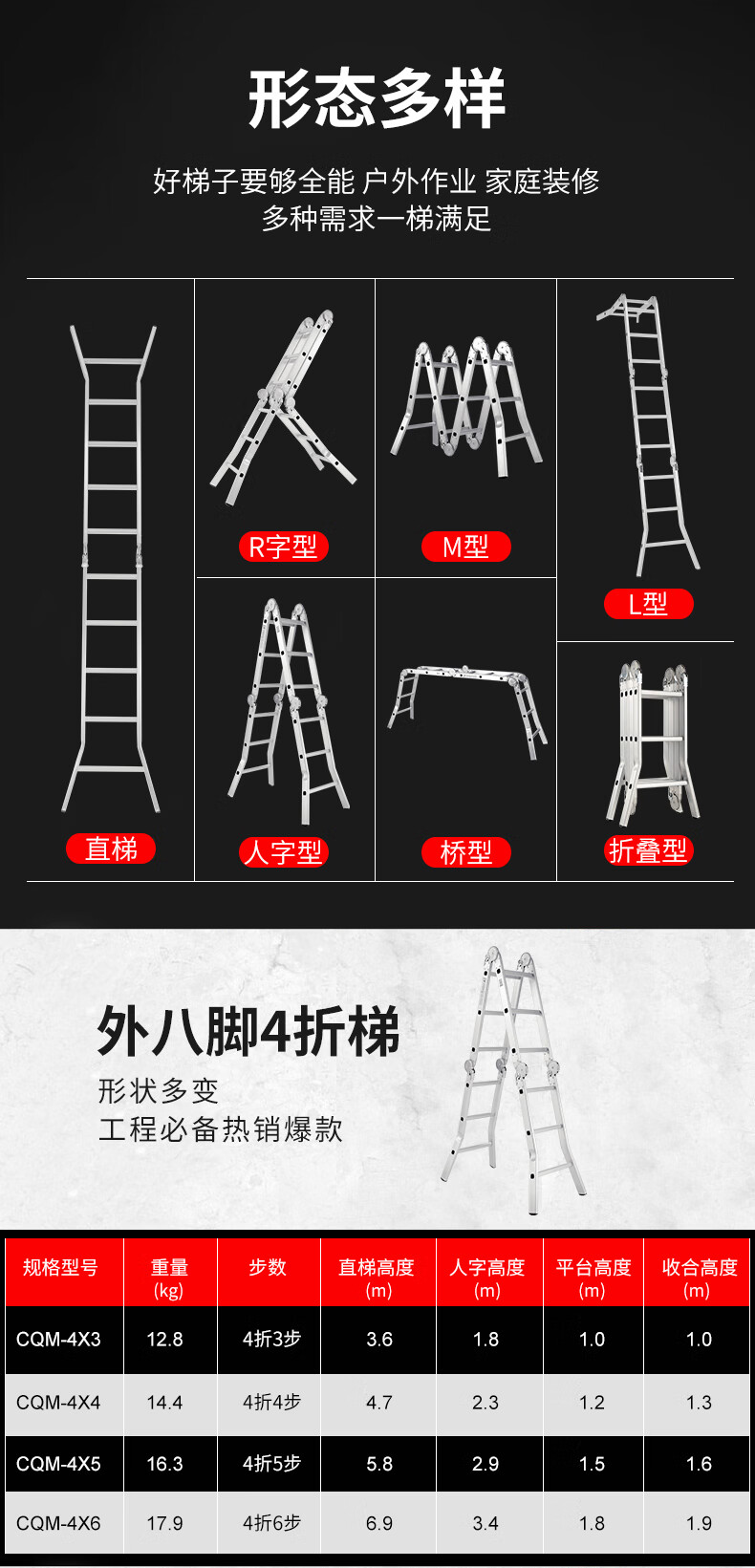 Folding ladder aluminum alloy herringbone ladder 3456 step engineering ladder multifunctional ladder sixth generation large joint ladder 4 fold 3 step curved foot herringbone 1.8 meters equal to straight ladder 3.6 meters