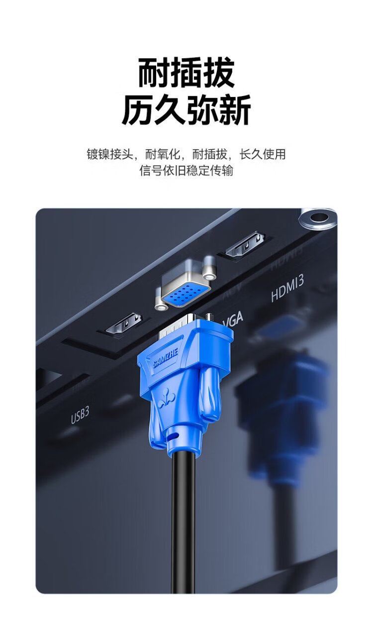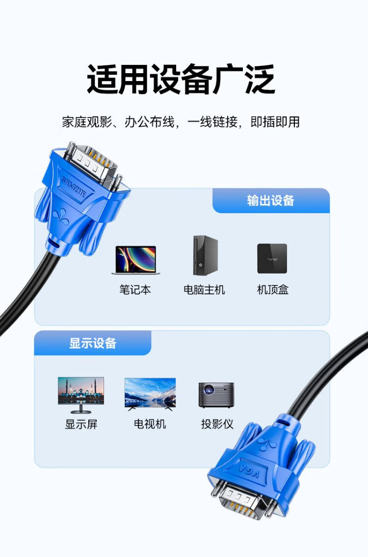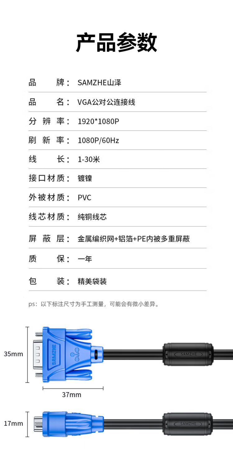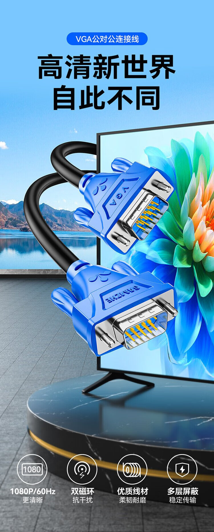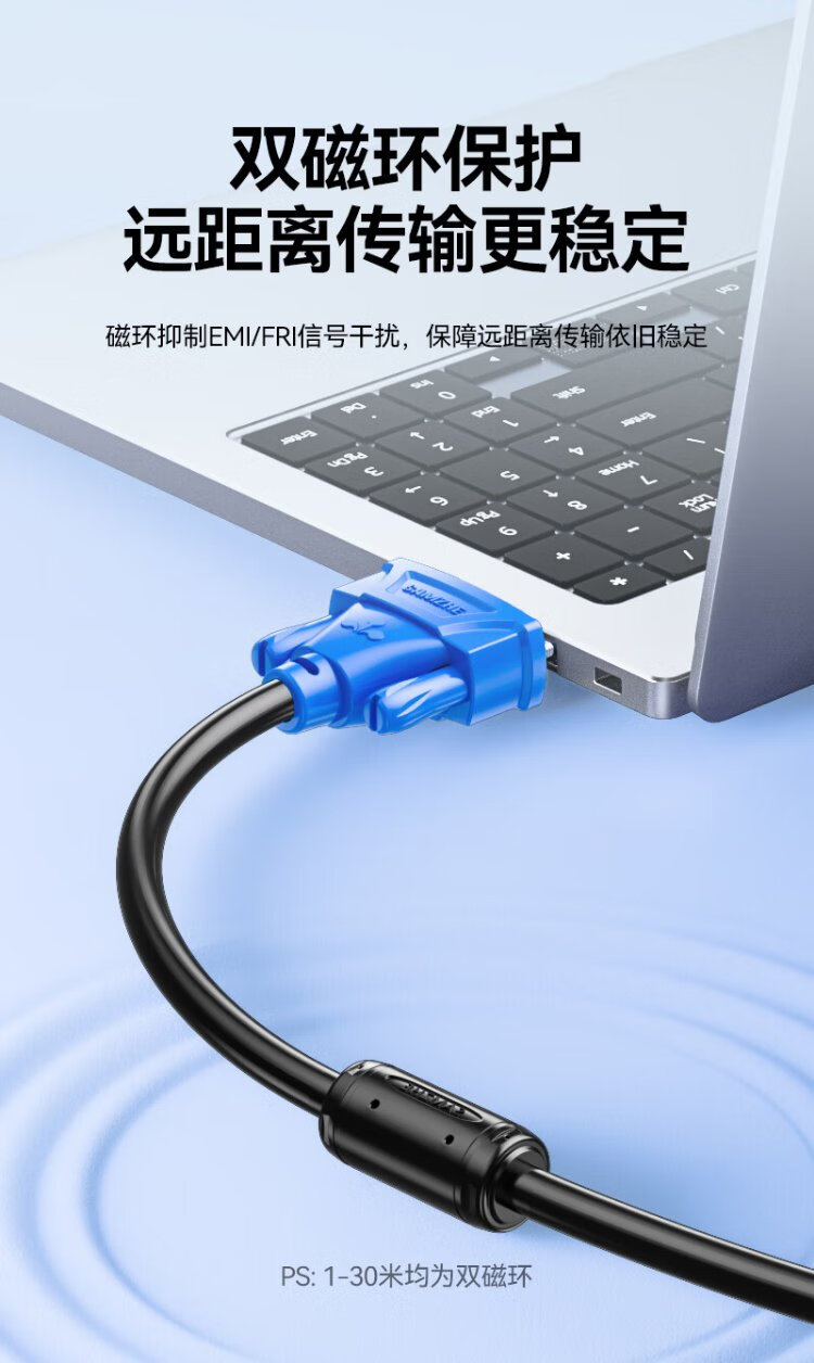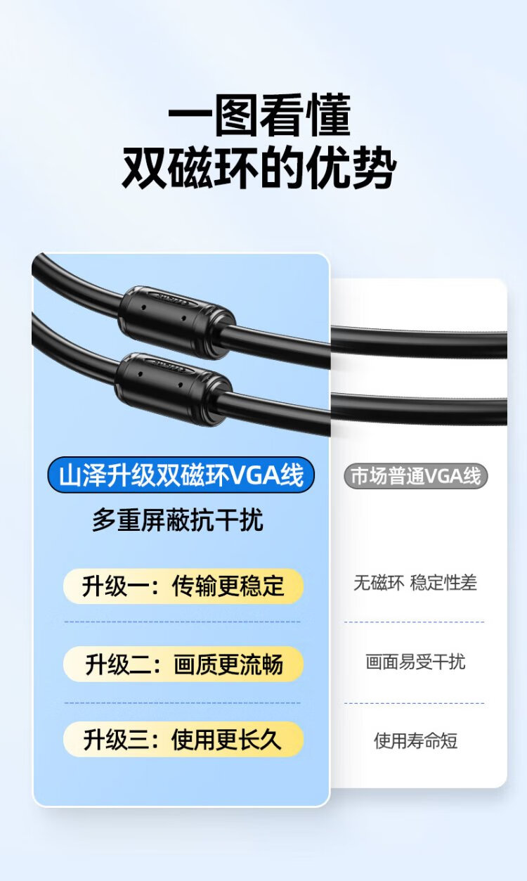 Shanze high-definition VGA cable double magnetic ring 3+6 copper core desktop computer host connected to projector display video signal connection cable 1 meter VM-1010