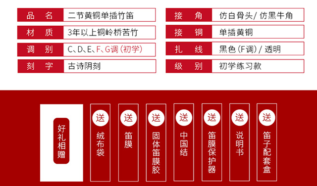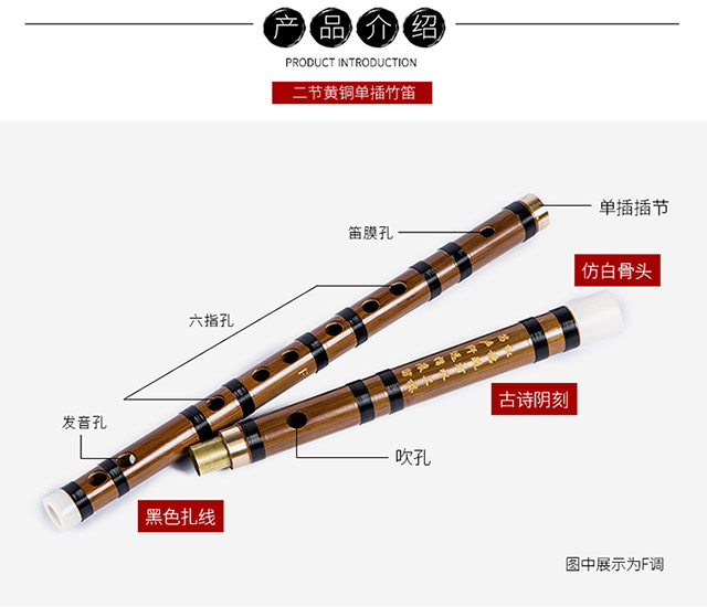 Love bird flute single insert brass flute C key flute bitter bamboo flute horizontal flute student flute XS1001