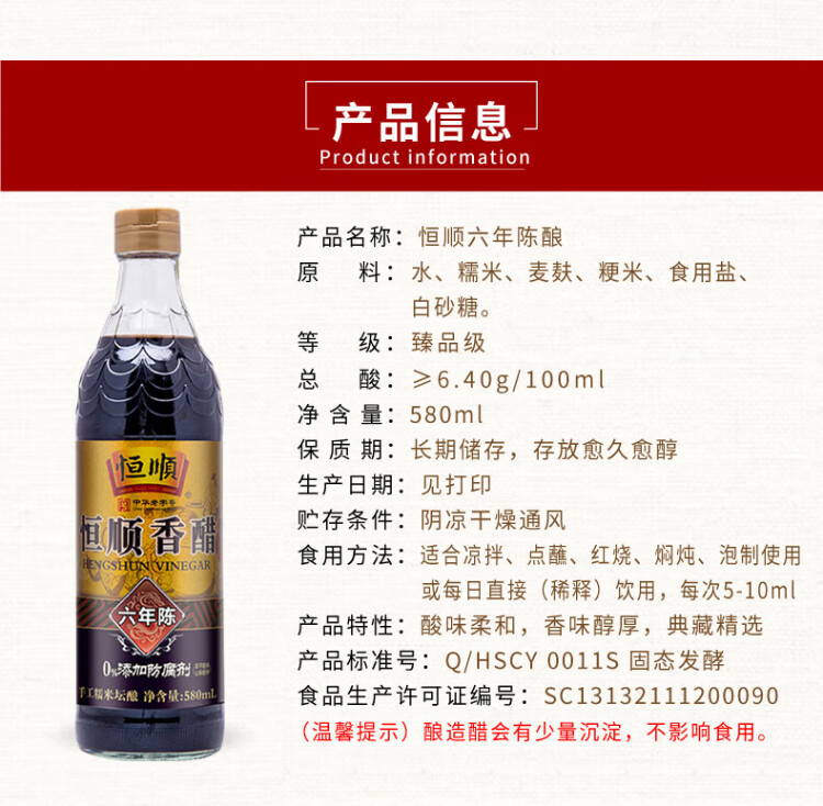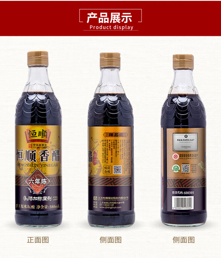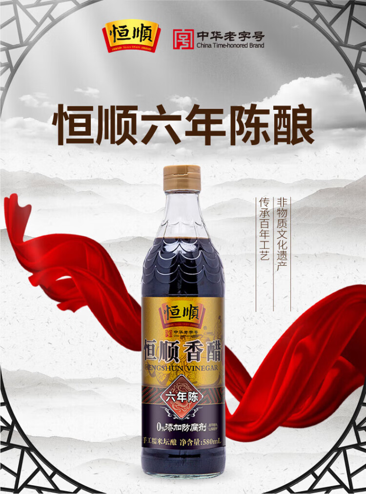 Hengshun Wine Tasting of the Same Style Six Years Old Zhenjiang Balsamic Vinegar 6.4% 580ml Handmade Glutinous Rice Jar Stuffed for Dipping