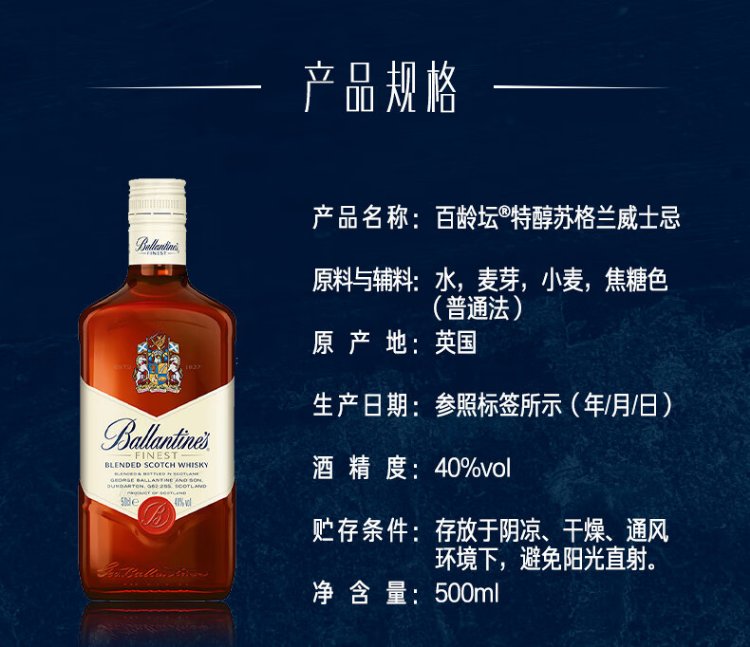 Ballantine's Extra Fine Scotch Blended Whiskey 500ml