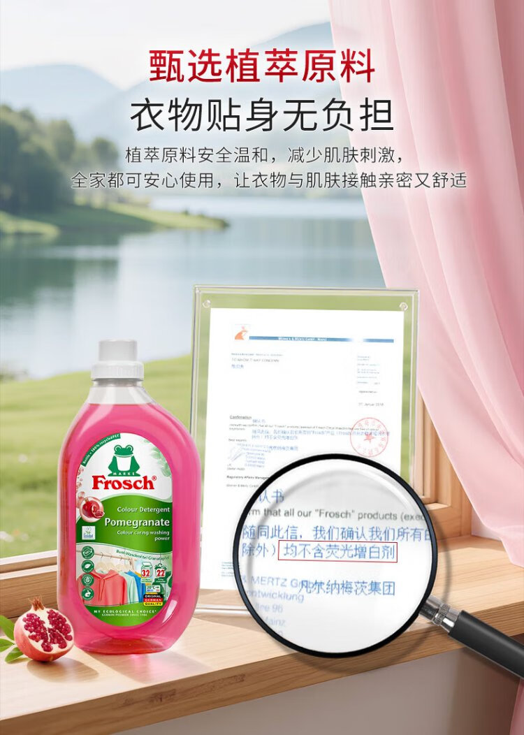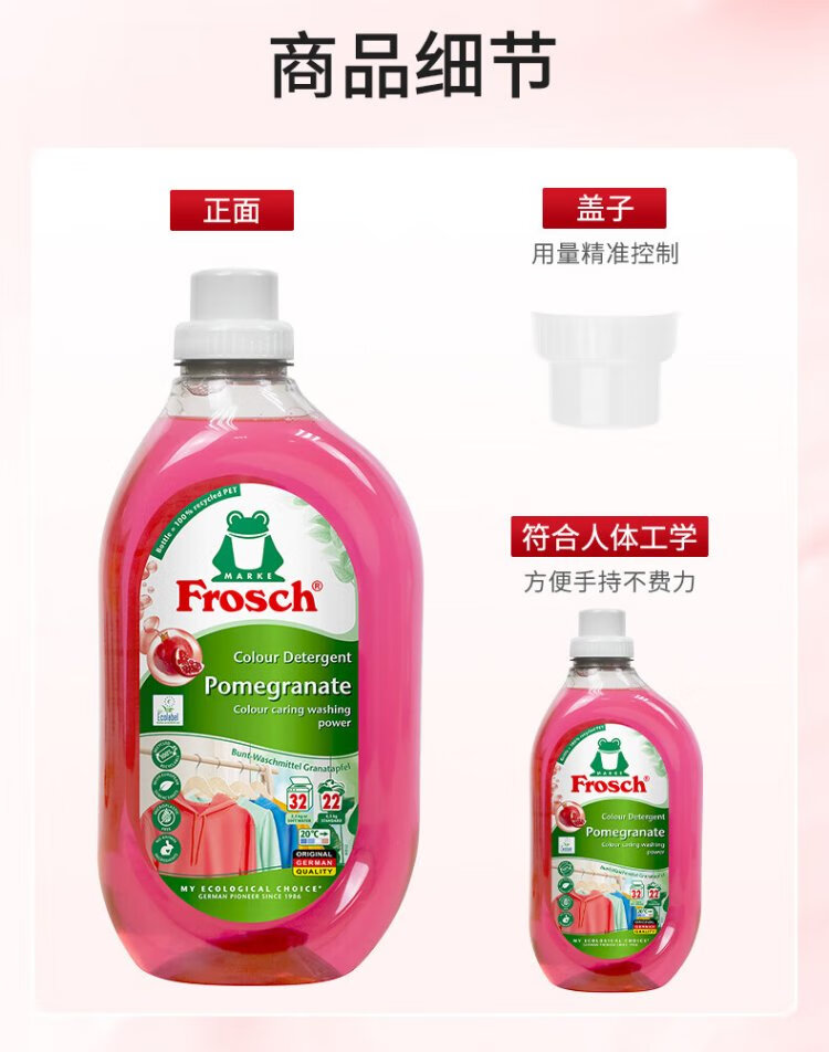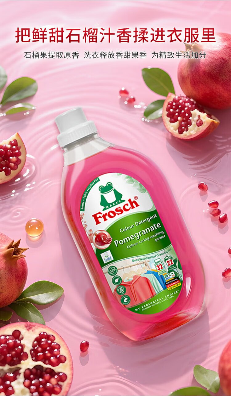 Frosch pomegranate fruit color-fixing laundry detergent 1.5L color protection and anti-color transfer imported from Germany (new and old models replaced)