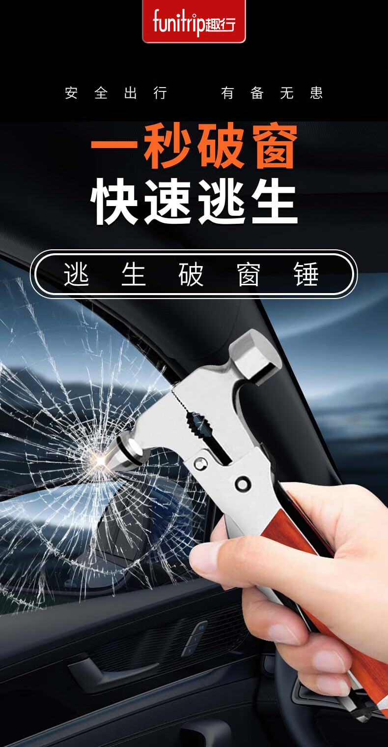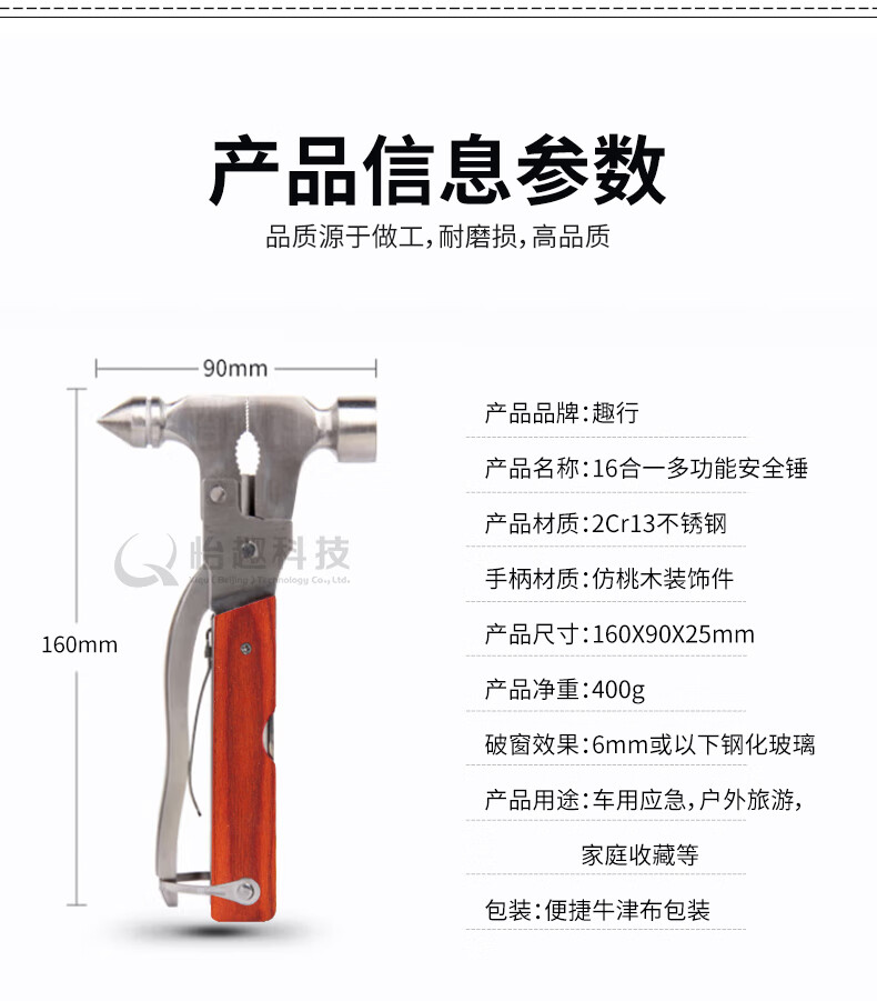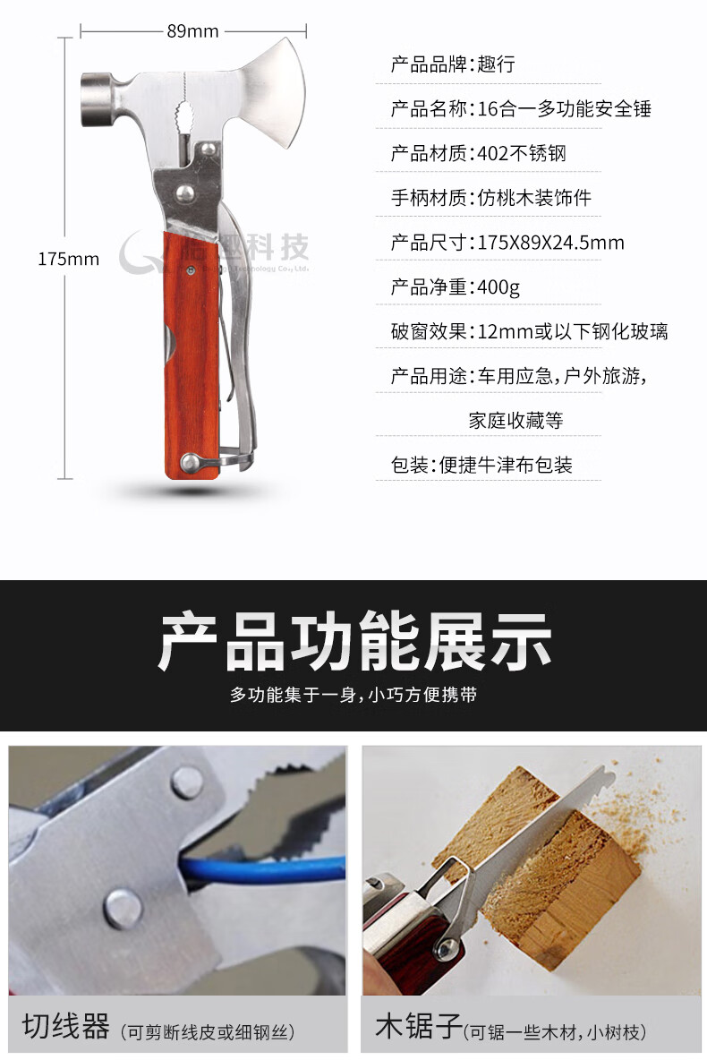 Quxing car safety hammer metal multi-function 16-in-1 home car dual-use life-saving hammer tool combination steel window breaker