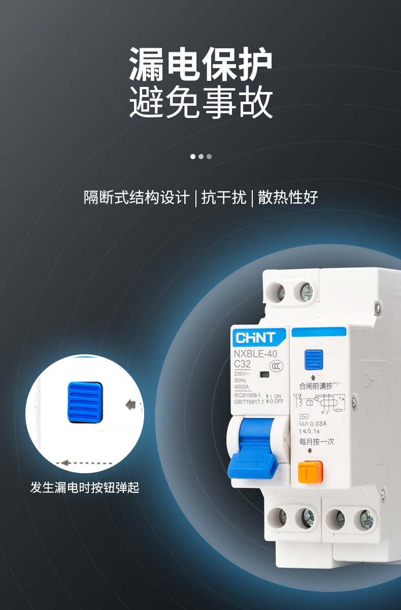 Chint (CHNT) air switch NXBLE-40-1PN-C20-0.03A-4.5kA small circuit breaker leakage protector
