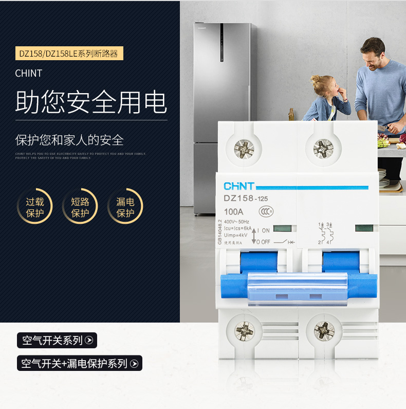 Chint (CHNT) air switch circuit breaker air leakage circuit breaker DZ158LE2P/100A main gate short circuit leakage protector leakage protection switch