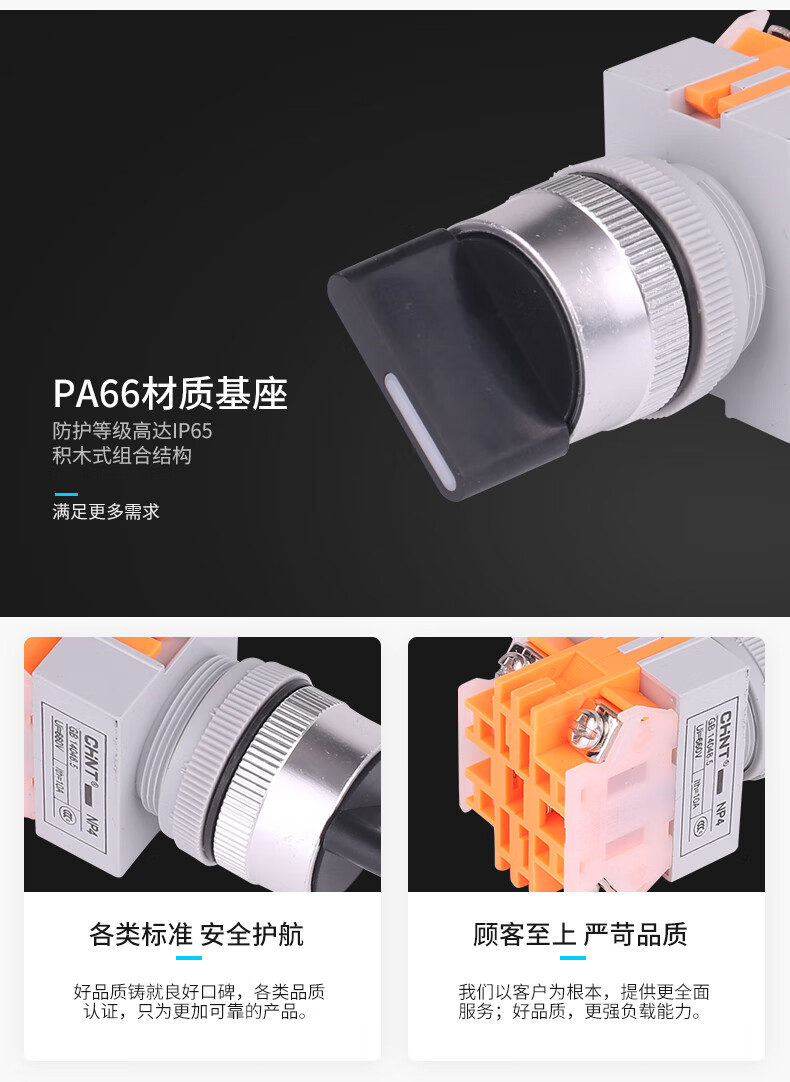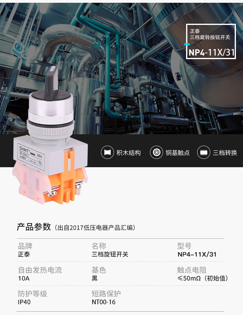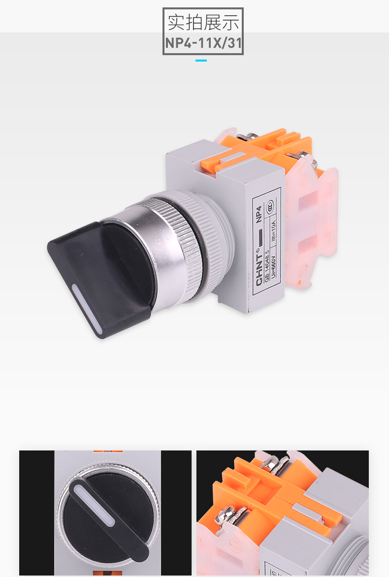 Chint (CHNT) three-speed rotary button switch, self-locking rotary switch, one open and one closed, 22mm, black