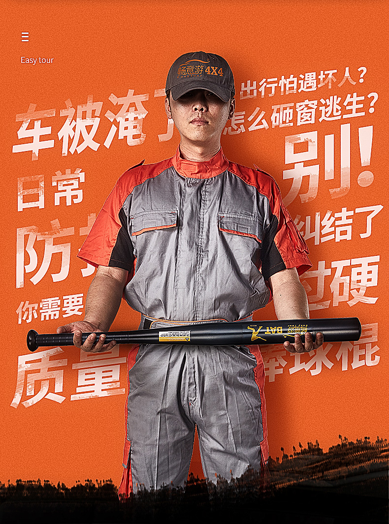 Easy Tour baseball bat alloy bat car baseball bat self-defense and anti-wolf car self-defense self-driving travel equipment 25 inches black