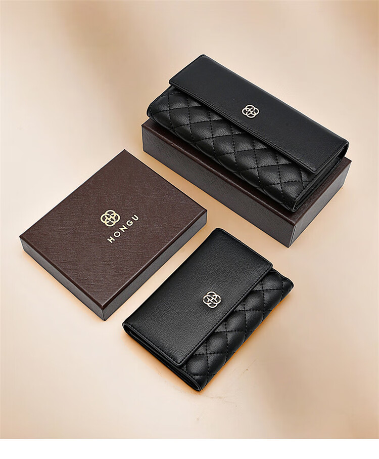 Honggu Wallet Women's Cowhide Long Wallet Tri-fold Multifunctional Diamond Clutch New Year's Birthday Gift