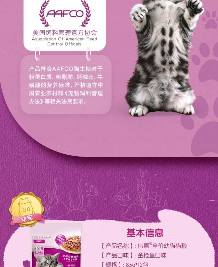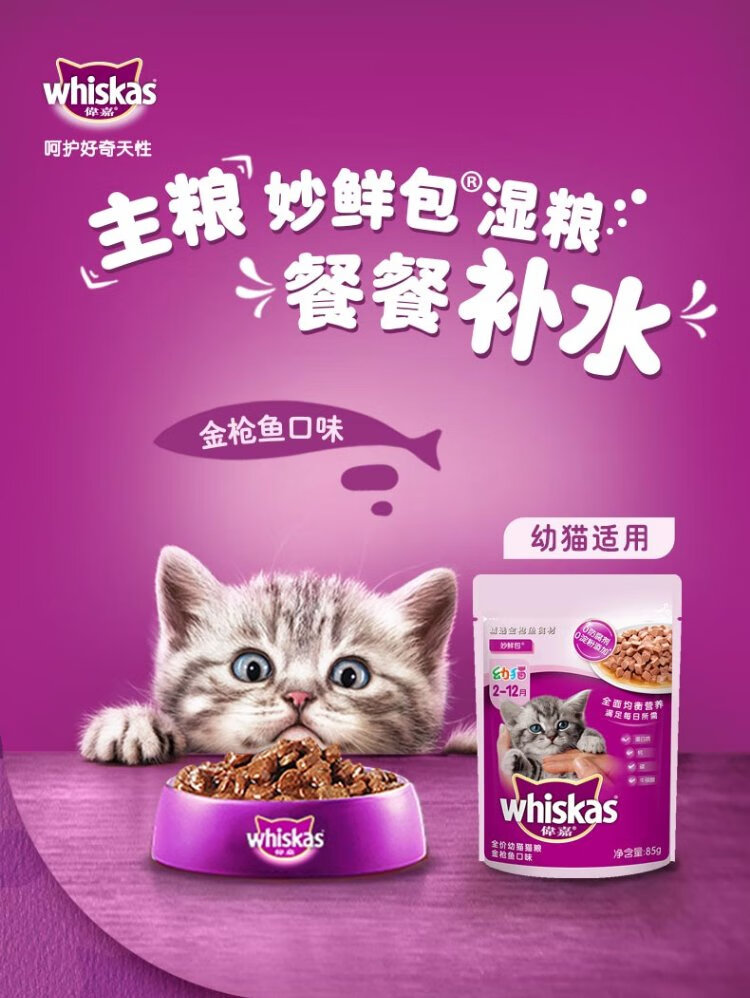 Weijia Cat Canned Soft Pack Cat Wet Food Staple Miaoxian Pack Kitten Cat Food 85g*12 Tuna Flavor