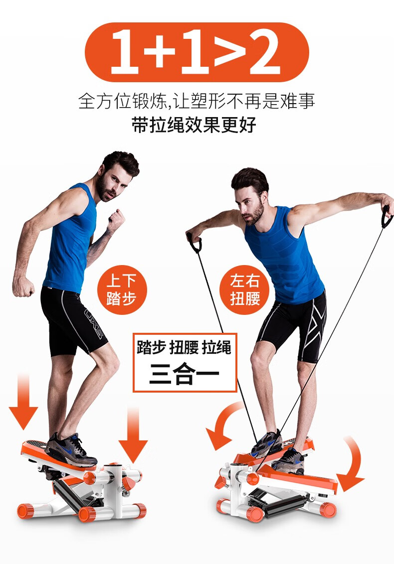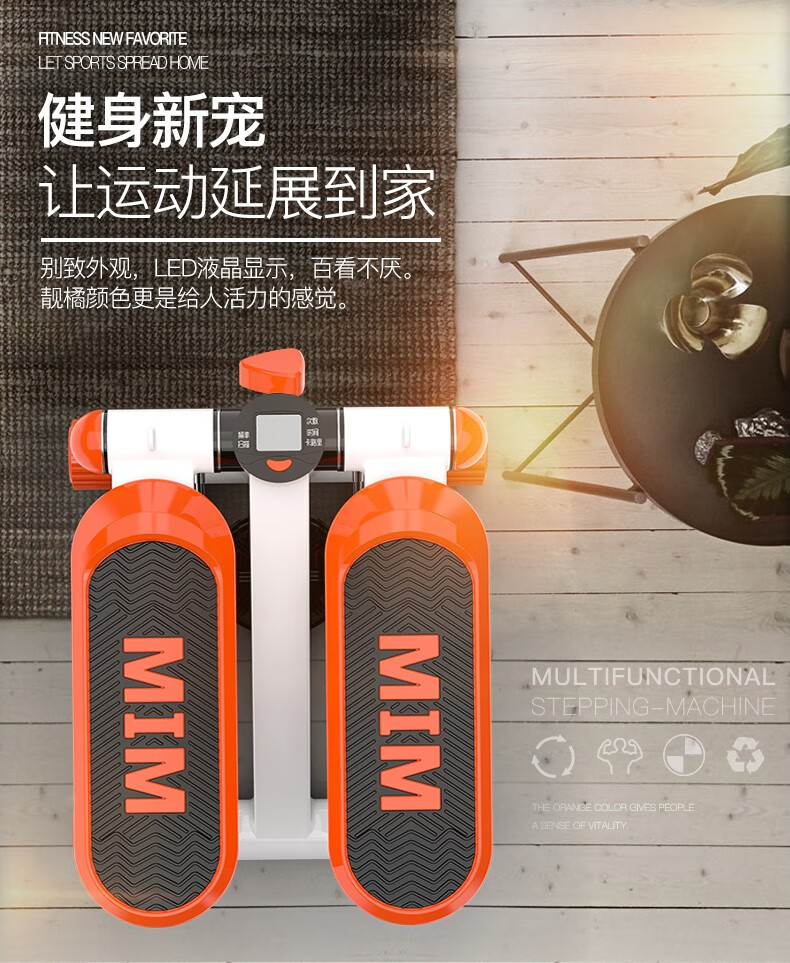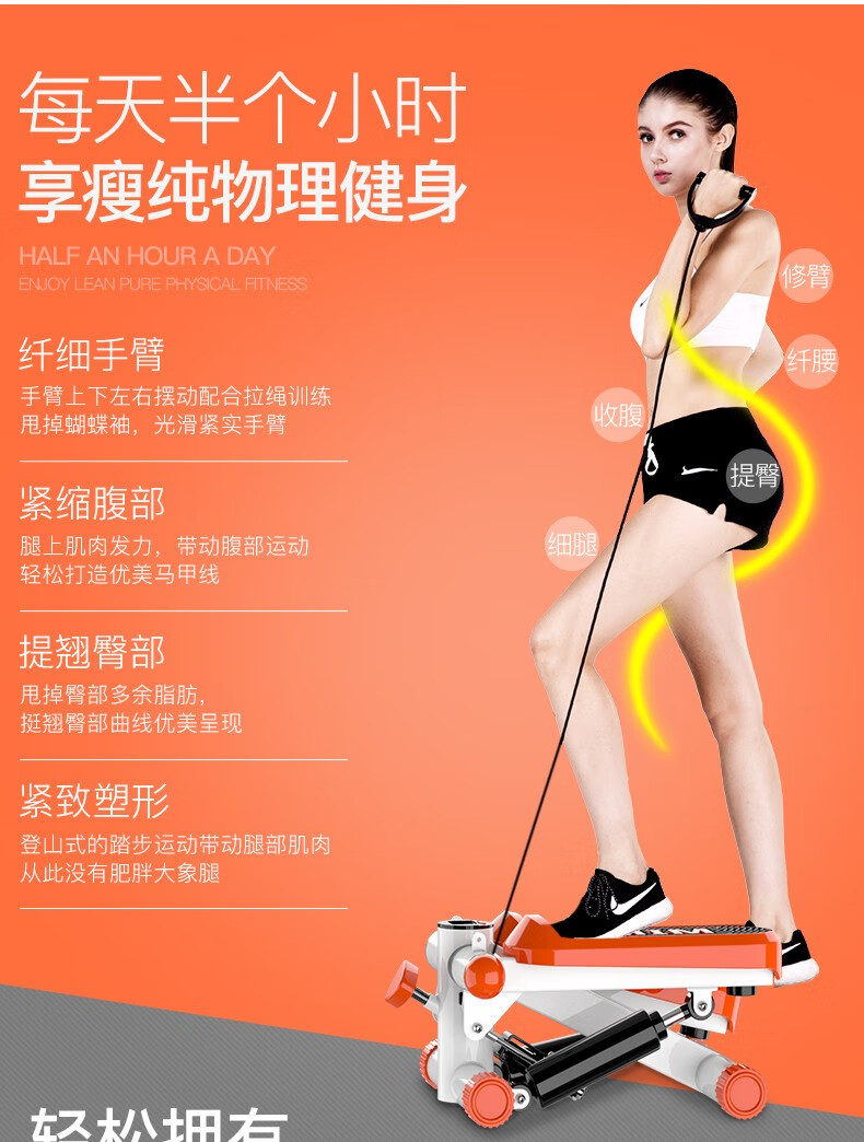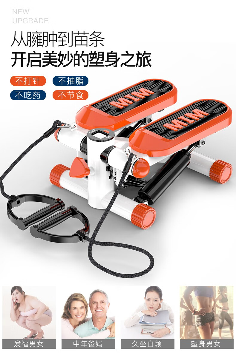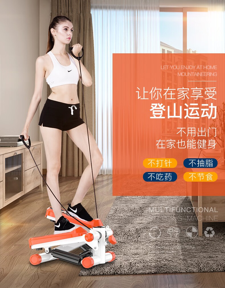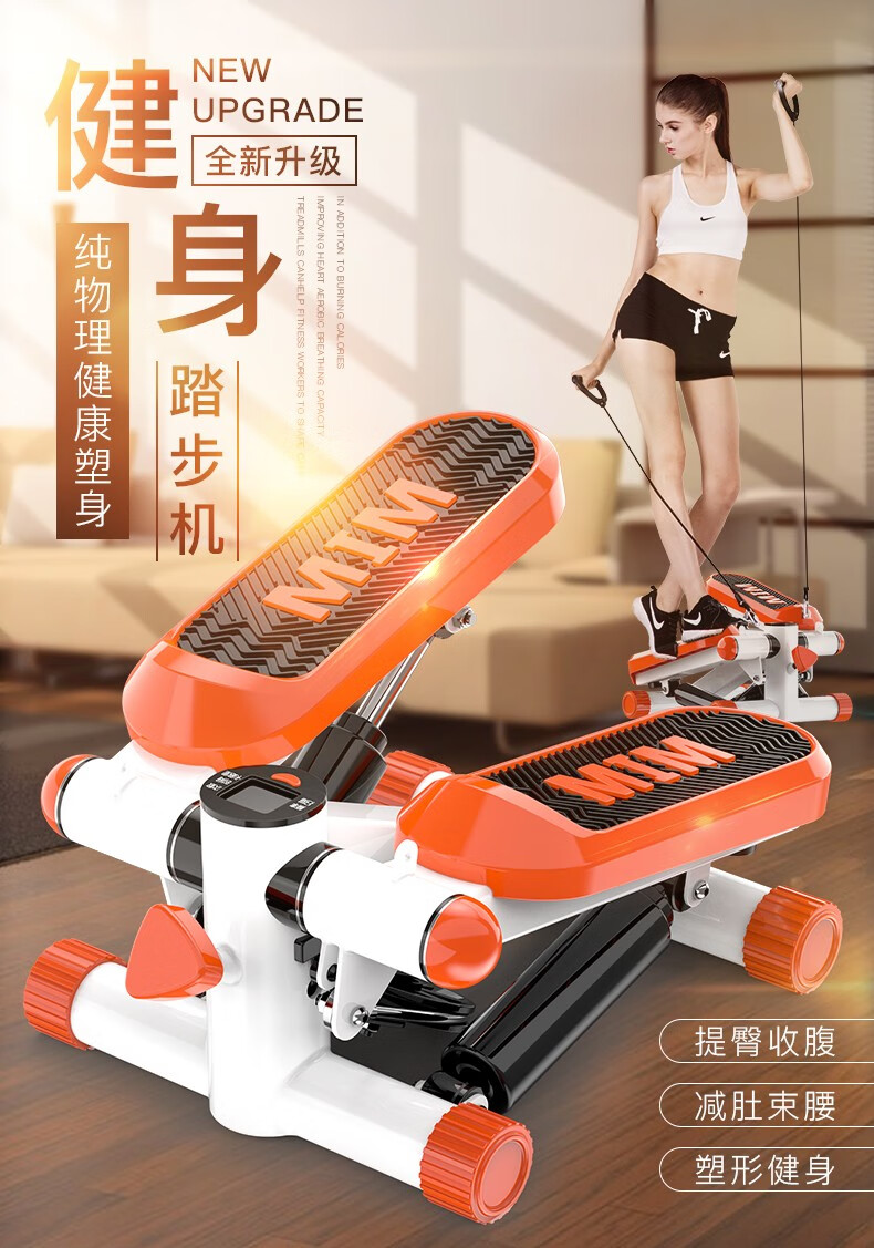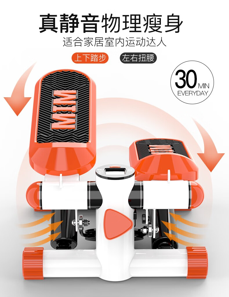 Wankai fitness equipment stepper home silent hydraulic mini pedal machine jogging machine in-situ pedal machine orange + drawstring + floor mat + waist twisting plate
