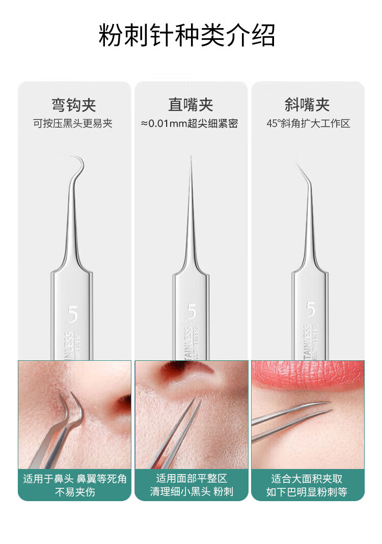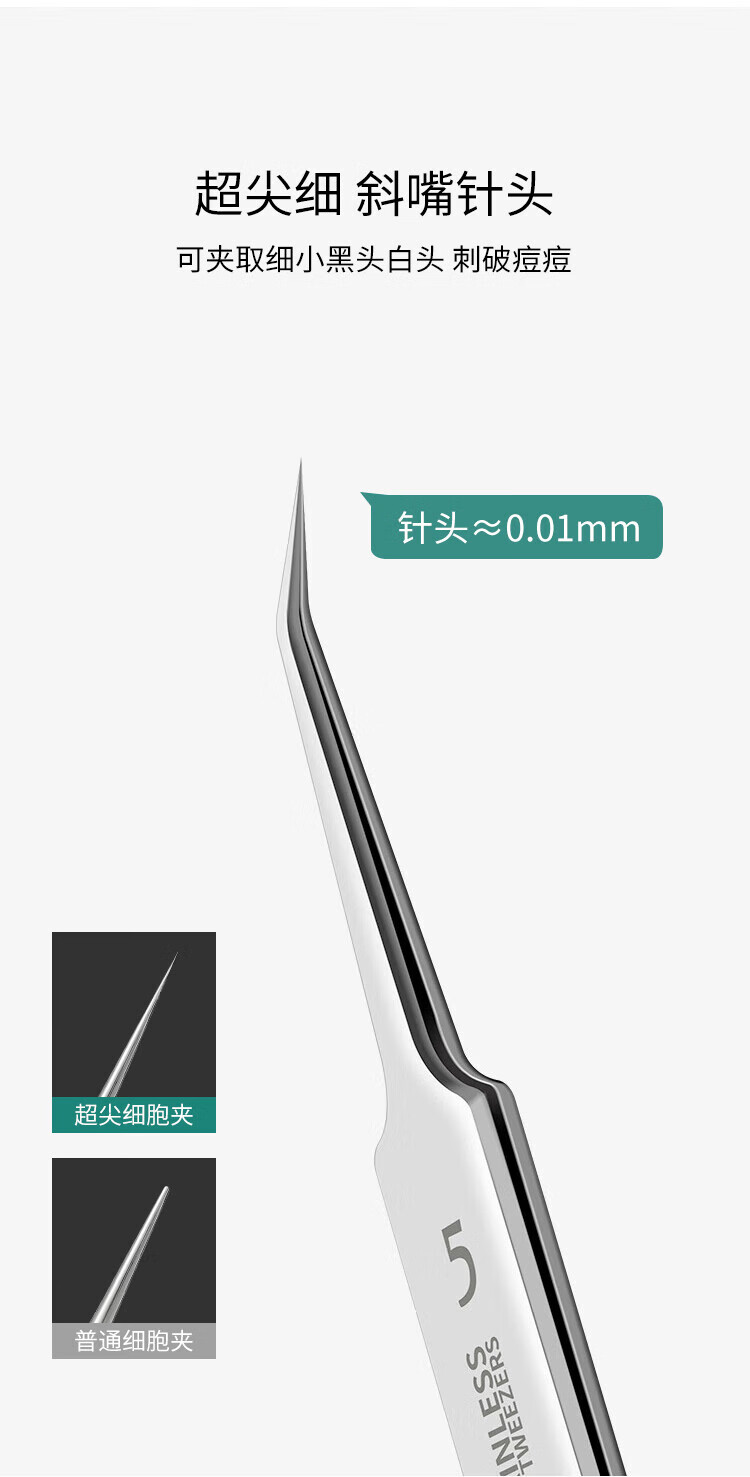 Beauty Skin Super Sharp No. 5 Blackhead Removal Ultra-Fine Cell Clip Oblique Clip Acne Needle Tweezers Pimple Squeezing Needle Beauty Salon Use MF8078