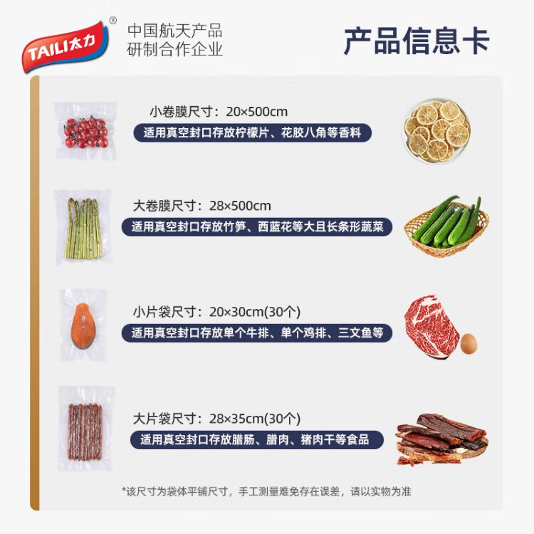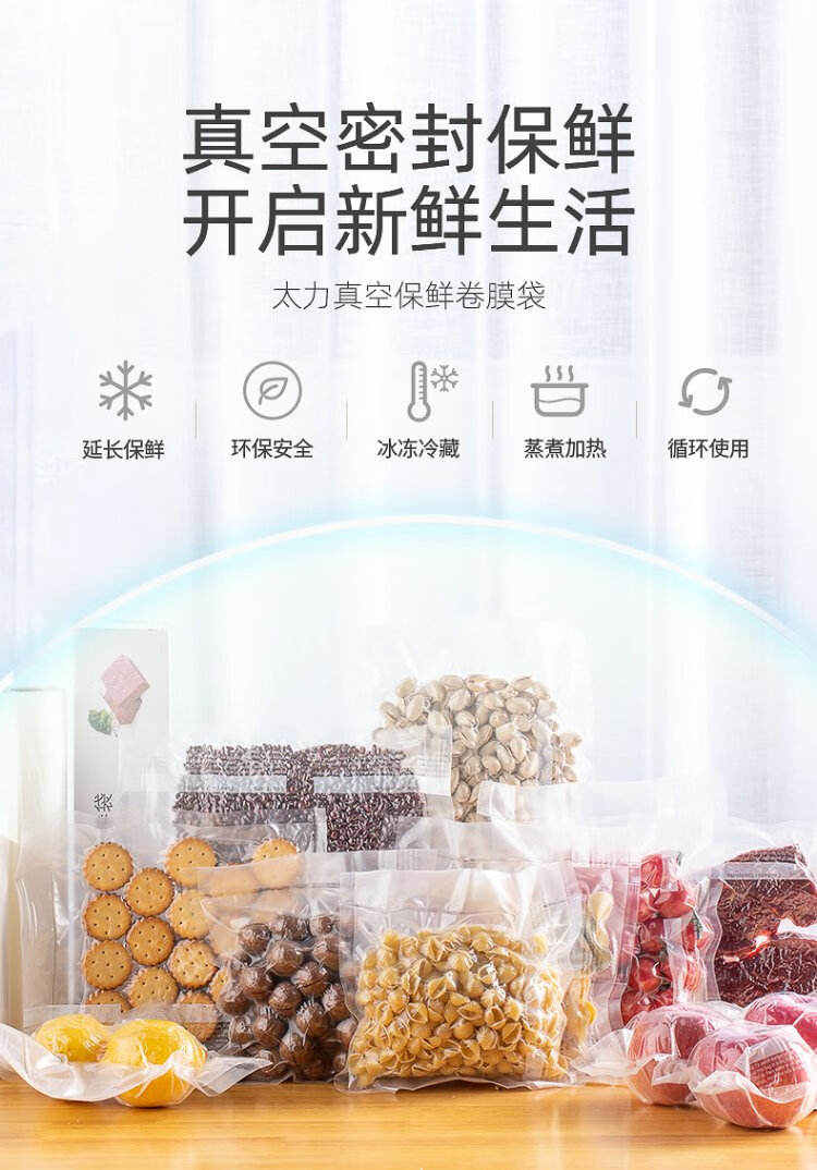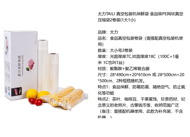 Taili vacuum sealing machine vacuum fresh-keeping bag vacuum bag food sealing special bag vacuum bag compression bag 2 rolls (1 large 1 small)