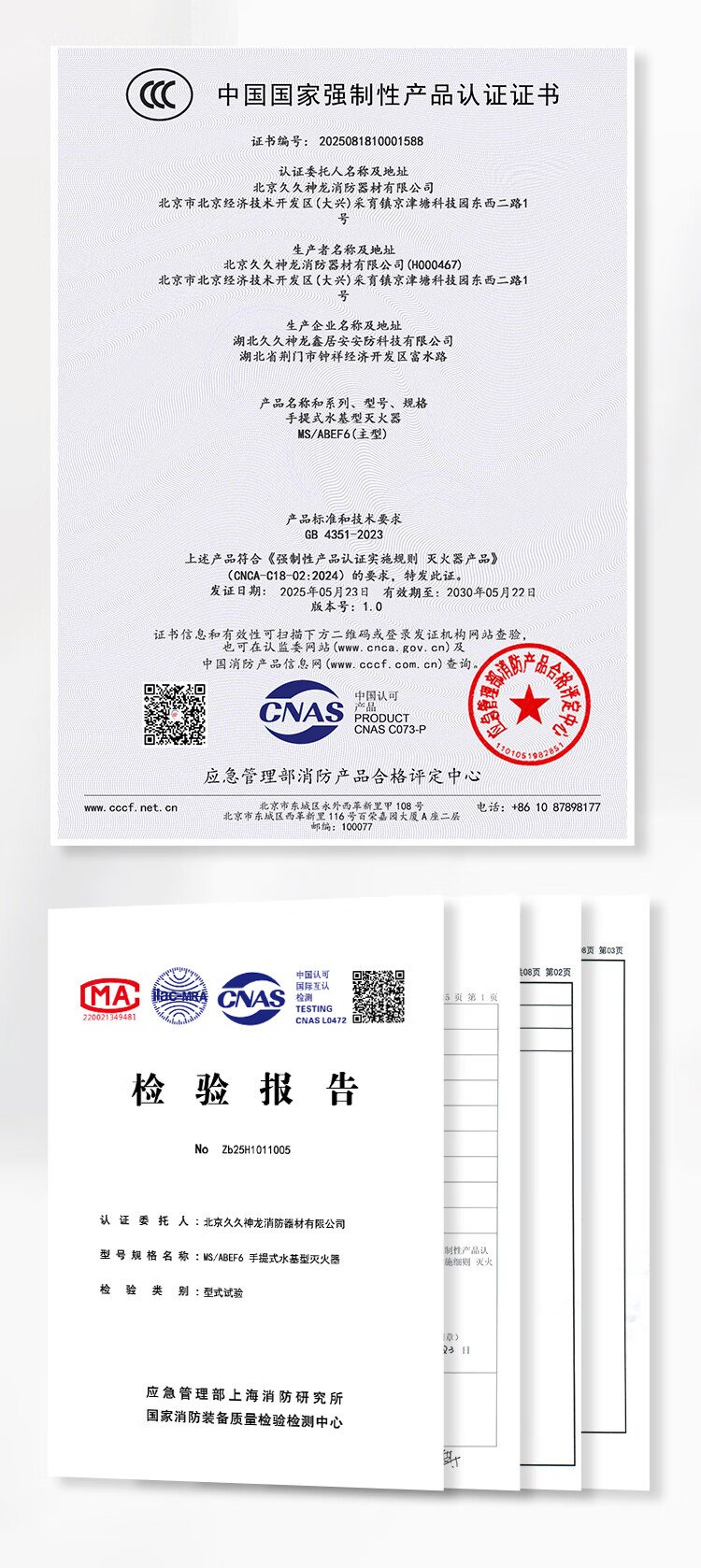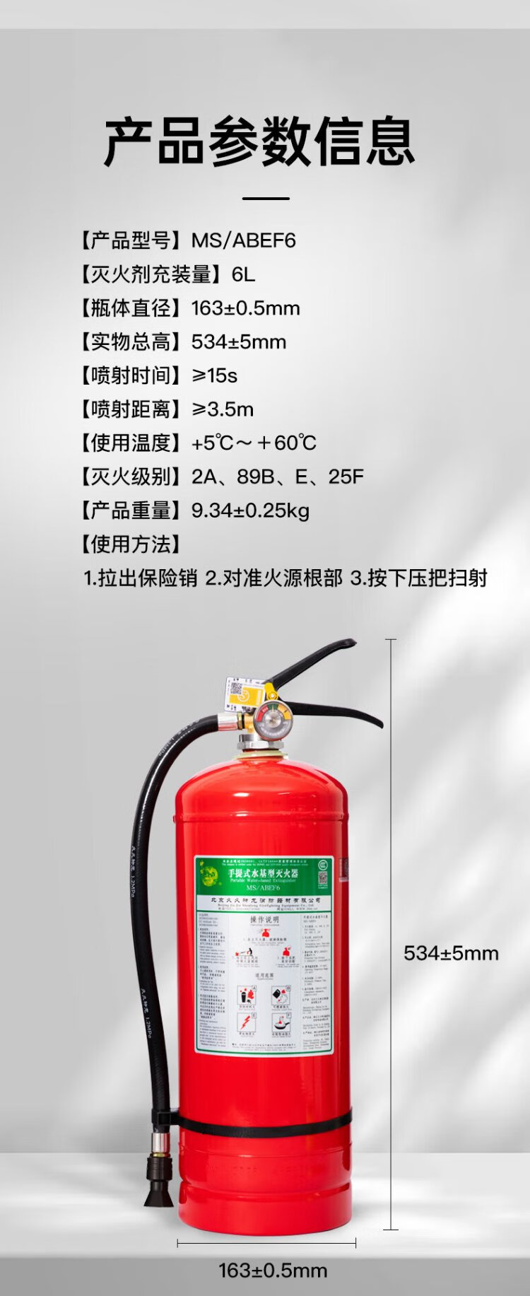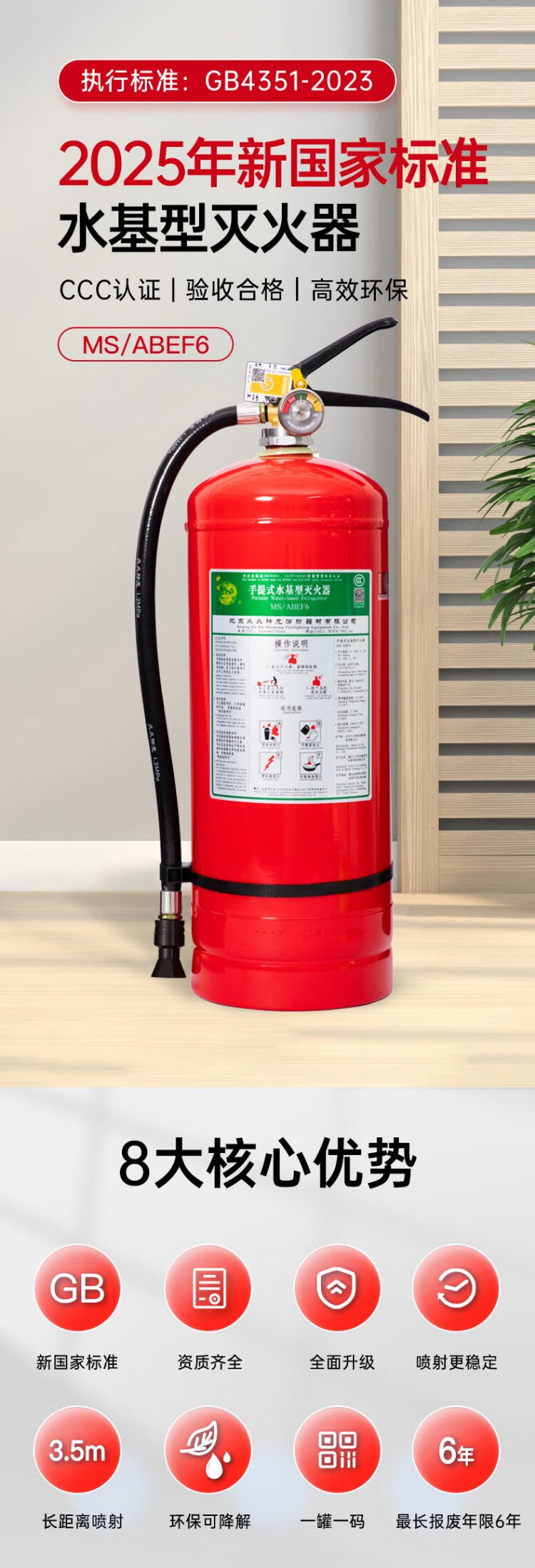 Shenlong 25-year new national standard water-based fire extinguisher 6 liters vehicle-mounted household and commercial fire extinguisher 6L MS/ABEF6 6L water-based 5 60