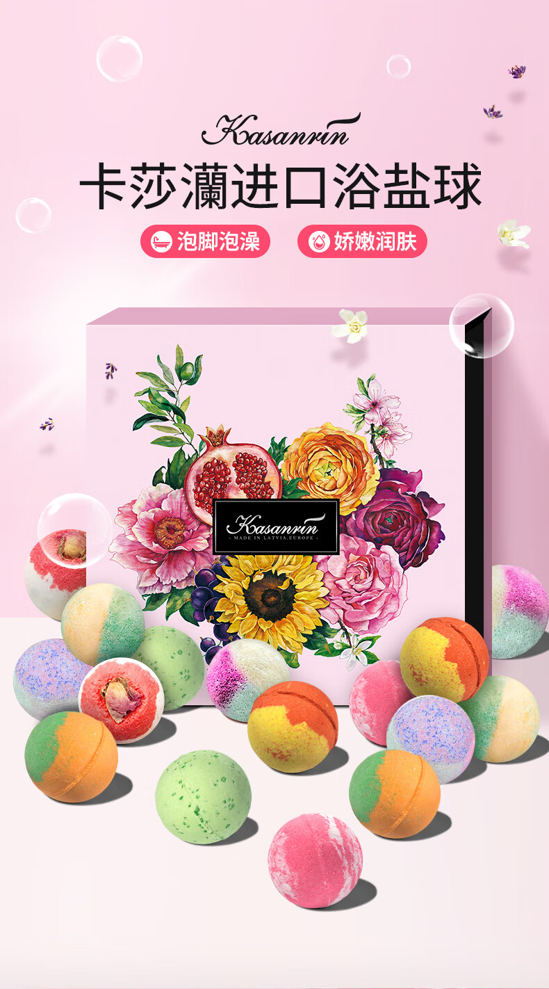 Kasaha imported bath salt ball bath ball essential oil ball foot bath ball rejuvenation scrub exfoliating bath salt bath salt ball 35g * 16 pieces foot bath
