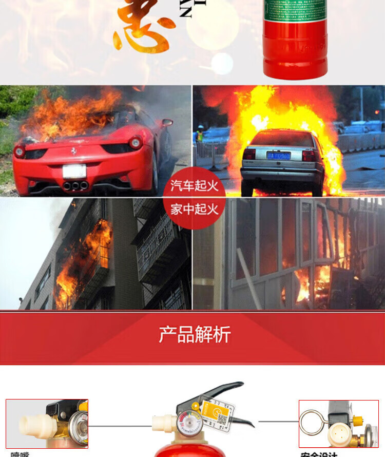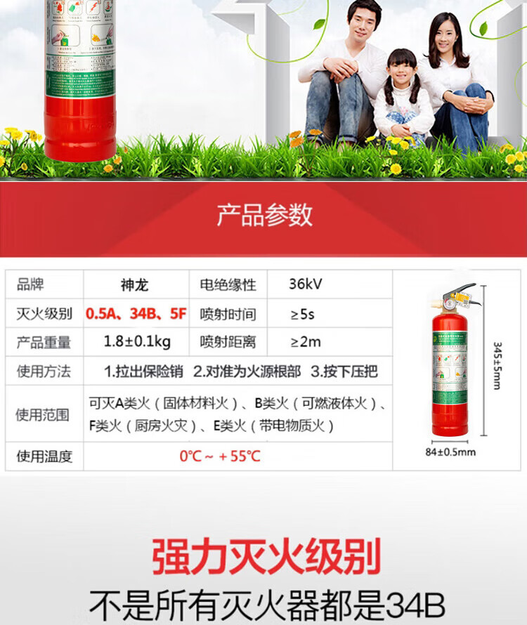 Shenlong water-based environmentally friendly fire extinguisher 950ml Vehicle-mounted household fire extinguisher 950ml MSWJ950