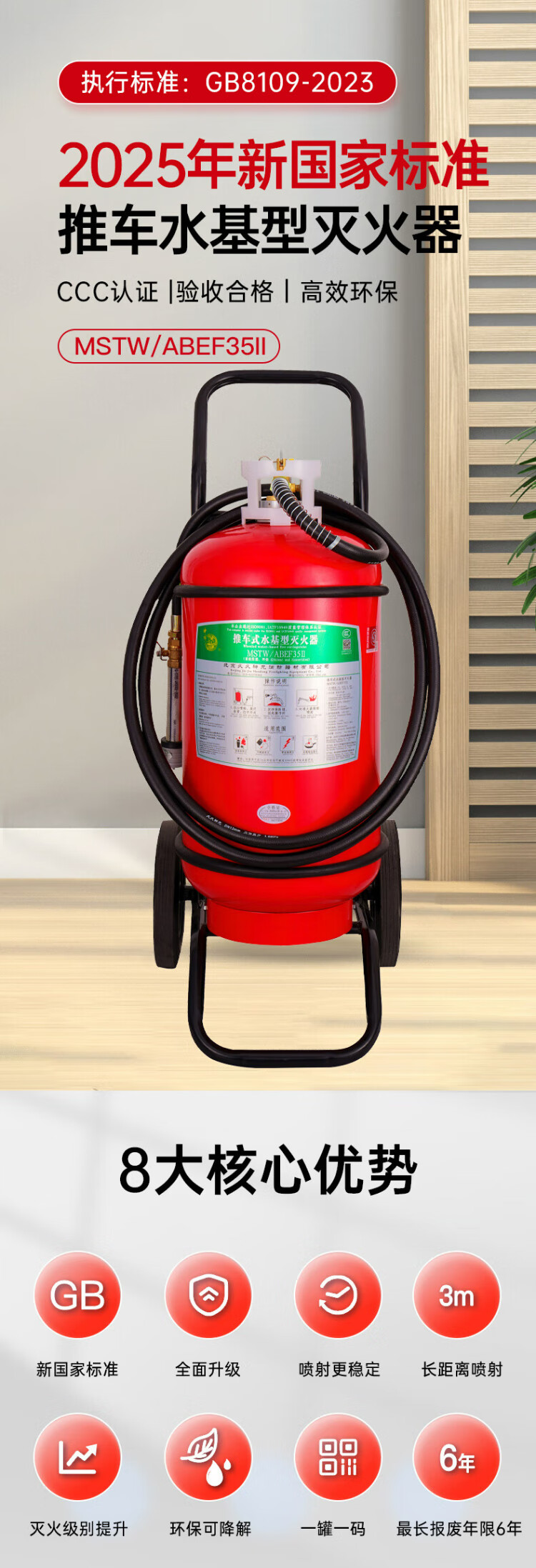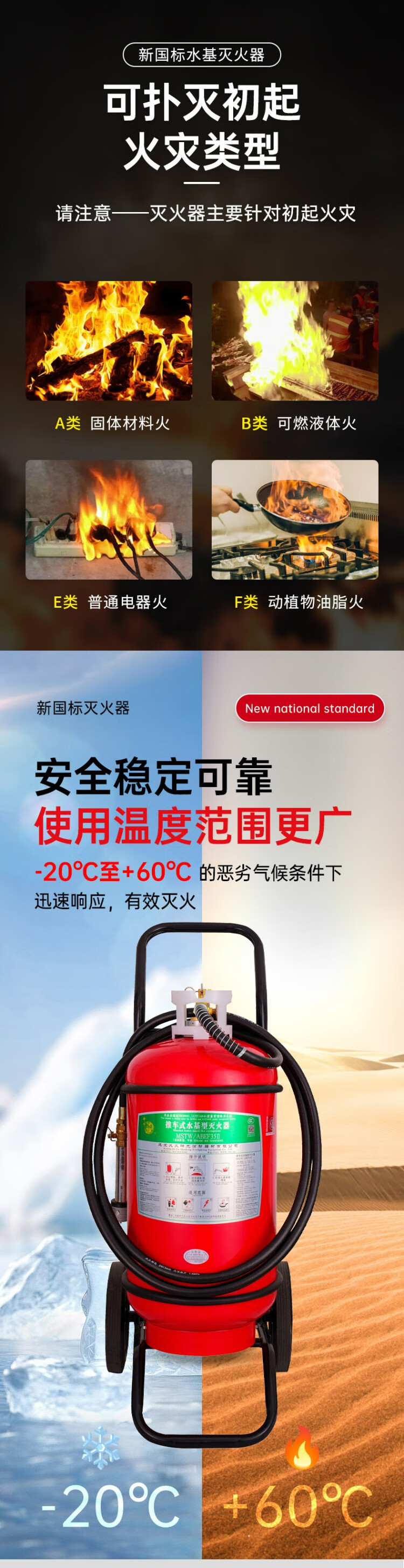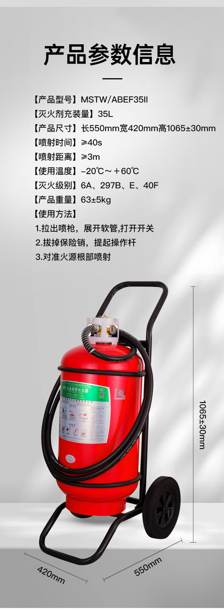 Shenlong 25-year new national standard low temperature -20 water-based fire extinguisher 35L commercial fire extinguisher MSTW/ABEF35 35L water-based -20 60