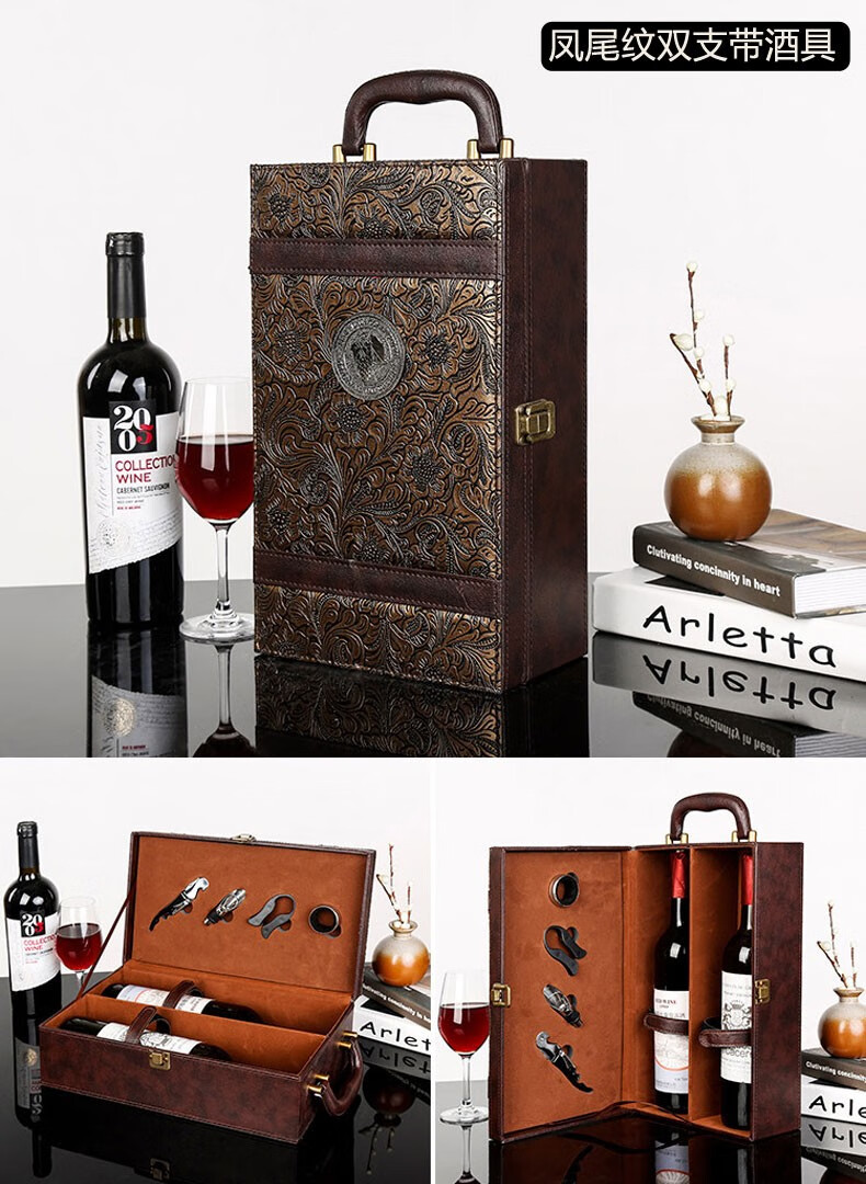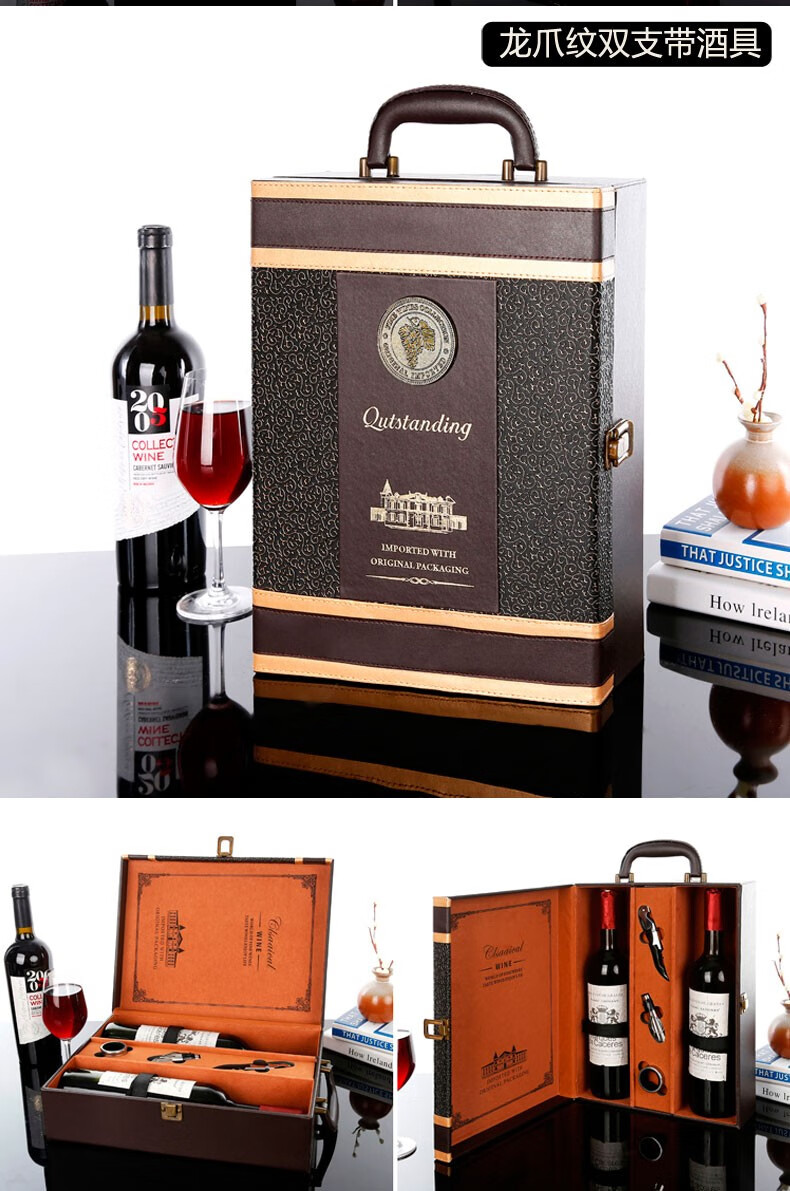 Boelter double red wine leather box wine packaging box empty box high-end leather box red wine gift box wine utensils wine box customization dragon claw pattern double wine utensils