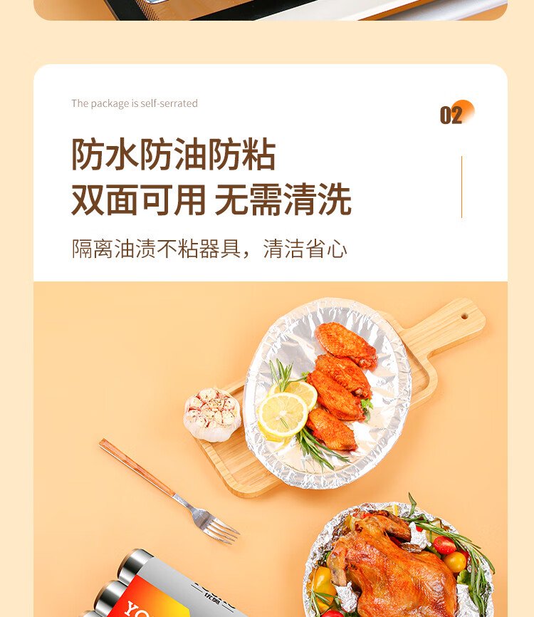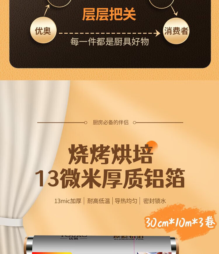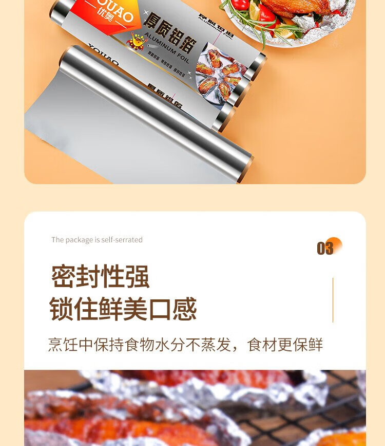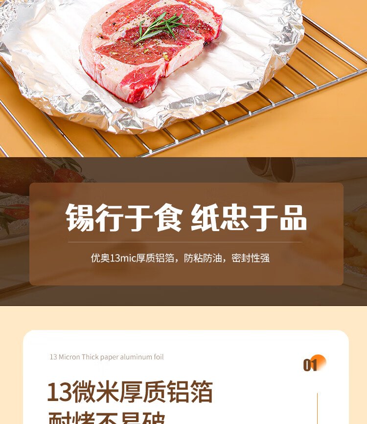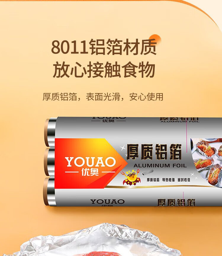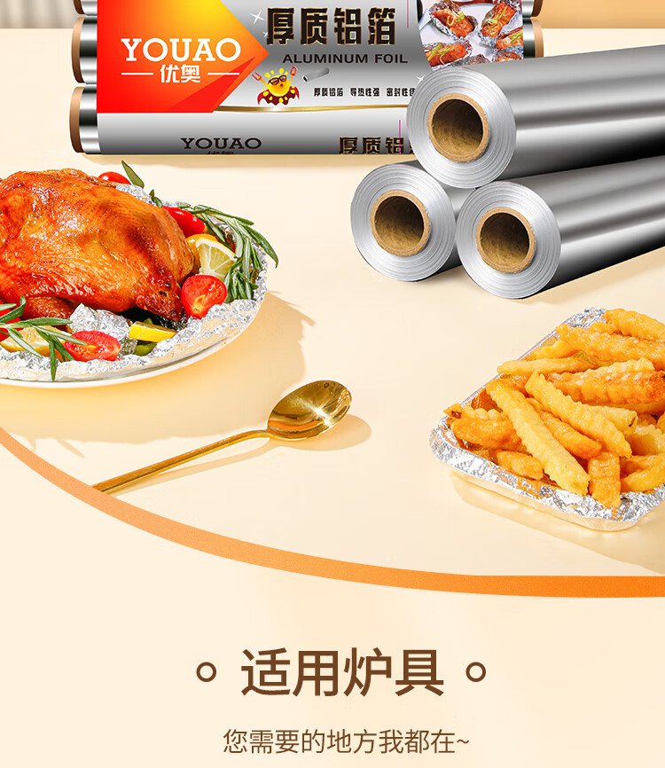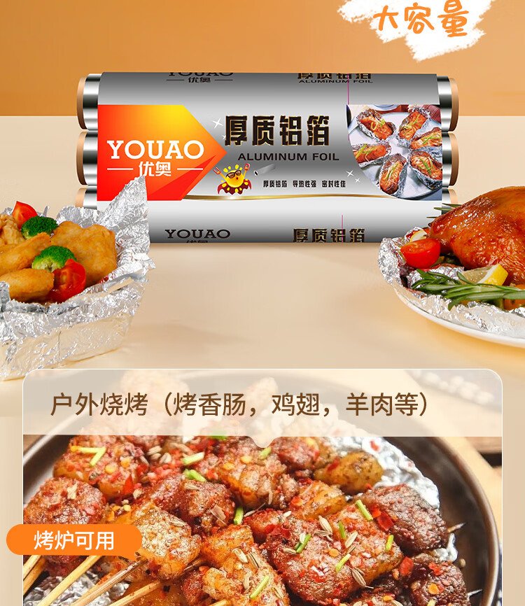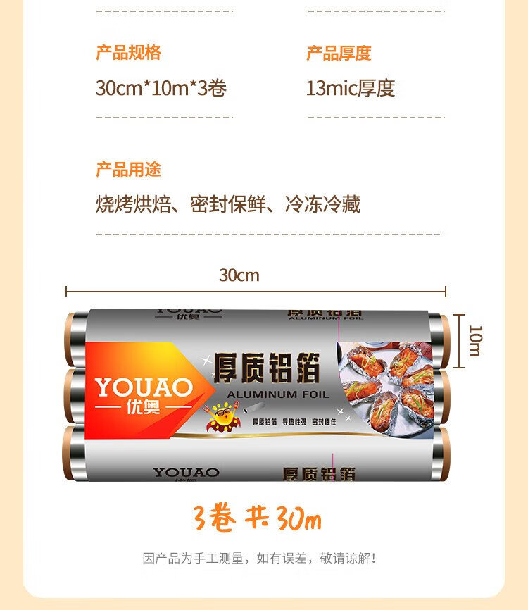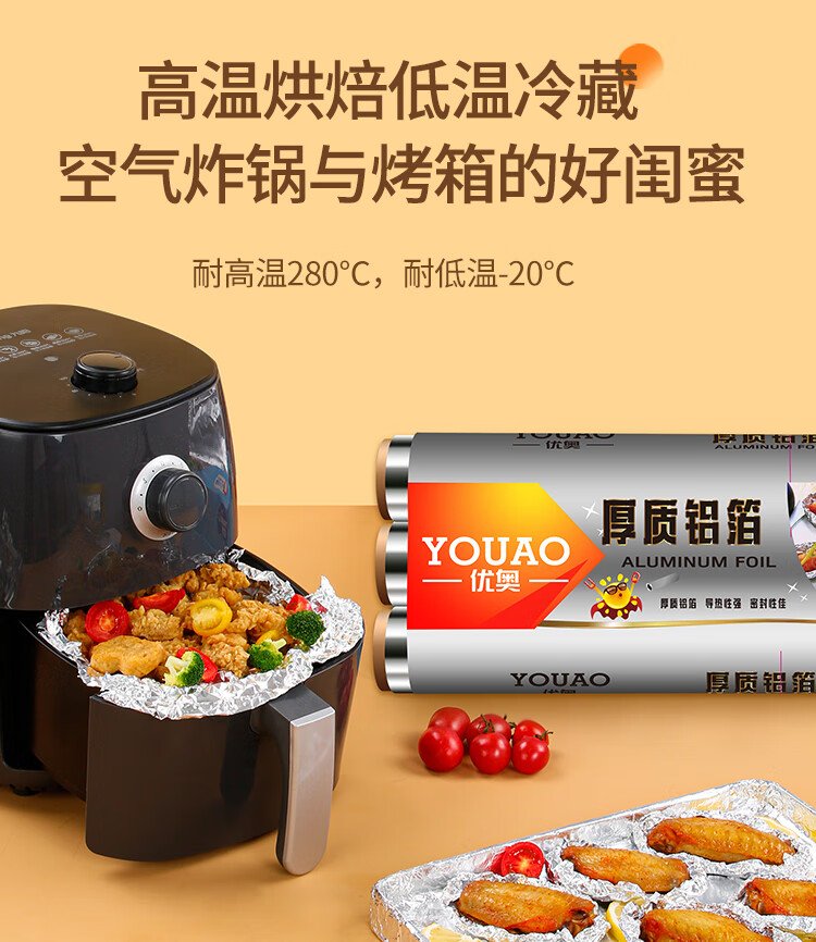 Youao thickened aluminum foil tin paper 30m*30cm air fryer paper oven barbecue baking kitchen water locking freshness and antibacterial