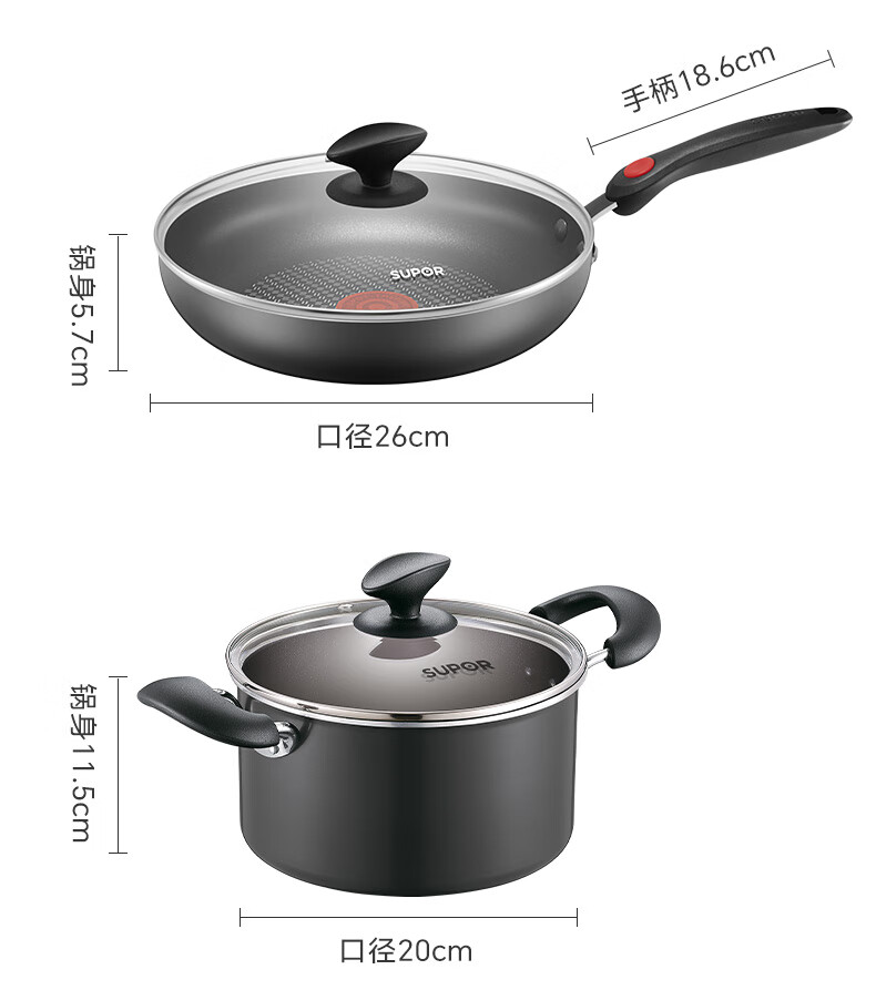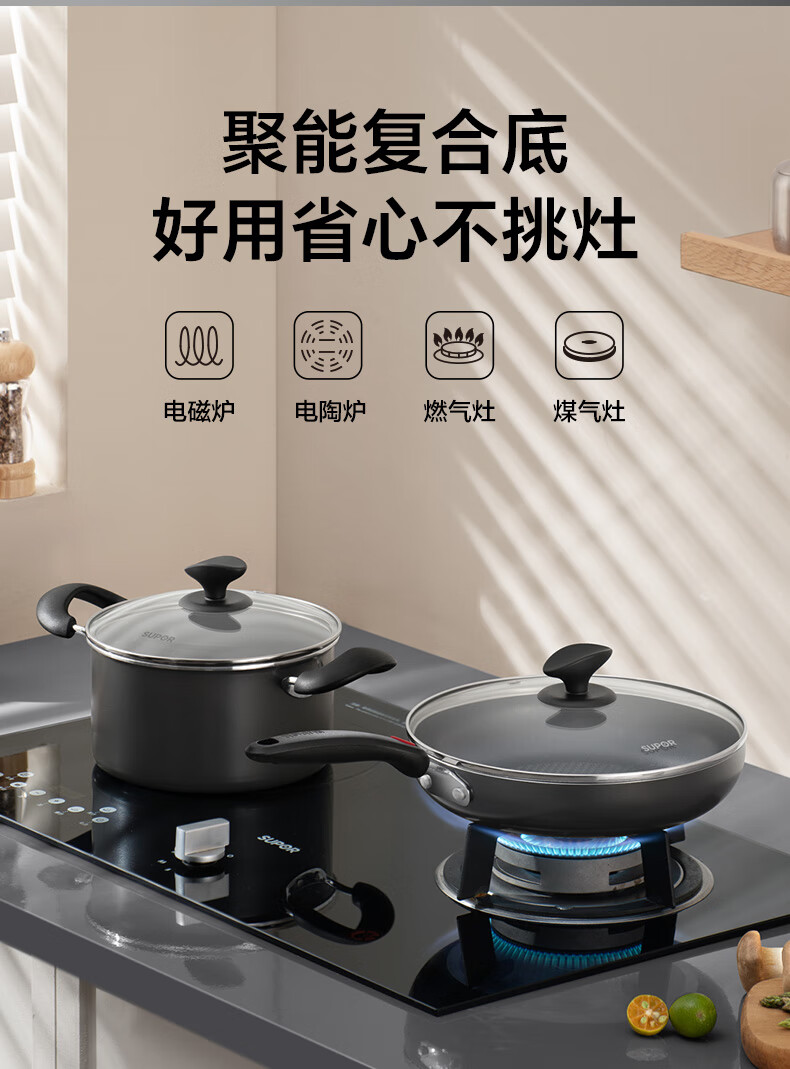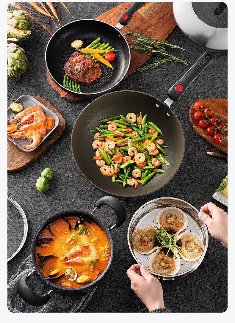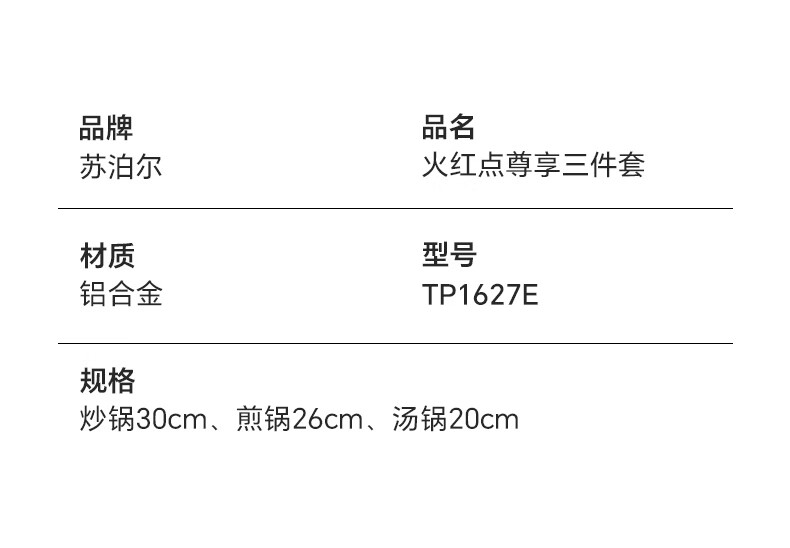 SUPOR Fire Red Dot series pot set non-stick three-piece induction cooker universal TP1627E