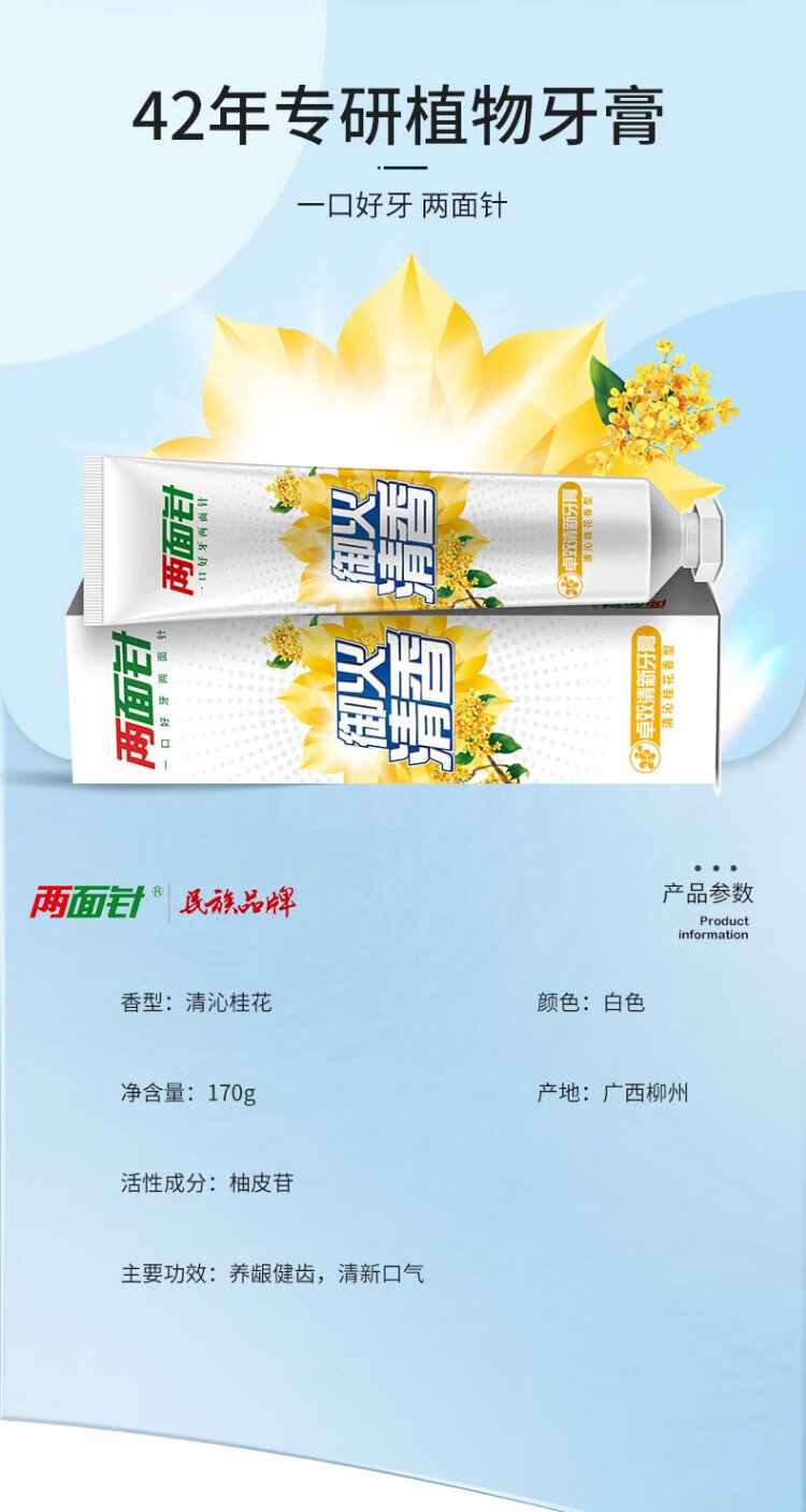 Liangmianzhen (LMZ) effective refreshing gum care toothpaste nourishes gums and strengthens teeth, long-lasting fresh breath, 1 tube 170g, osmanthus fragrance