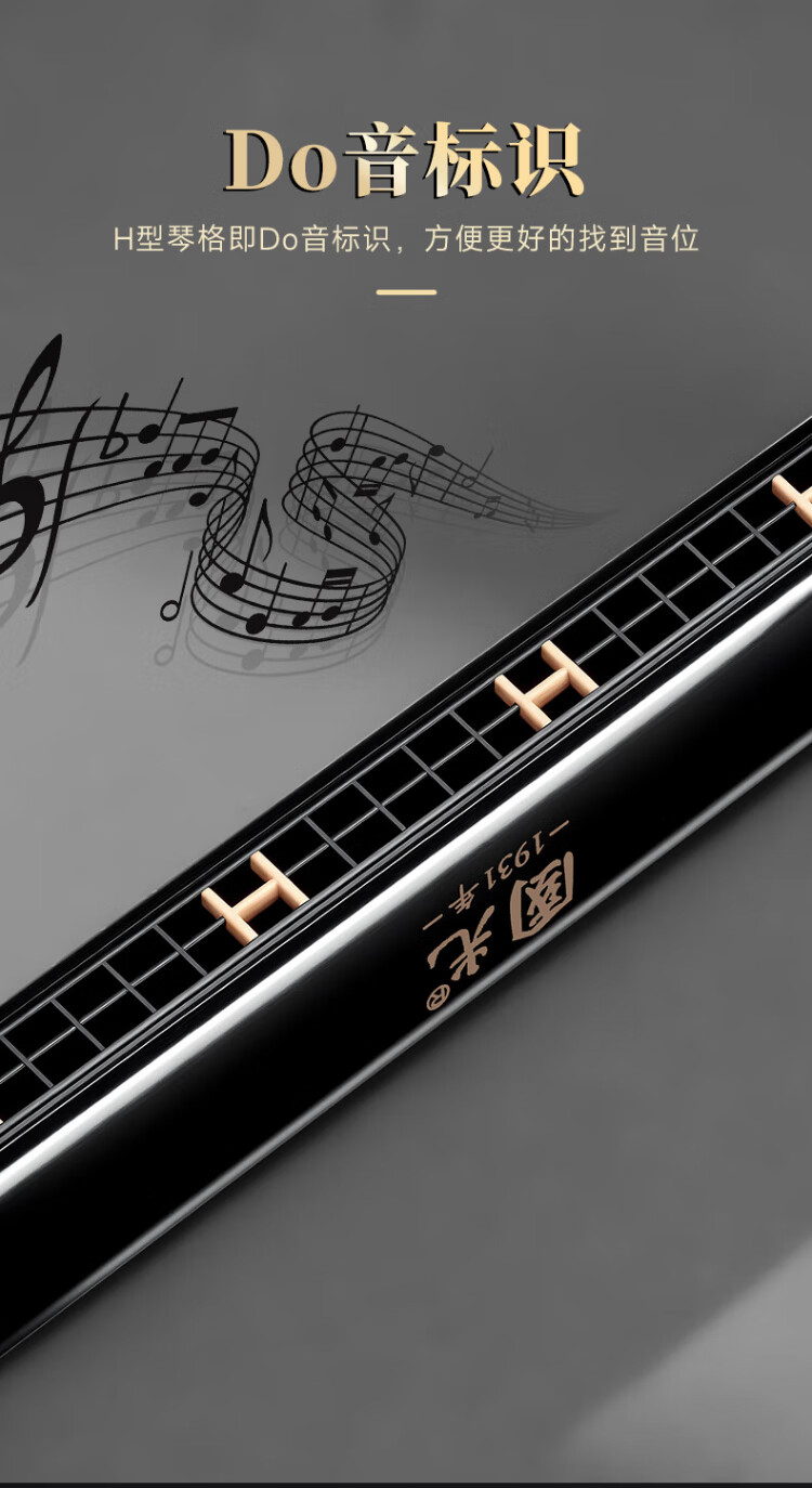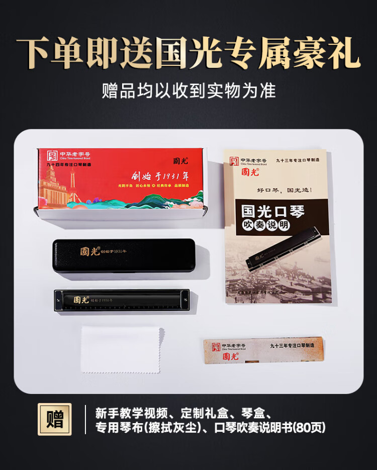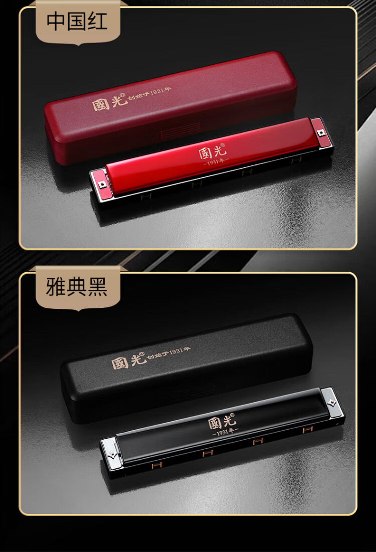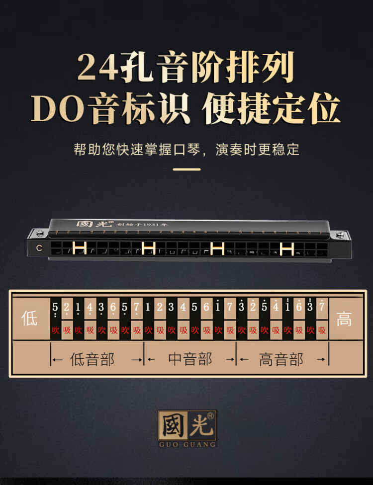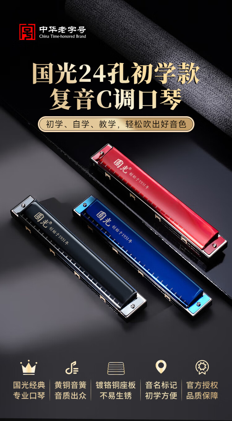 Guoguang 24-hole beginner's entry-level scale commemorative polyphonic harmonica in C key (gemstone) gift box