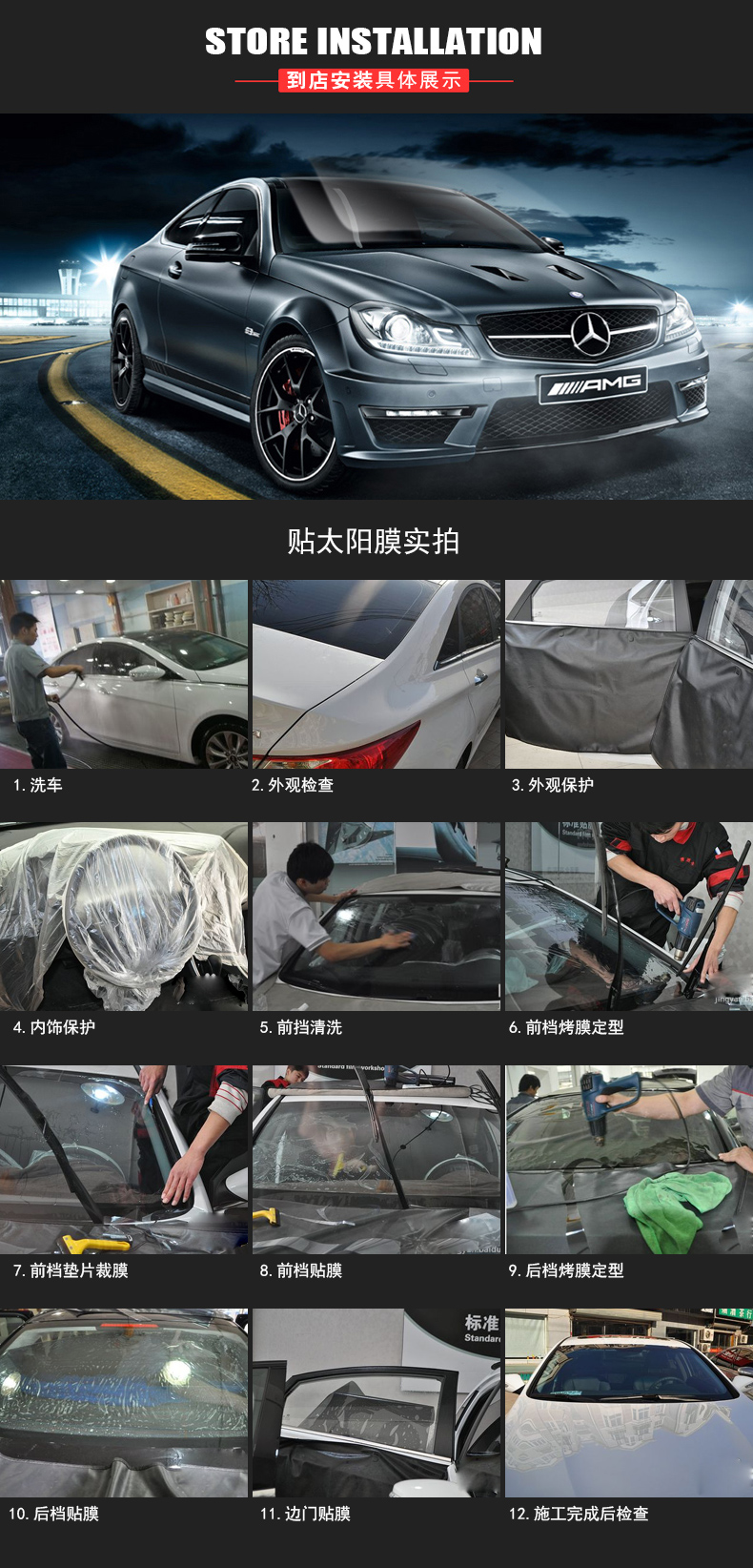Car Zhuzhu Car Zhuzhu Solar film installation man-hour service Explosion-proof film car film service Single front barrier construction service (including film tearing and glue removal)