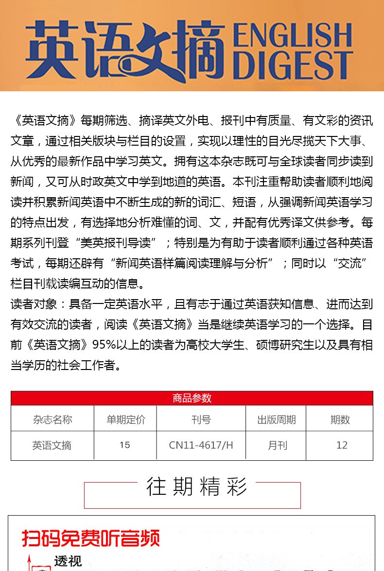 English Digest Magazine Subscription starting from March 2026, 12 issues in total, Chinese-English bilingual learning and reading for college students, CET-4 and CET-6 postgraduate entrance examination English publications, foreign language reference books, periodicals and magazines