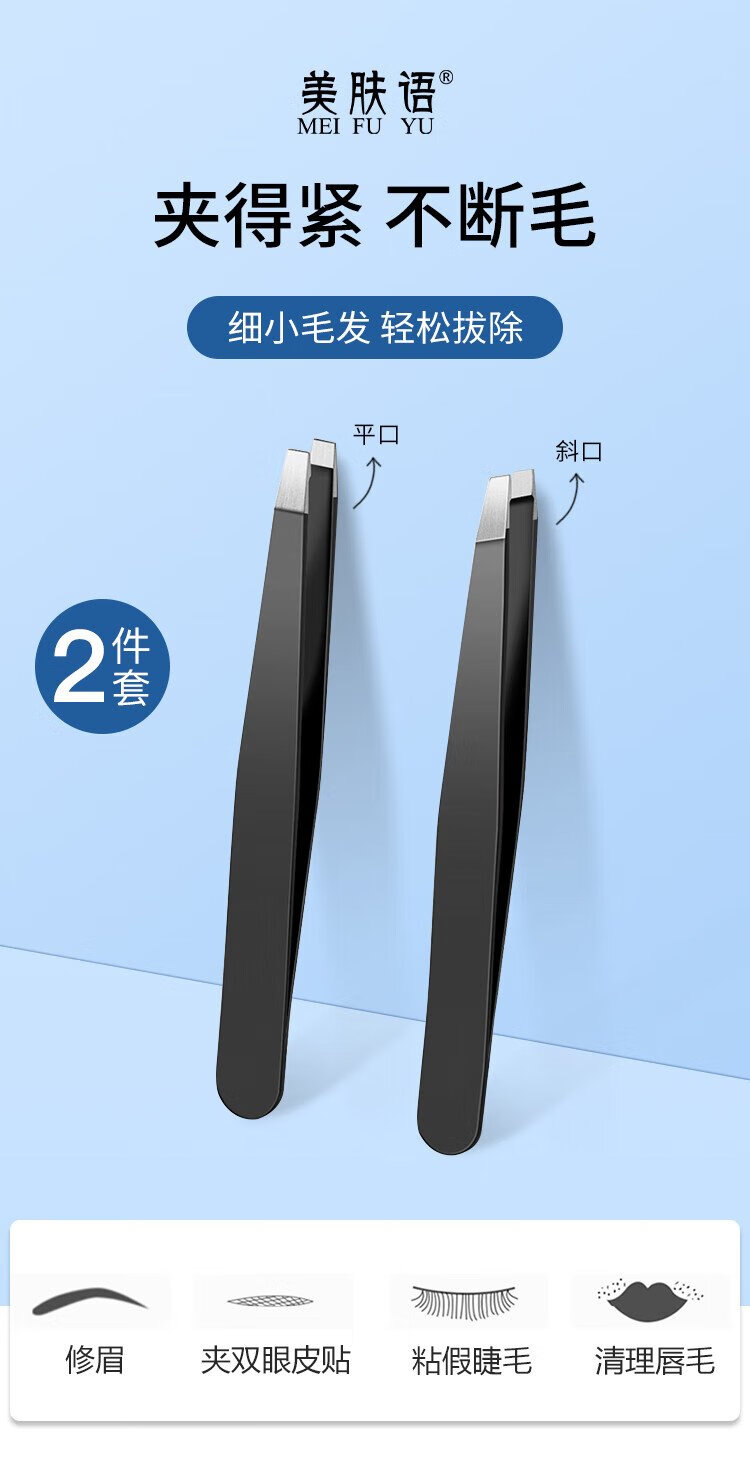 Beauty Skin High Precision Stainless Steel Eyebrow Clip Hair Plucking Tweezers (Slanted Mouth + Flat Mouth) Eyebrow Trimming and Beard Plucking Clip Hair Plucking Pliers MF8345