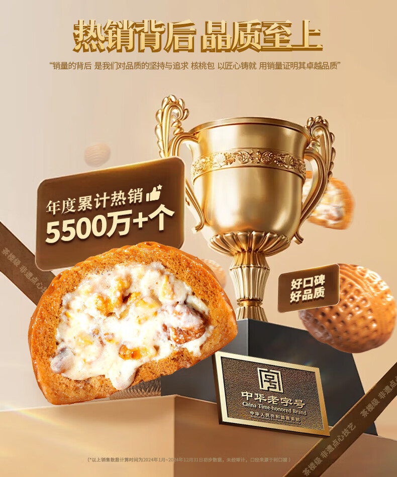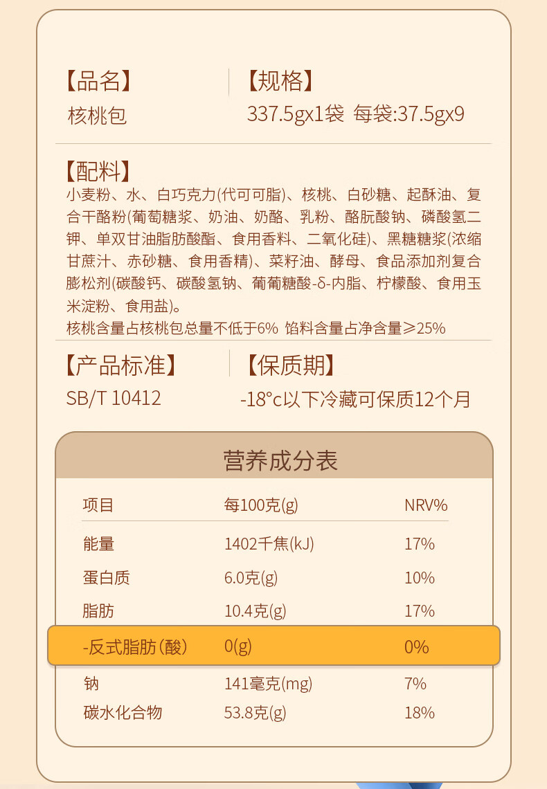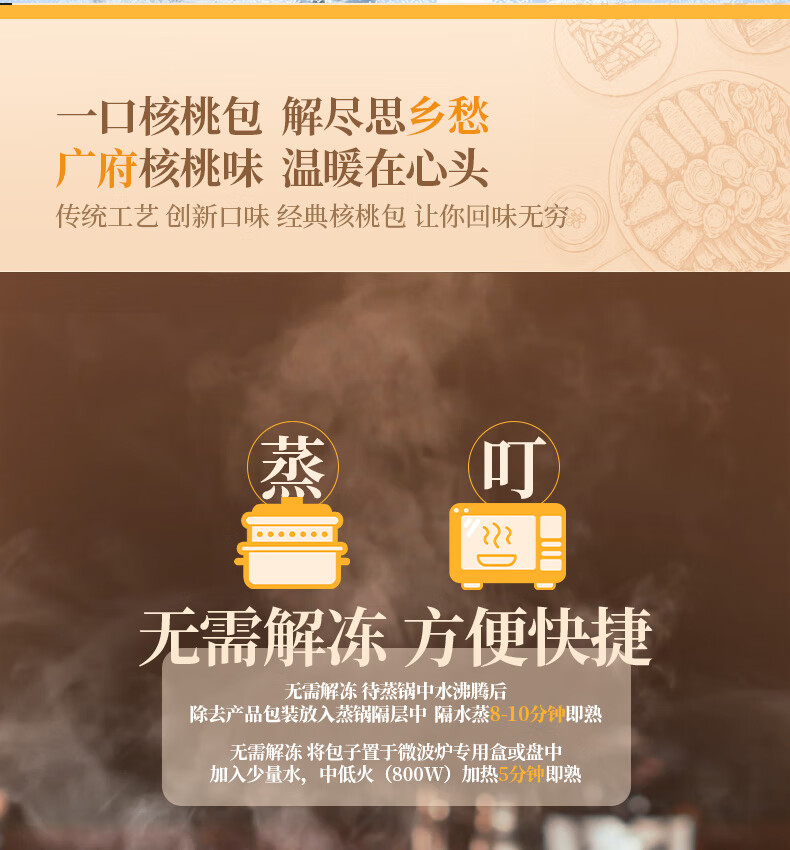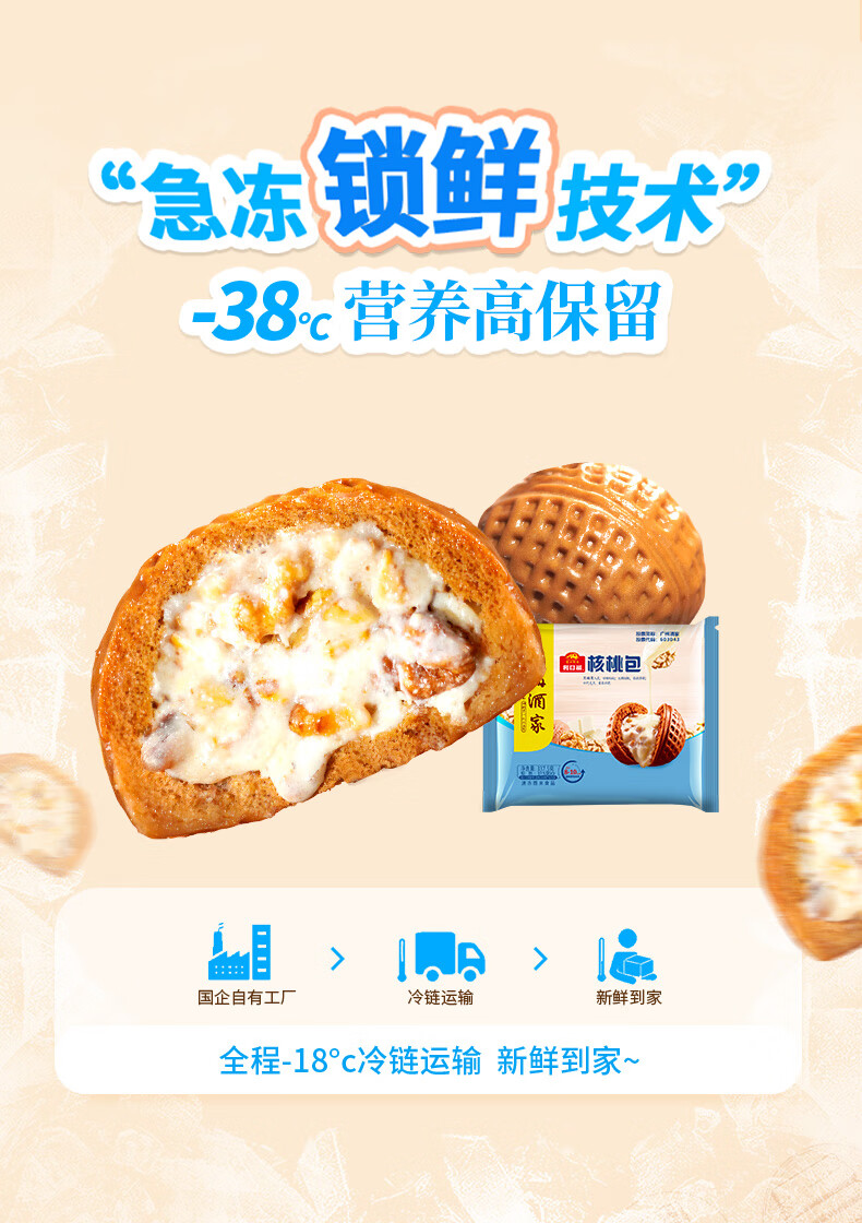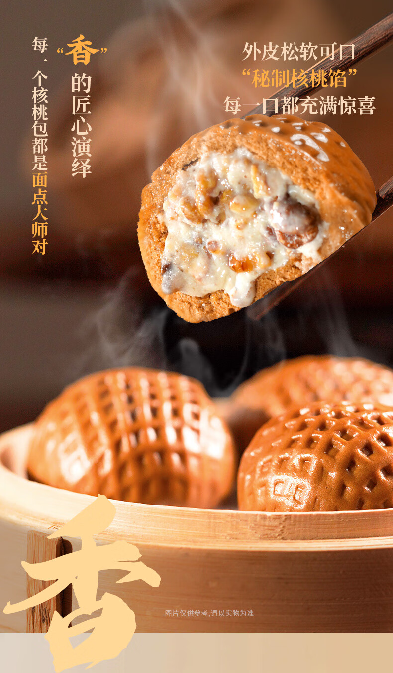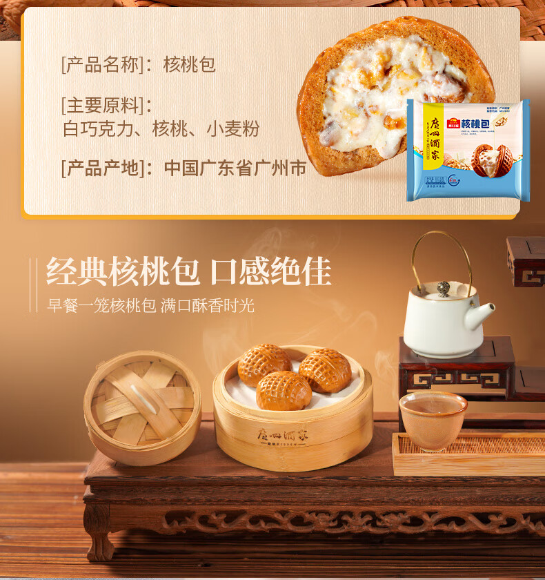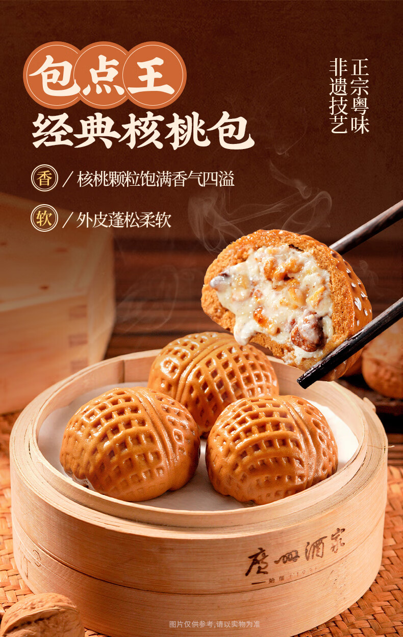 Guangzhou Restaurant Walnut Buns 337.5g 9 pieces Breakfast Buns Cantonese Morning Tea Snacks Fresh Semi-finished Products