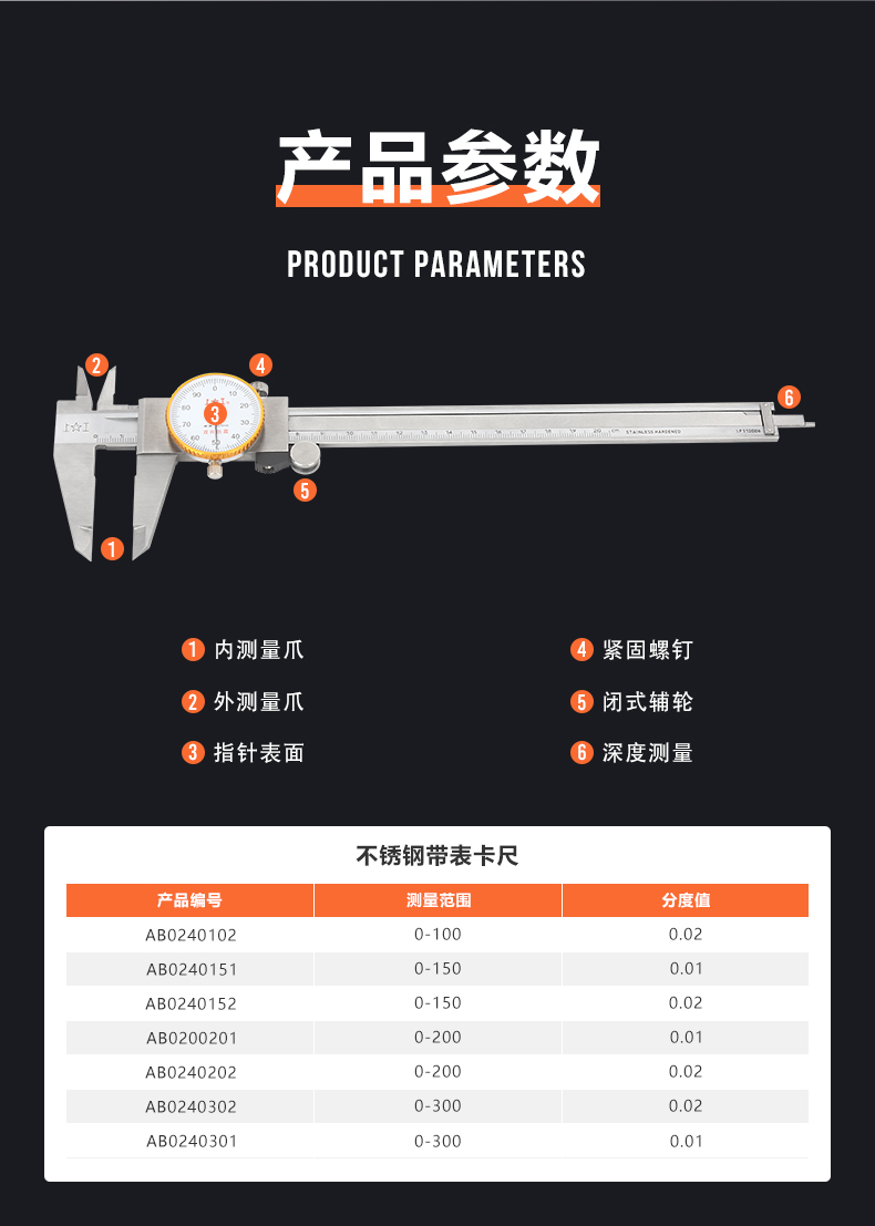 Shanggong stainless steel dial caliper 0-200mm graduation value 0.02mm vernier caliper high precision dial caliper