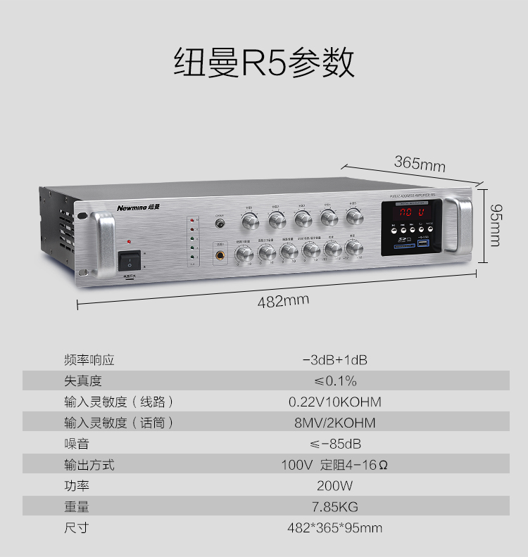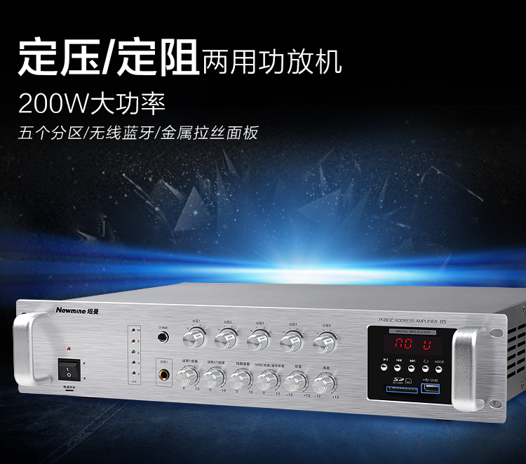 Newmine R5 professional high-power constant-voltage amplifier, public address wall-mounted ceiling speaker audio Bluetooth amplifier (200W)