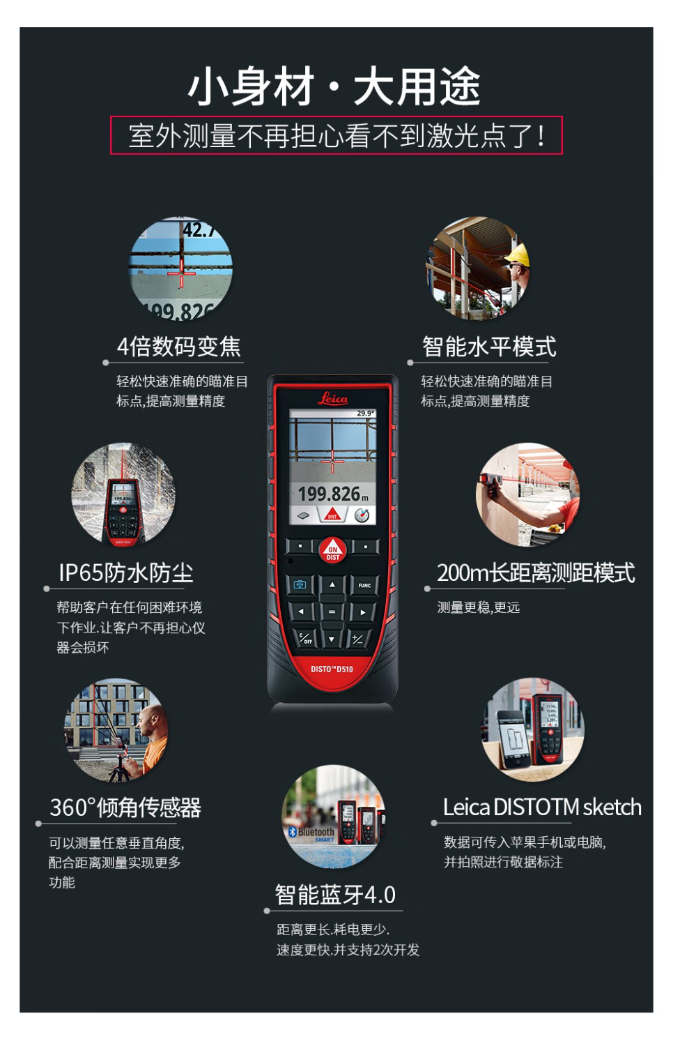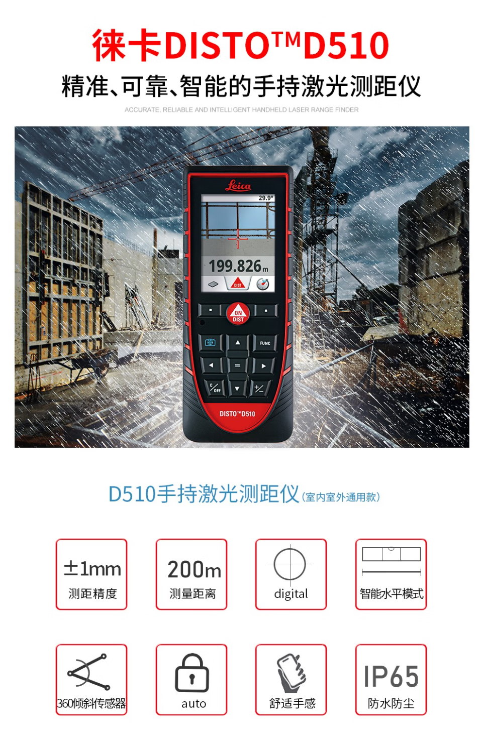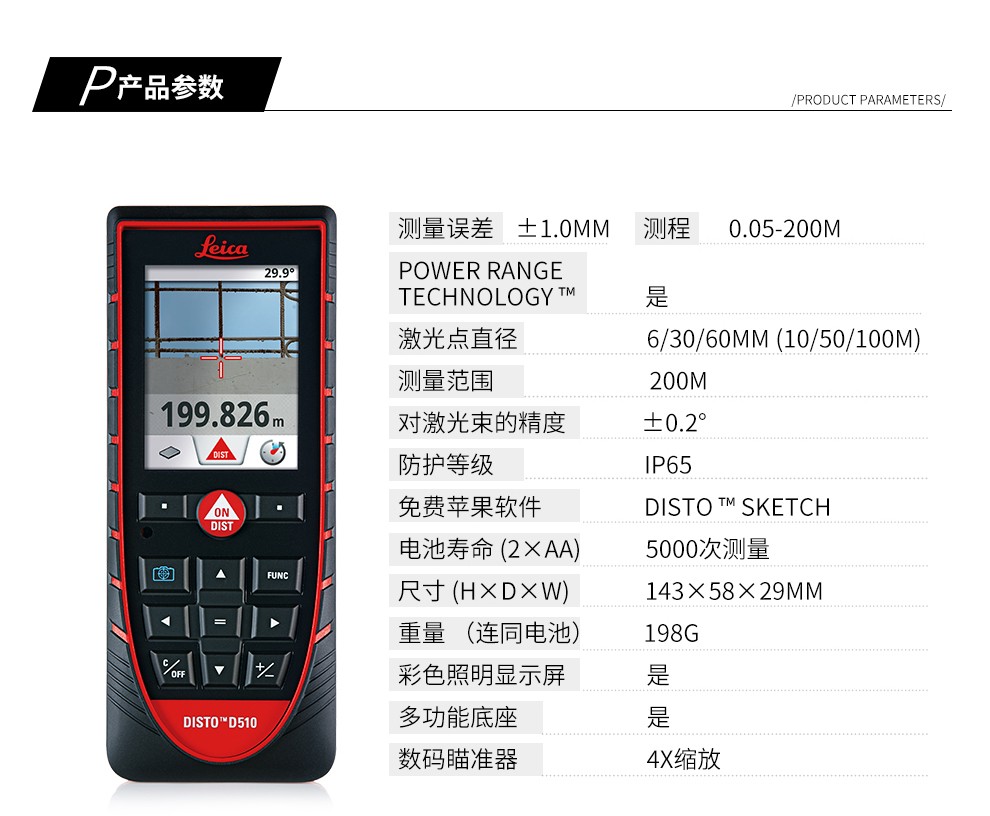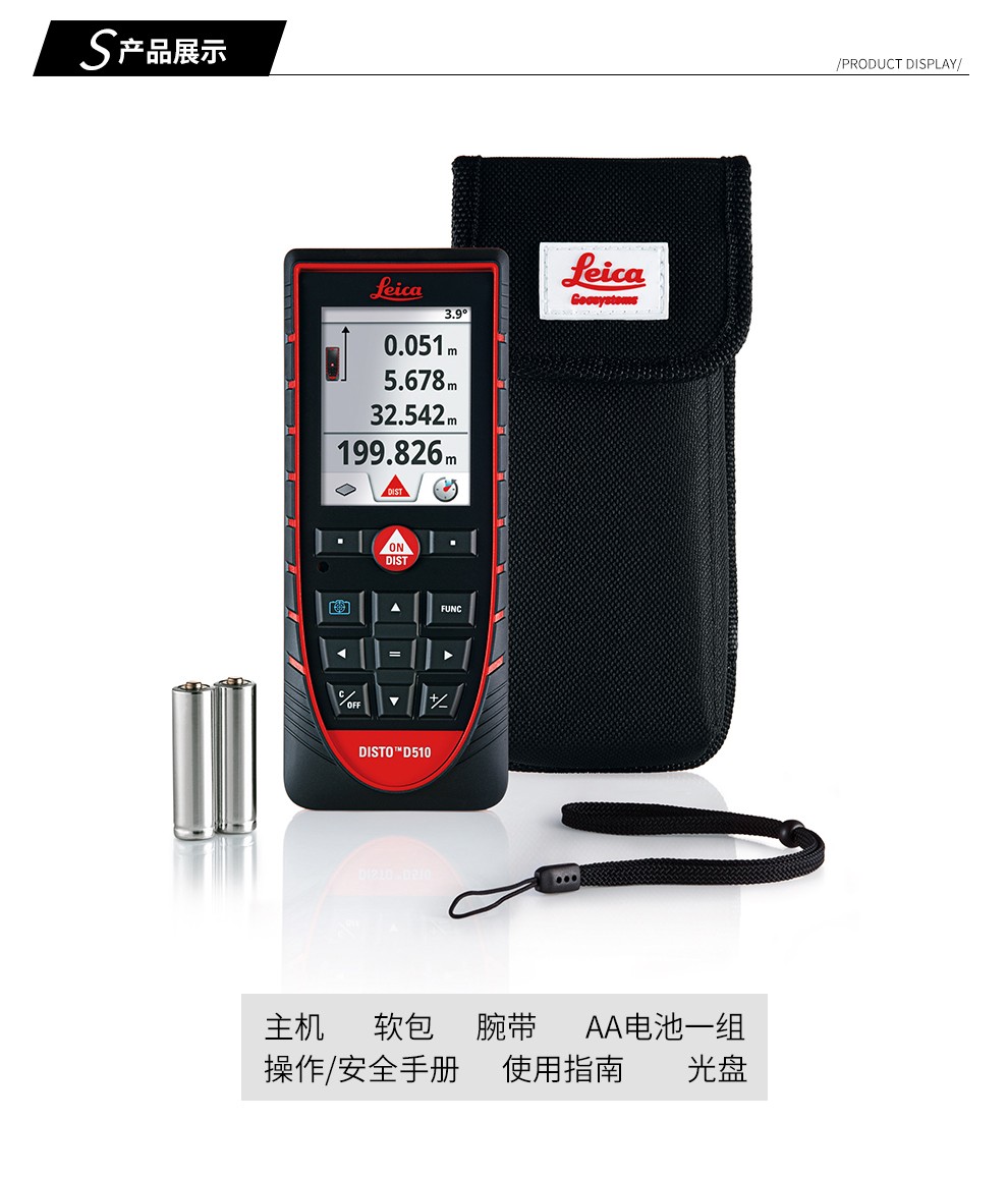 Leica D510 laser rangefinder high-precision 200 meters outdoor infrared electronic ruler Bluetooth measurement room Leica height measurement D510 standard (outdoor model 200 meters with Bluetooth)