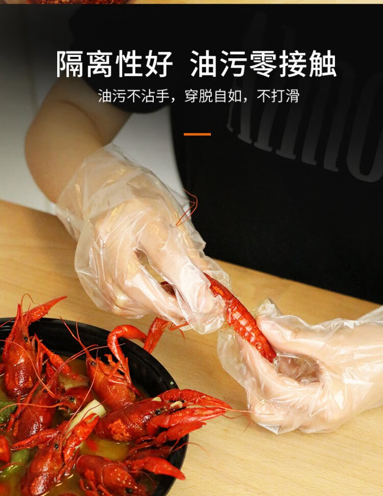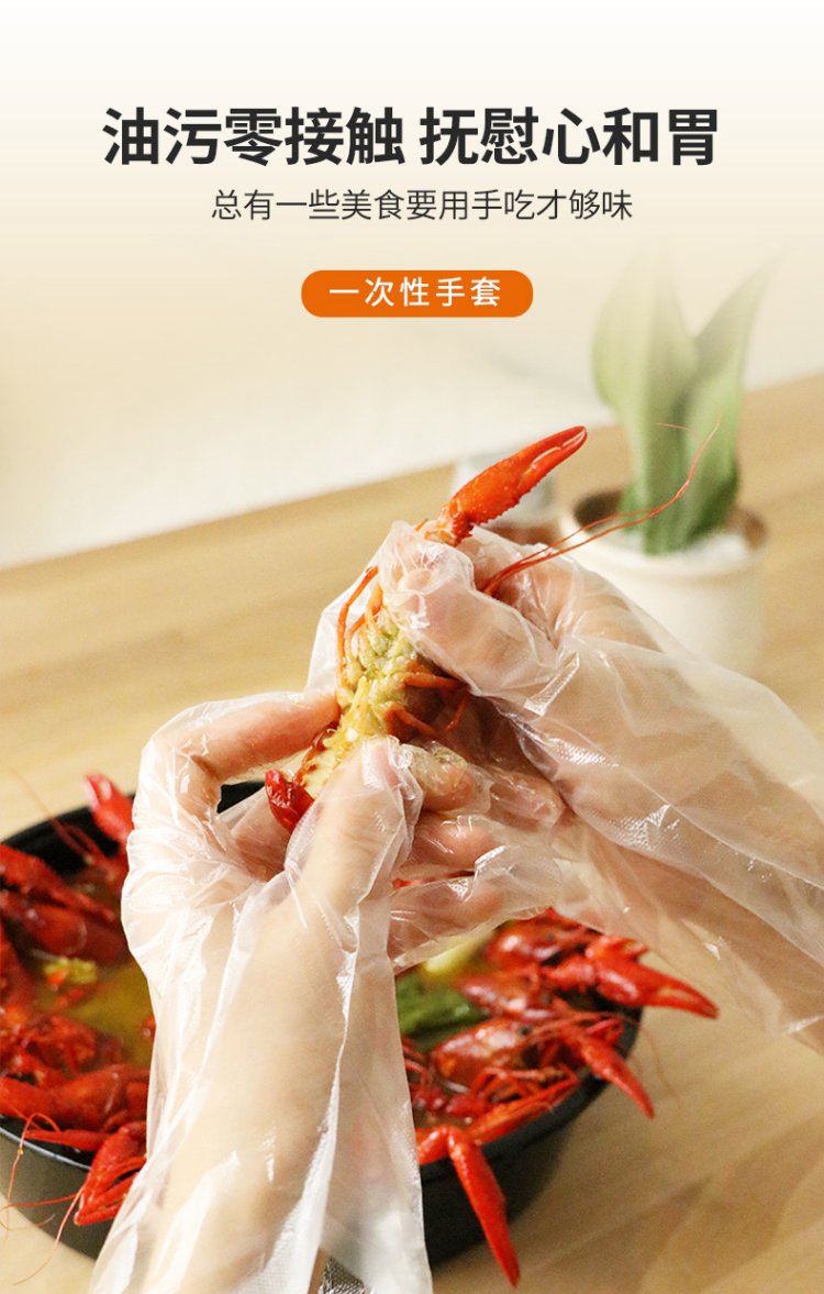 Jiecheng disposable PE gloves thickened food gloves 100 pieces picnic supper lobster gloves thick and durable