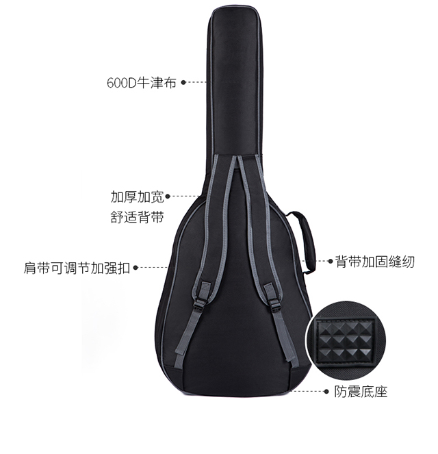 Lovebird 38-inch 39-inch guitar bag 10mm thickened sponge shoulder folk guitar bag guitar bag guitar case black