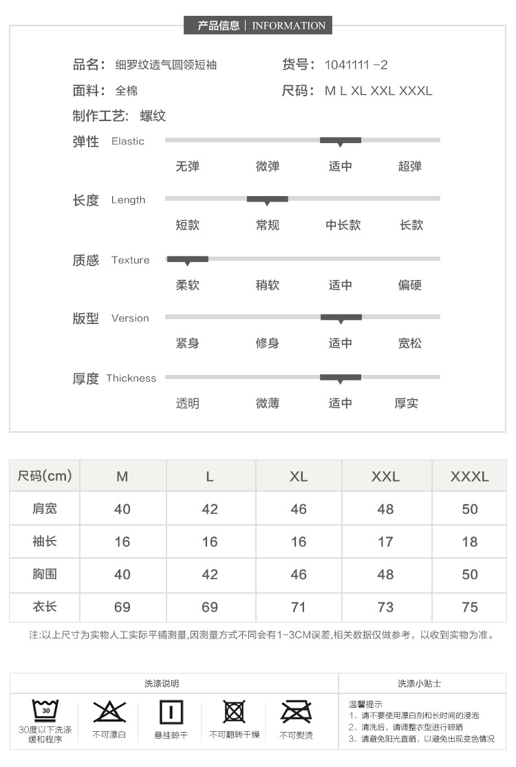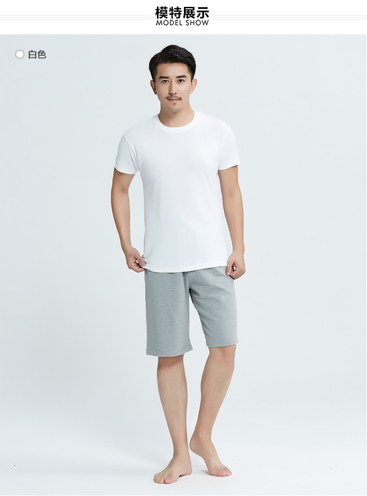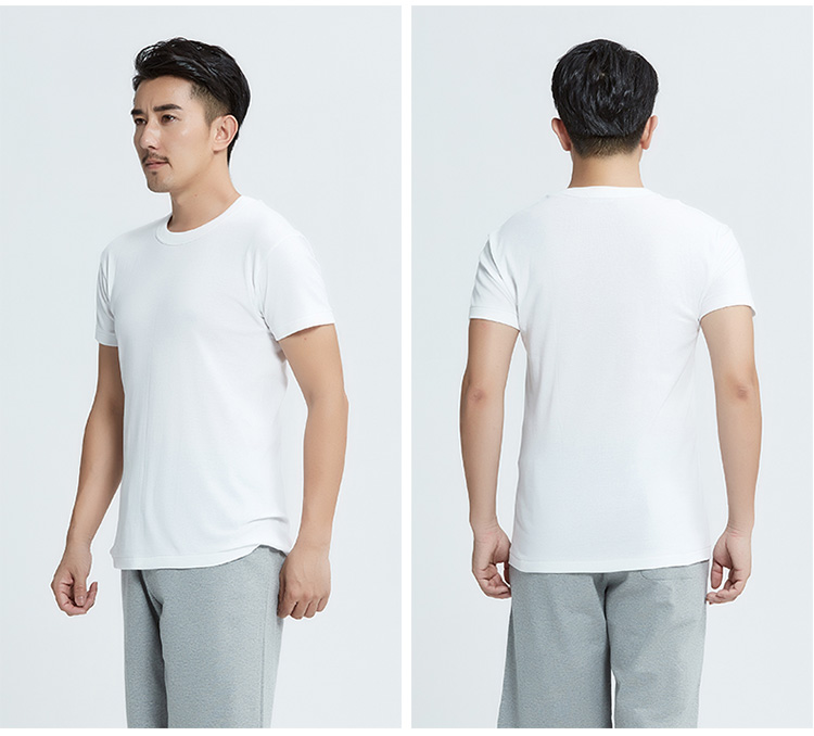 Yiershuang 2-pack 100% cotton men's short-sleeved ribbed old man's shirt T-shirt undershirt round neck cotton M/165