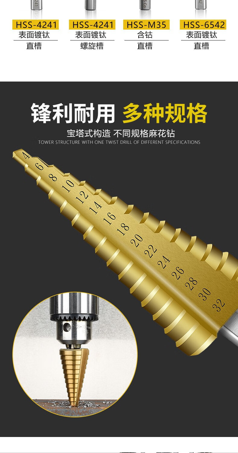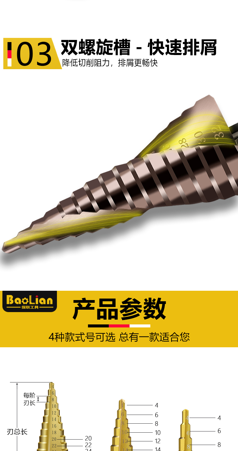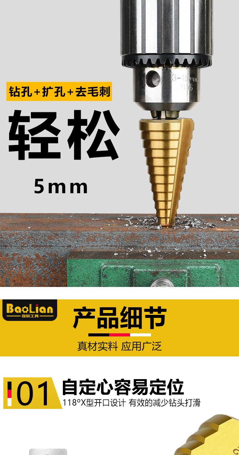 Baolian pagoda drill bit step tower type step hole expander stainless steel iron aluminum plate metal hole opener 4-12mm (five steps 4241)