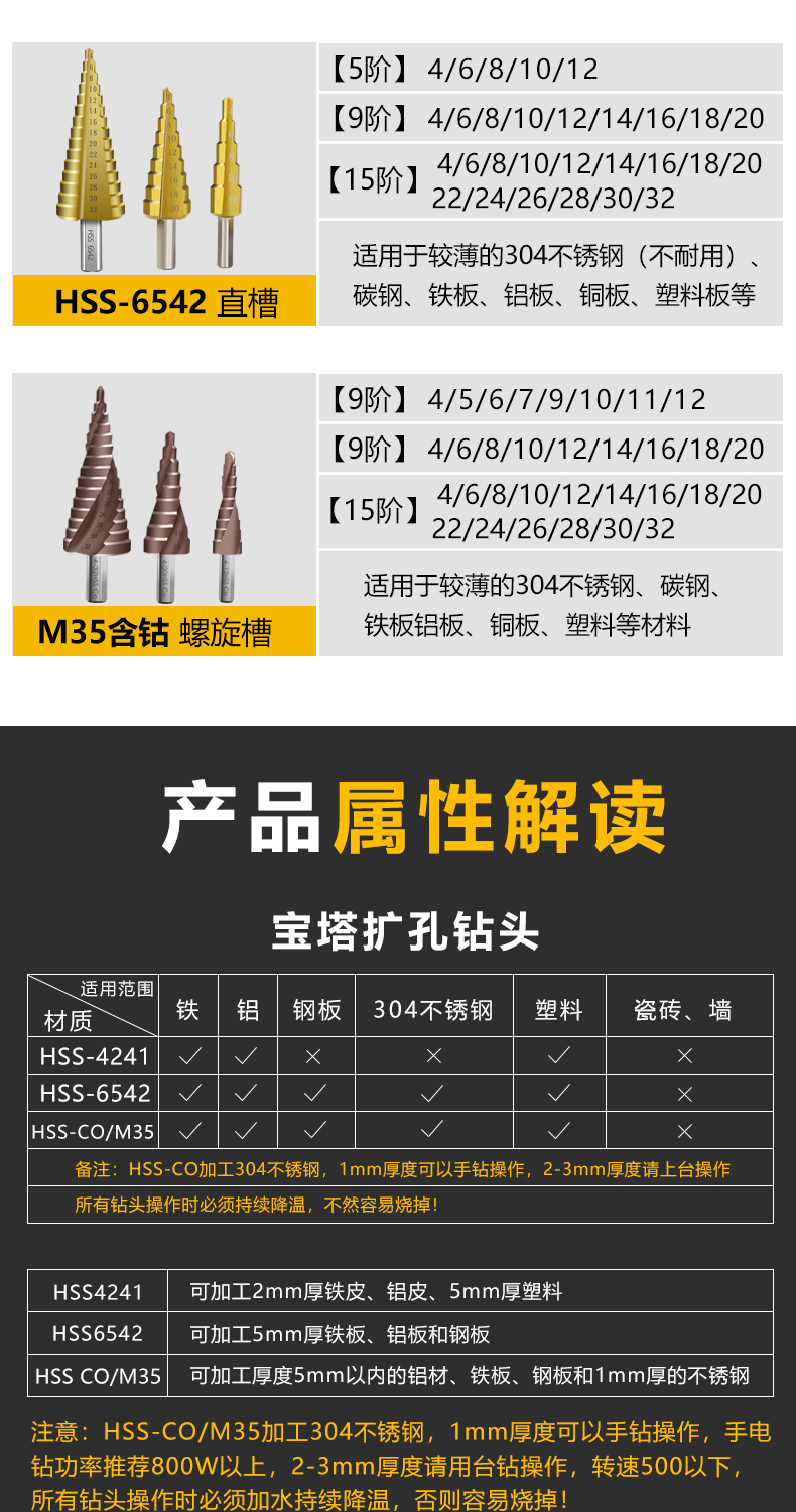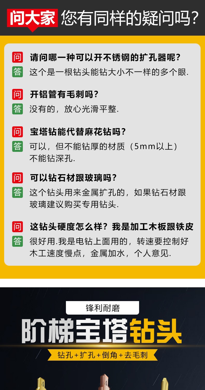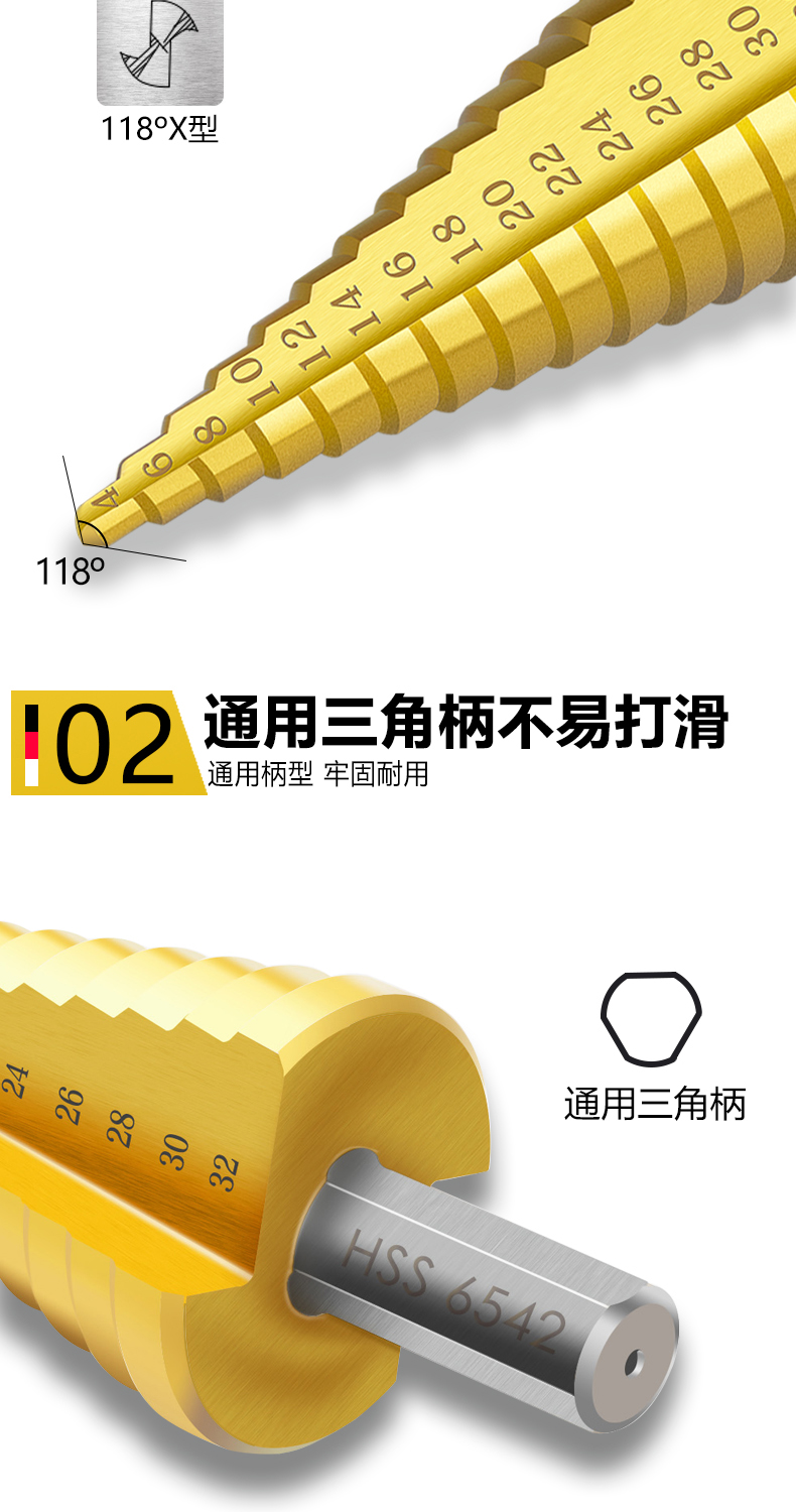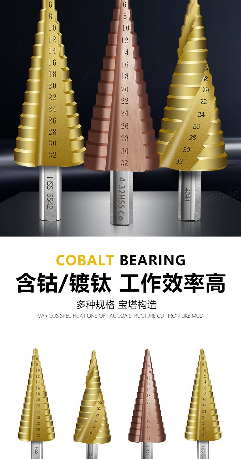 Baolian pagoda drill bit step tower type step hole expander stainless steel iron aluminum plate metal hole opener 4-12mm (five steps 4241)
