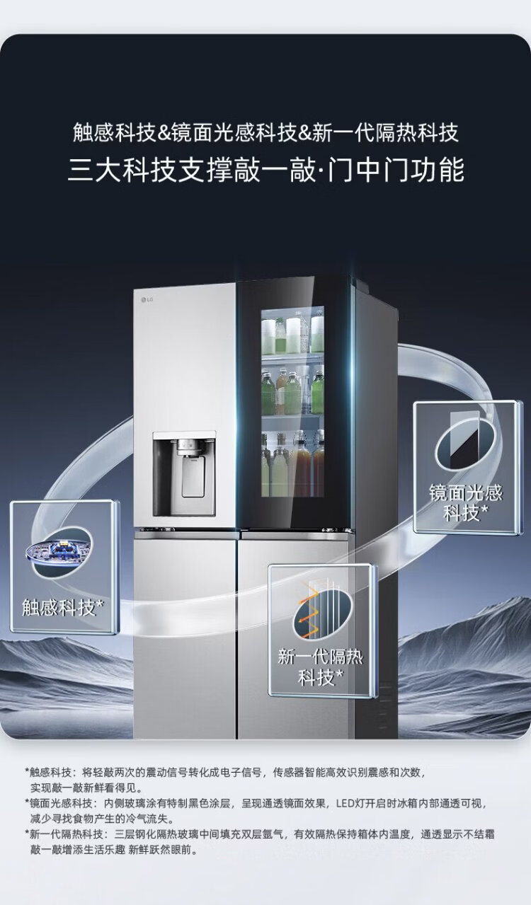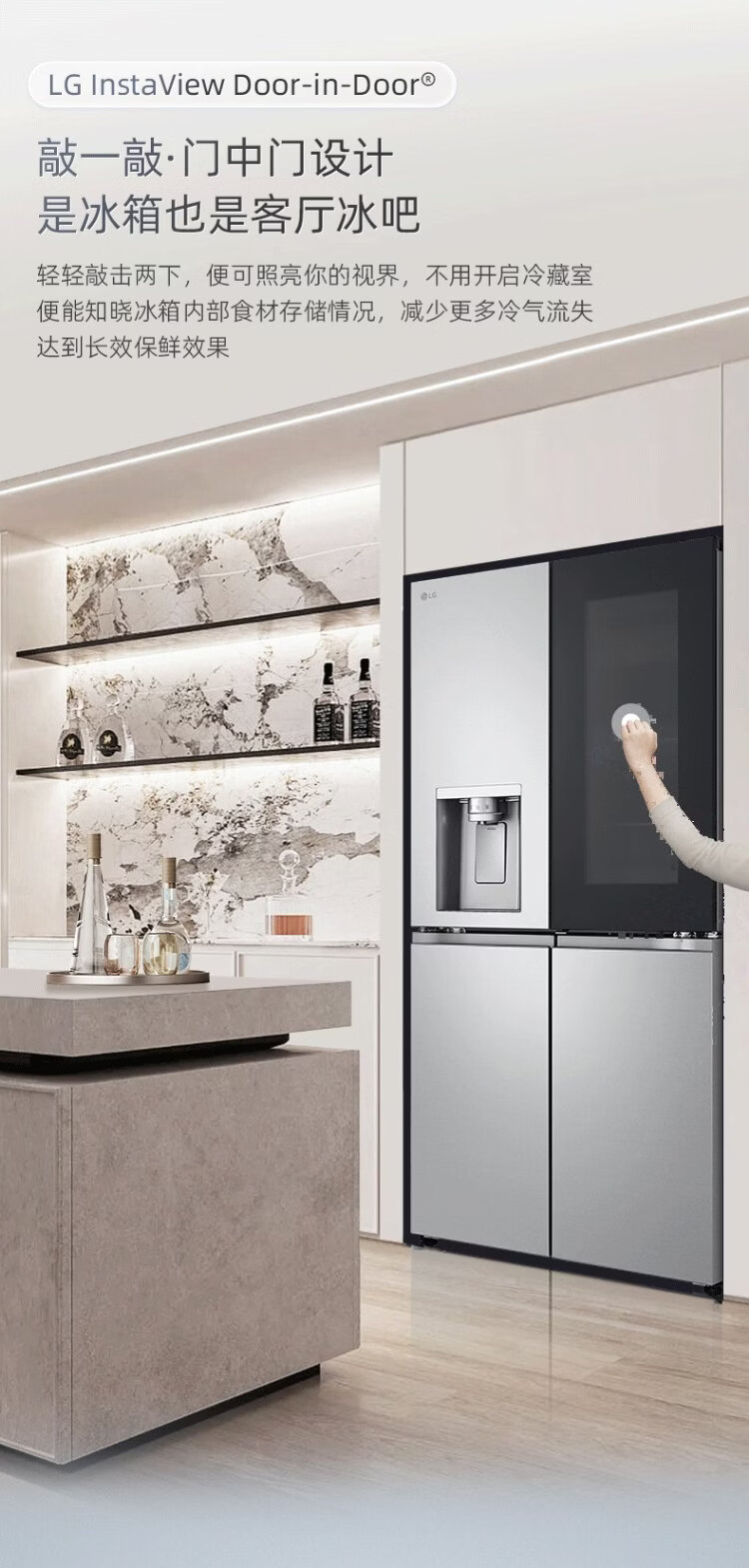 LG508 liter cross-door ice maker refrigerator with light-click see-through window fully automatic ice making air-cooled frost-free frequency conversion intelligent large-capacity refrigeration and freezing household F544MMB95D