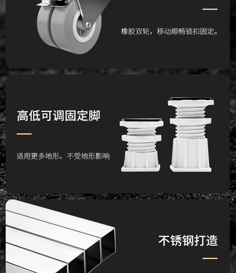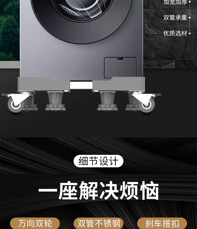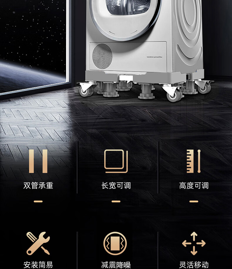 Beishi is suitable for Haier washing machine base, removable rack, drum pulsator, fully automatic washing machine base, refrigerator base, elevated rack bracket, shock-absorbing pads, stainless steel tube, 4-foot fixed version, durable, corrosion-proof, no installation required